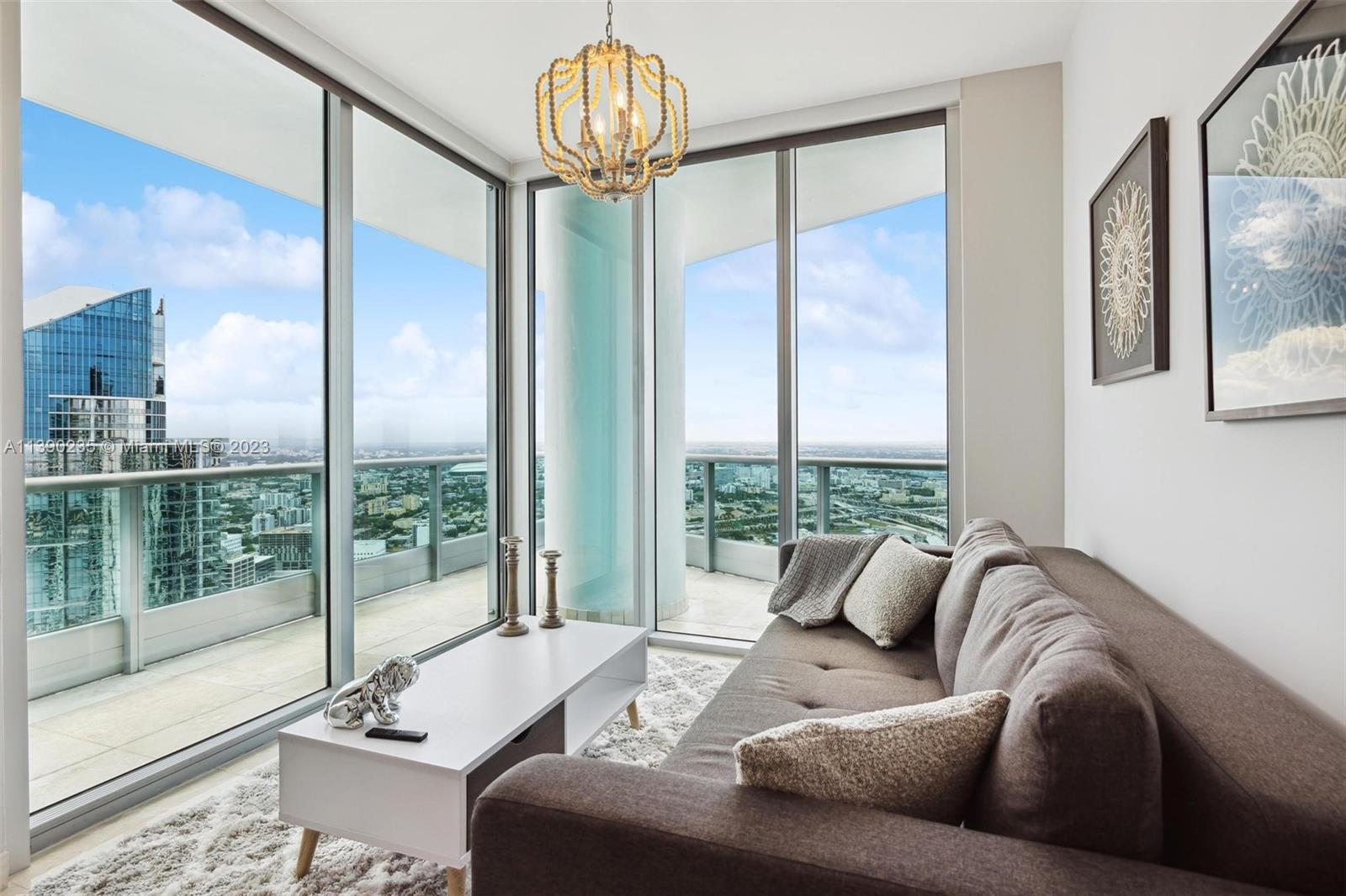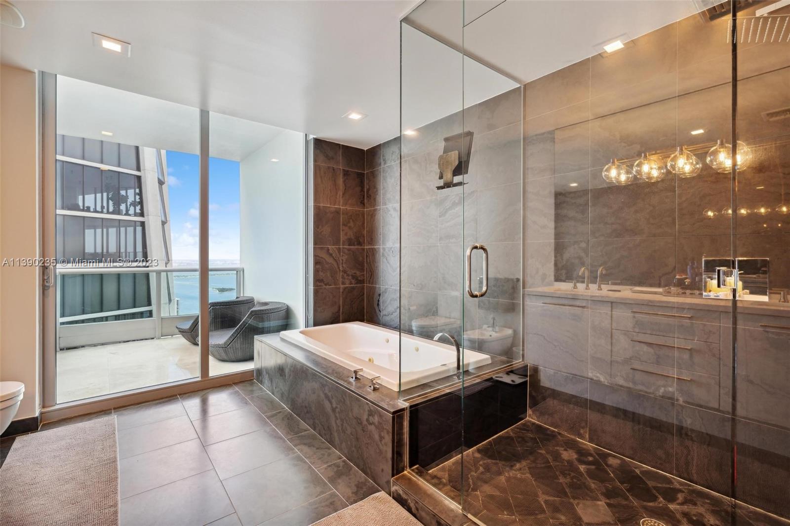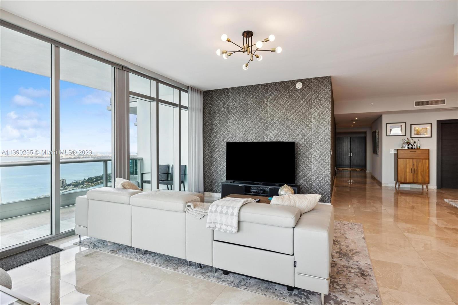 Breathtaking Miami Skyline and water views from this 3 bed/3.5 bath Penthouse in the sky. Property features 24x24 Italian marble floors throughout, formal dining, private bath and balcony in each room, state of the art open kitchen with Subzero fridge and Miele appliances and private elevator. This luxury high rise tower offers the comforts of an amazing Spa and many other on site amenities including a fitness center, 2 pools and concierge service. Unit. Easy to show