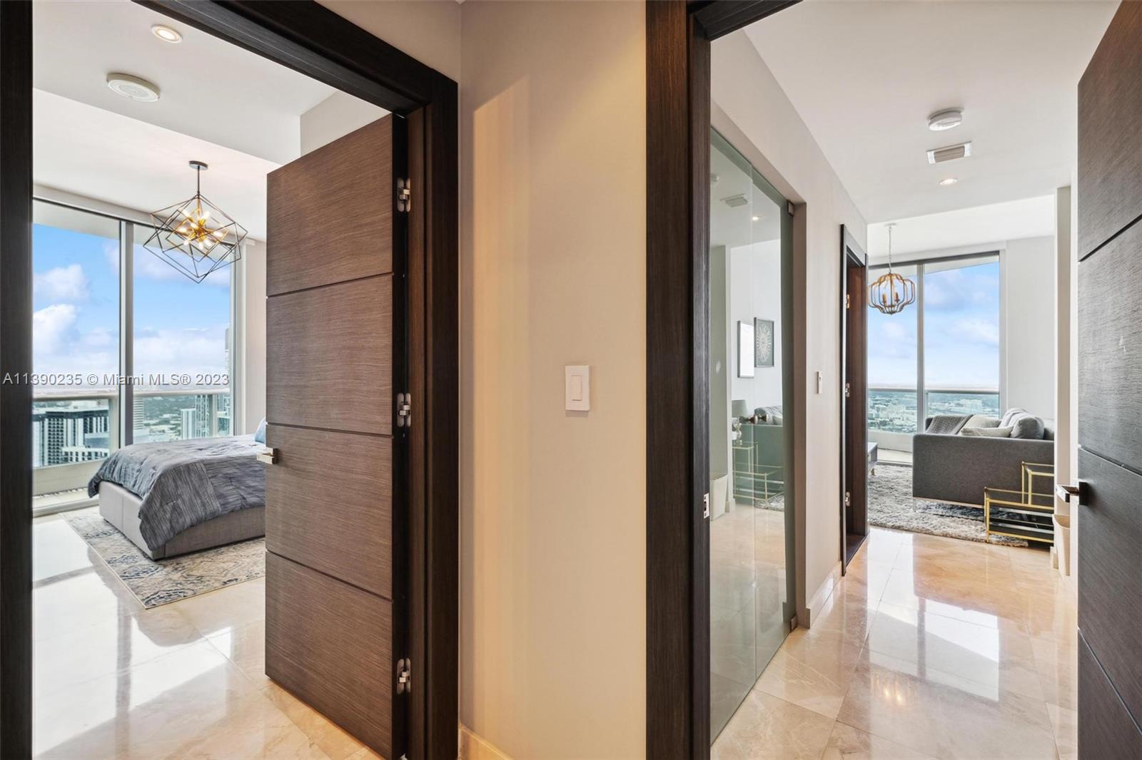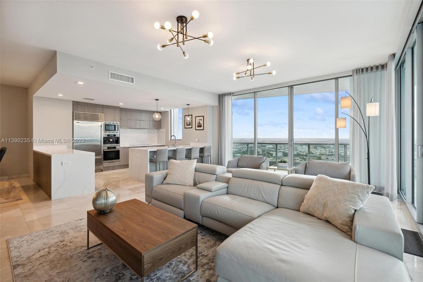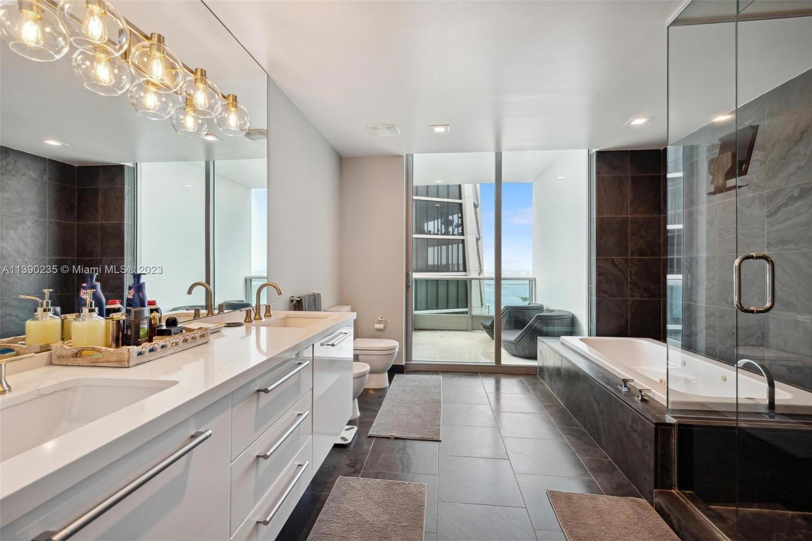 Breathtaking Miami Skyline and water views from this 3 bed/3.5 bath Penthouse in the sky. Property features 24x24 Italian marble floors throughout, formal dining, private bath and balcony in each room, state of the art open kitchen with Subzero fridge and Miele appliances and private elevator. This luxury high rise tower offers the comforts of an amazing Spa and many other on site amenities including a fitness center, 2 pools and concierge service. Unit. Easy to show