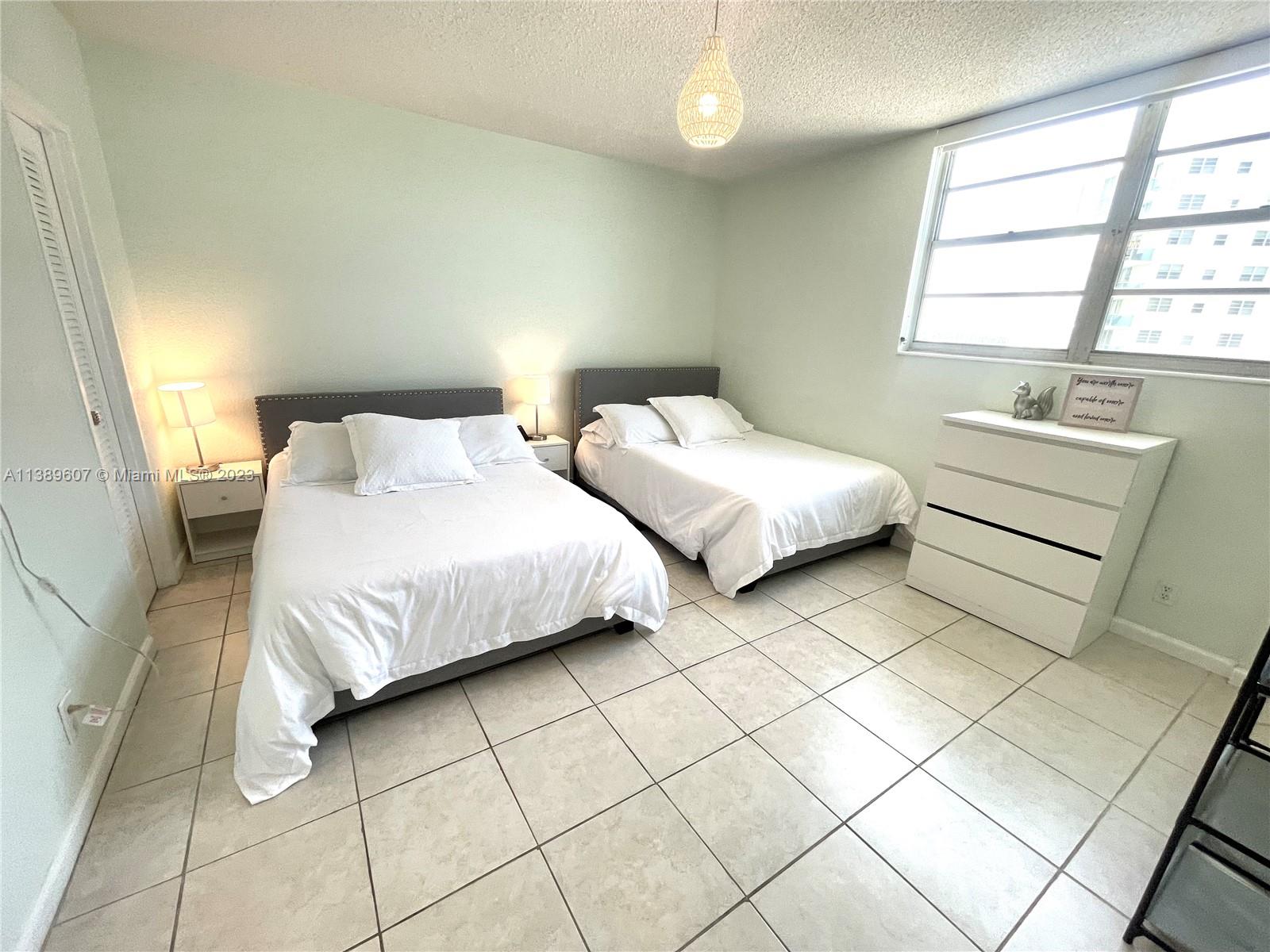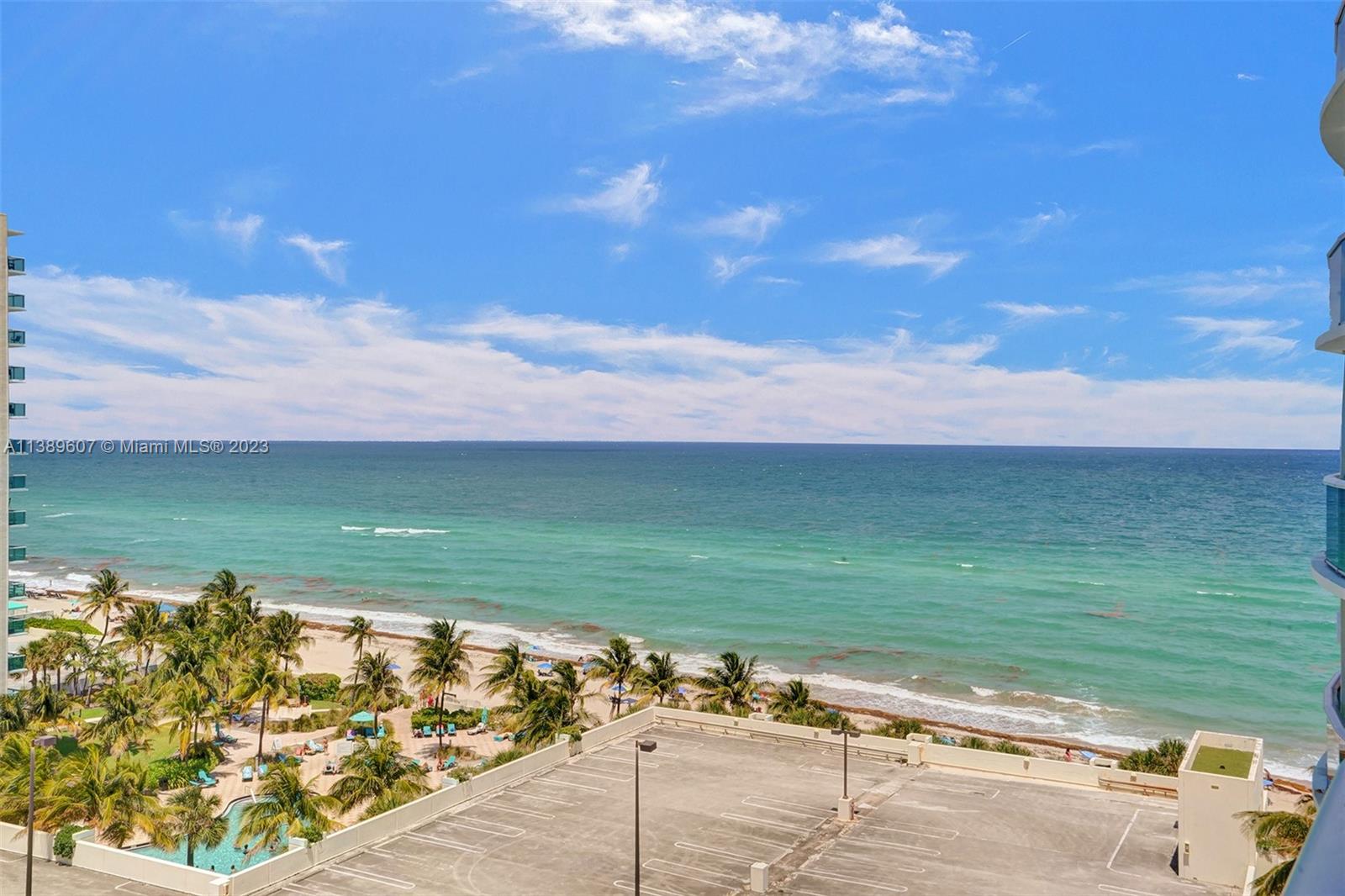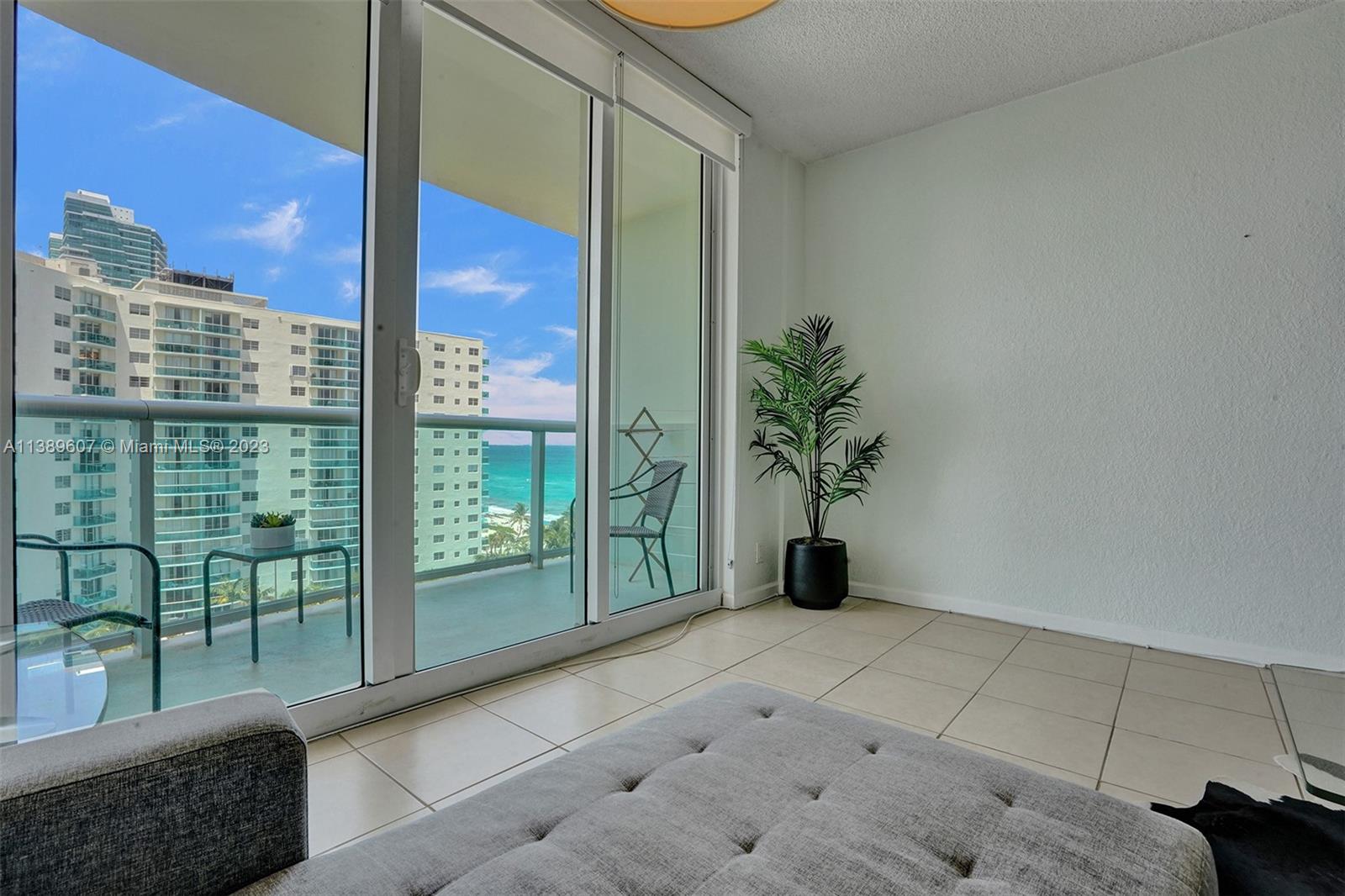 Beachfront building with fabulous amenities. Ocean views to right & city skyline to left. Allows Air B &B great income or use when you want. This 1/1 is large & fully furnished turn key. Tile throughout, hurricane patio door & glass balcony. Kitchen has quartz counters, subway tile backsplash, white cabinets & space for a kitchenette table. Toaster, coffee maker, pots/ pans and dishes come with. Bedroom has 2 beds + living room can be sleeper sofa, so a a total of 6 can sleep. Large walk in master closet + hall closet & linen closet. Flat ceilings/ no popcorn. Bathroom has tub & tile shower. Laundry on each floor- steps to this unit but no noise. Resort style pool, gym, game room, lobby, business center, valet parking. HOA fee includes cable, water & A/C. On beach close to shops & cafes