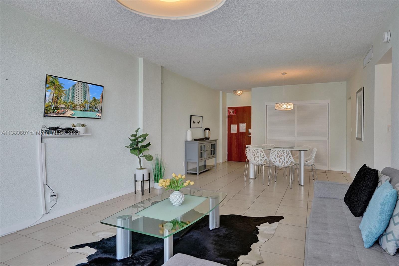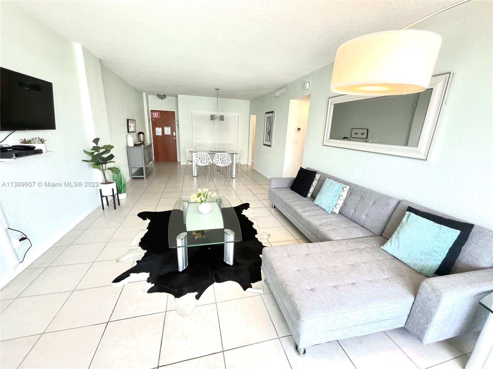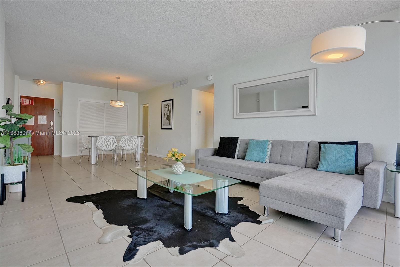 Beachfront building with fabulous amenities. Ocean views to right & city skyline to left. Allows Air B &B great income or use when you want. This 1/1 is large & fully furnished turn key. Tile throughout, hurricane patio door & glass balcony. Kitchen has quartz counters, subway tile backsplash, white cabinets & space for a kitchenette table. Toaster, coffee maker, pots/ pans and dishes come with. Bedroom has 2 beds + living room can be sleeper sofa, so a a total of 6 can sleep. Large walk in master closet + hall closet & linen closet. Flat ceilings/ no popcorn. Bathroom has tub & tile shower. Laundry on each floor- steps to this unit but no noise. Resort style pool, gym, game room, lobby, business center, valet parking. HOA fee includes cable, water & A/C. On beach close to shops & cafes