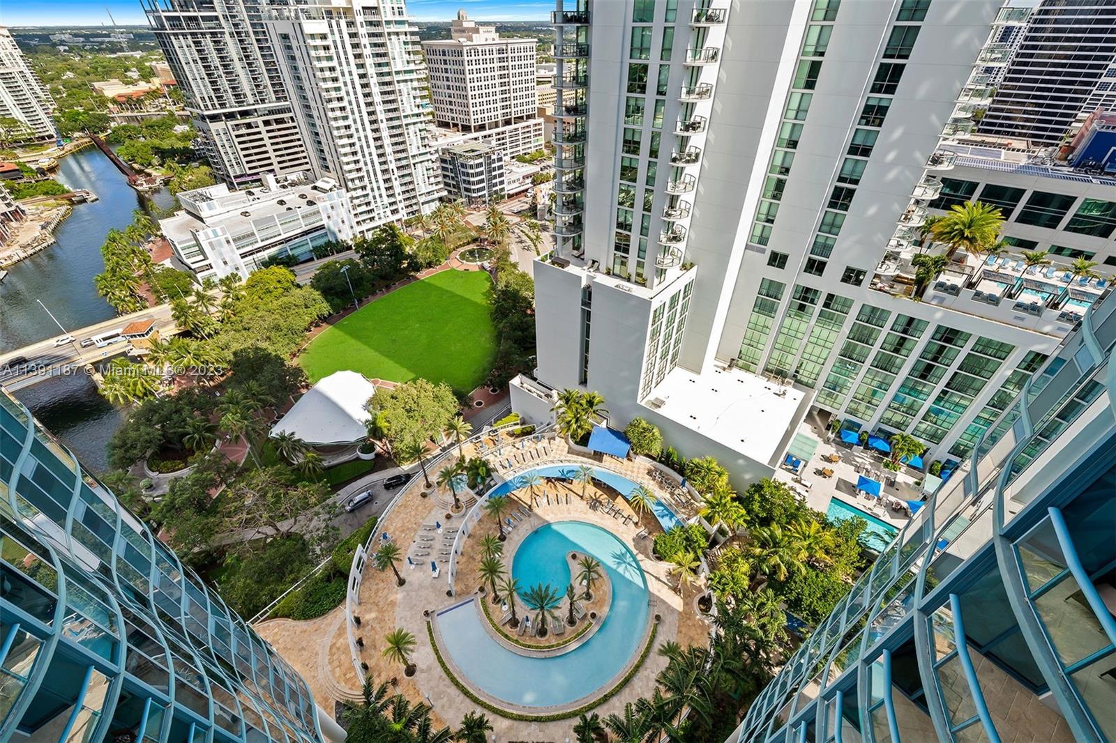 Sophisticated Columbus 2 bedrooms, 3 full baths + den can be used for a 3rd sleeping area in Las Olas River House, Ft Lauderdale's landmark tower. With over 2400 sq ft this large flow thru design has private elevator foyer, floor to ceiling glass, split en-suit bedrooms & 2 balconies. Living room drapes excluded. On the banks of the vibrant New River in the heart of downtown & famous Las Olas Blvd. Walkable urban life at its best! Building is financially sound and is pet friendly. Owners are allowed to rent with no holding period. Fully funded 4M lobby renovation just completed by award winning Steven G. New Hyatt Hotel, Eddie V's Prime Seafood, Moxies & Green Wise Grocery just steps away. Top-tier amenities: grand lobby with Koi Pond, world class fitness center & sunny tropical pool deck