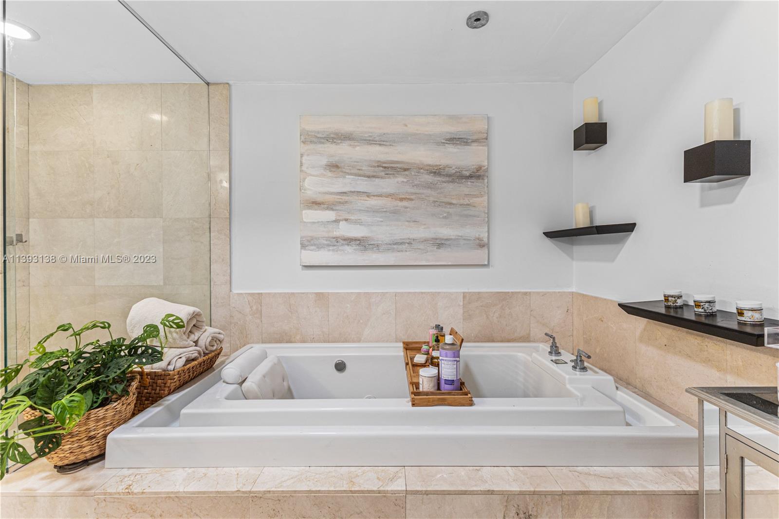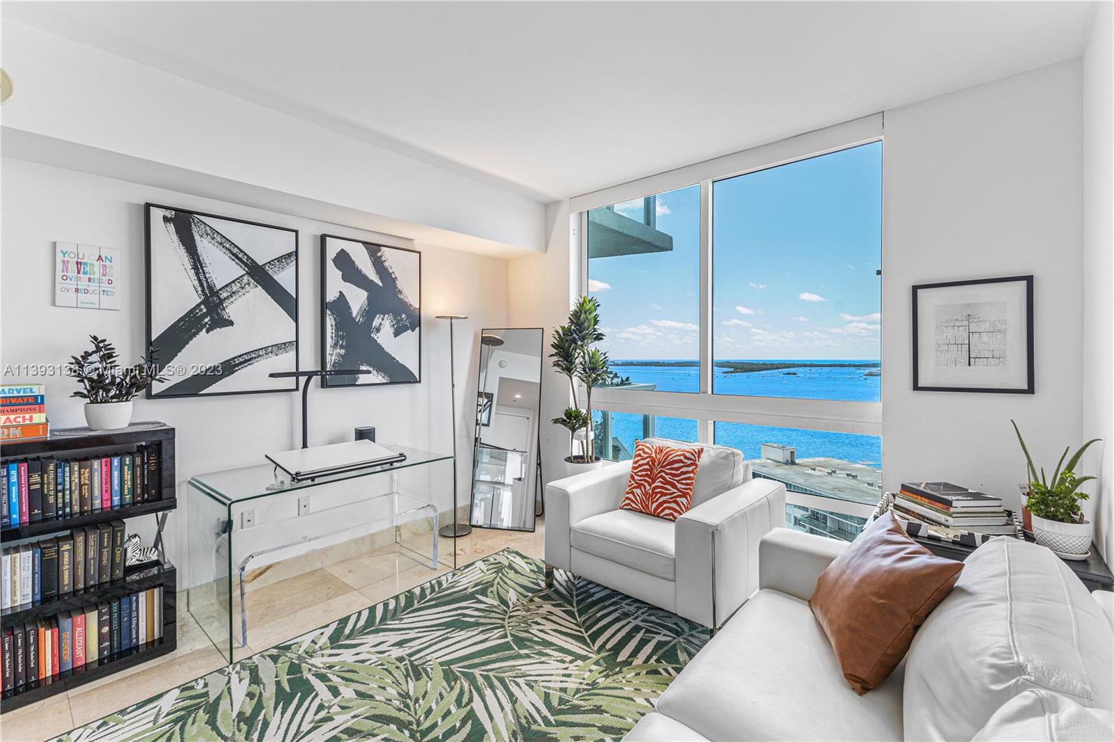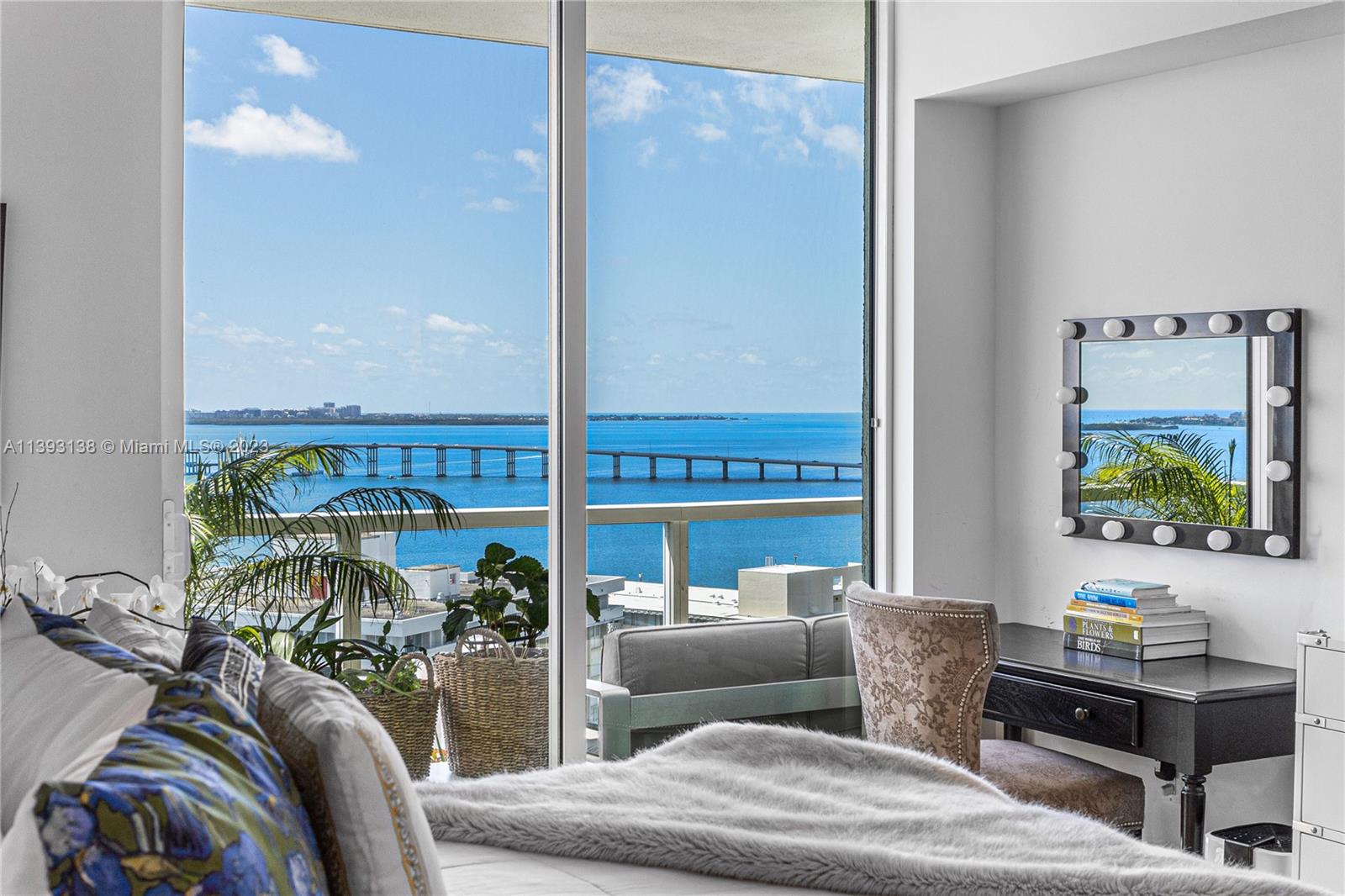 Elegantly updated 2 beds, 2.5 baths split floor plan, featuring ~1,300sqft with exclusive 11ft high ceilings and floor-to-ceiling windows throughout providing unobstructed water views! Tastefully redone half bath, new built-ins and flooring in the walk-in closet, high-end automatic shades, modern light fixtures with dimming capability, new cabinetry in the laundry room, and a new stove top in the kitchen. The bright and airy kitchen has double ovens, sub-zero fridge, and a cooking island. Unwind as you walk into your spacious master bedroom with direct access to the balcony. Located in the upscale Emerald building with a rooftop pool and jacuzzi, 24 hour front desk and security, valet, a fully equipped gym, and much more. In the heart of Brickell!