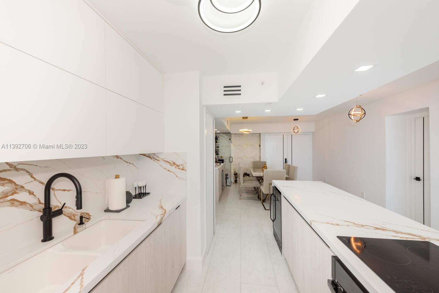 Remodeled with the utmost attention to detail, this impeccable direct ocean front unit comes with two balconies, a custom wine cellar. Kitchen counter tops in Calcutta gold. Porcelain by Porcelanosa in the bathrooms. Custom made walk in closets. Available for sale fully furnished with furnishings by Modern Miami. Too many extras to mention. Turn key. Buyer who wishes to add furnishings need only bring their personal effects. Building finishing repairs of common areas. All assessments paid in full.