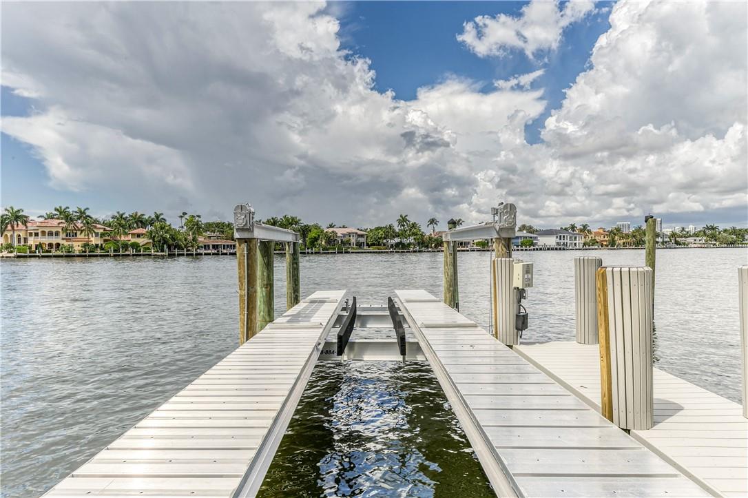 New boat lift (24,000 lbs) 40'x12' boat slip & pool side Cabana. Luxury boutique bldg 31 residences. Flow through unit, 3 bedrooms, ensuite baths, den/office, half bath, 2 terraces, & summer kitchen, flat screen tv, grill, refrigerator, sink, & ice machine on sunset terrace. Custom designed lighting throughout, electric shades, high impact glass, & continuous sound system throughout. Gaggenau GAS cooktop, oven, refrigerator, wine cooler & Bosch dishwasher, Scavolini Italian cabinets & quartz counter tops. Amenities: rooftop pool, with ocean views, sunset pool & private marina, flow through lobby designed by Steven G, state of the art gym & more. 2 garage spaces & 2 pets ok. Close to beach & restaurants.