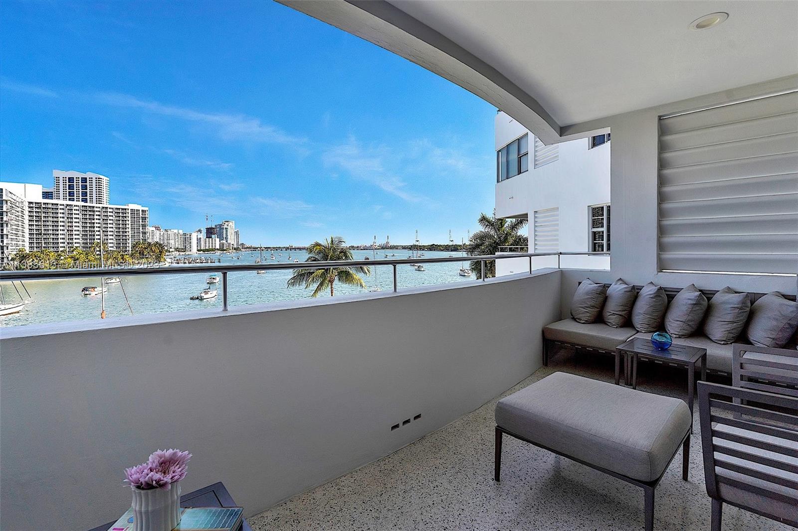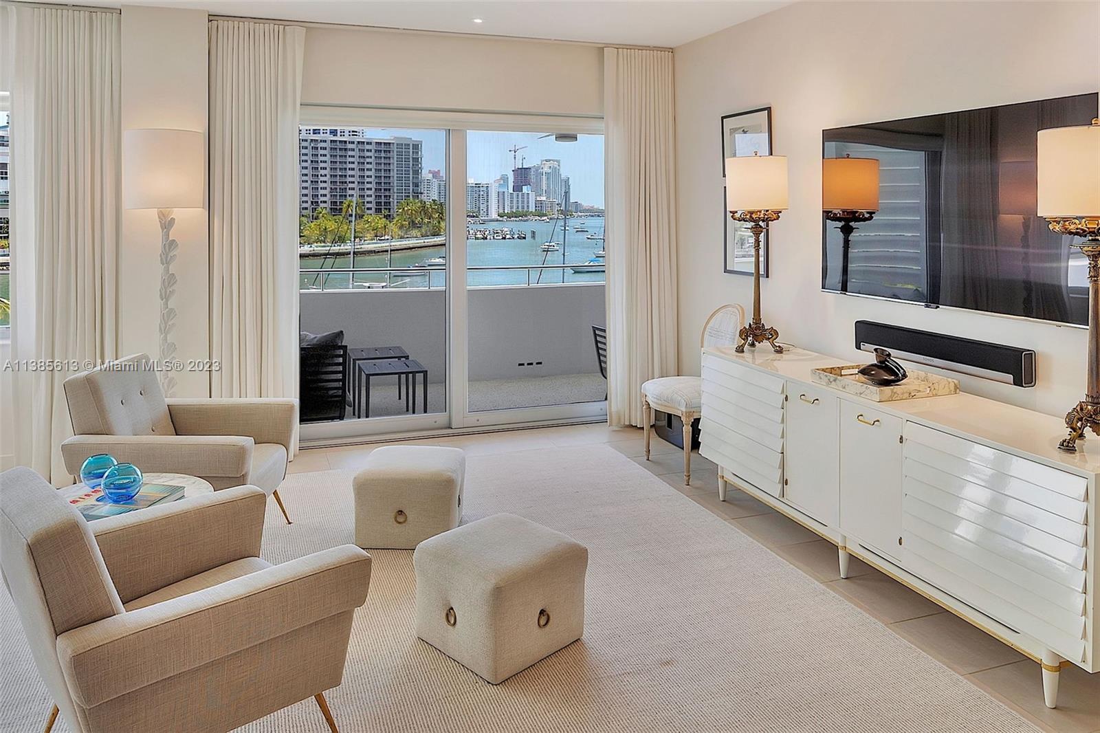Come home to unobstructed bay views from every window of this rarely available line in Belle Towers, the quintessential mid-century building designed by B. Robert Swartburg, architect of the Delano Hotel. The expansive balcony offers access from both the living room and bedroom, which features a 5-piece bath and large dressing room outfitted by California Closets. With a state-of-the-art chef’s kitchen, open dining area, gracious powder room and custom lighting, this is an exceptional opportunity to own a turnkey residence in Belle Isle’s most prized condominium. Renowned for its open-air lobby, Belle Towers offers the best of bayfront living with a heated pool, BBQ area, covered parking and valet for guests. Dock space for lease. Convenient to Sunset Harbour shopping and restaurants.