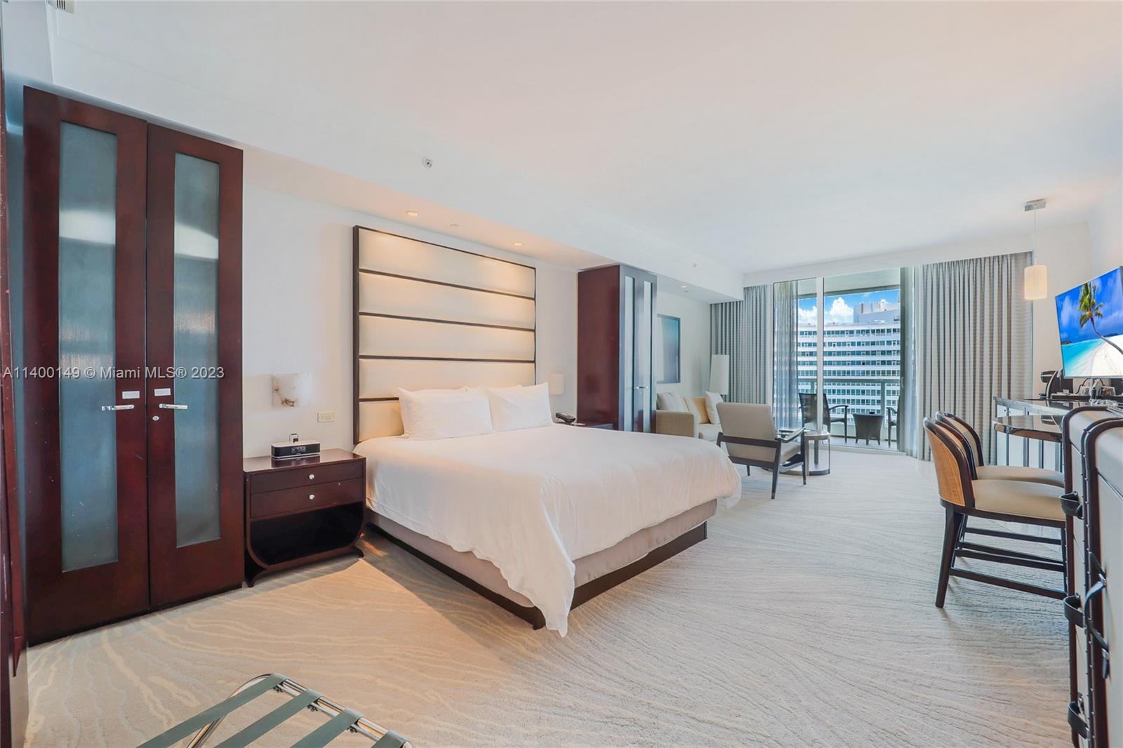 Fabulous junior suite with sweeping wide ocean and hotel pool views. Experience resort style living in this fully furnished unit with a king sized balcony. Enroll in the hotel program to receive income when not being used by the owner. The Fontainbleau resort is a luxury oceanfront property with numerous highly rated restaurants. Along with swimming pools, exercise rooms and nightlife onsite at the property.