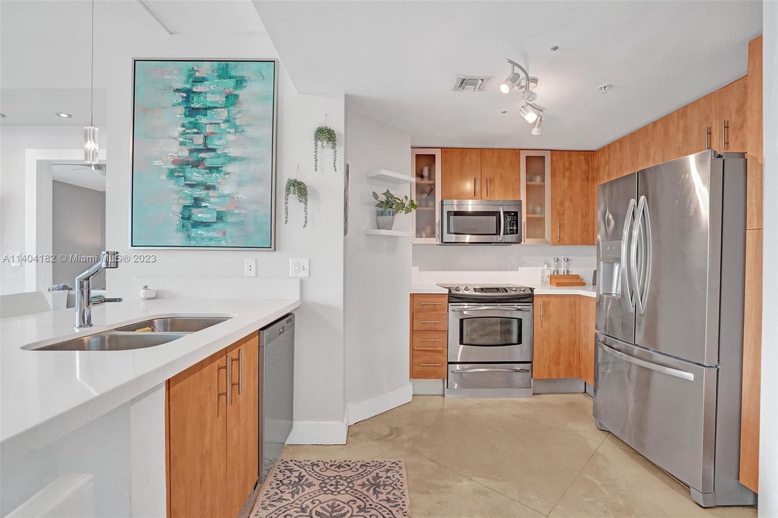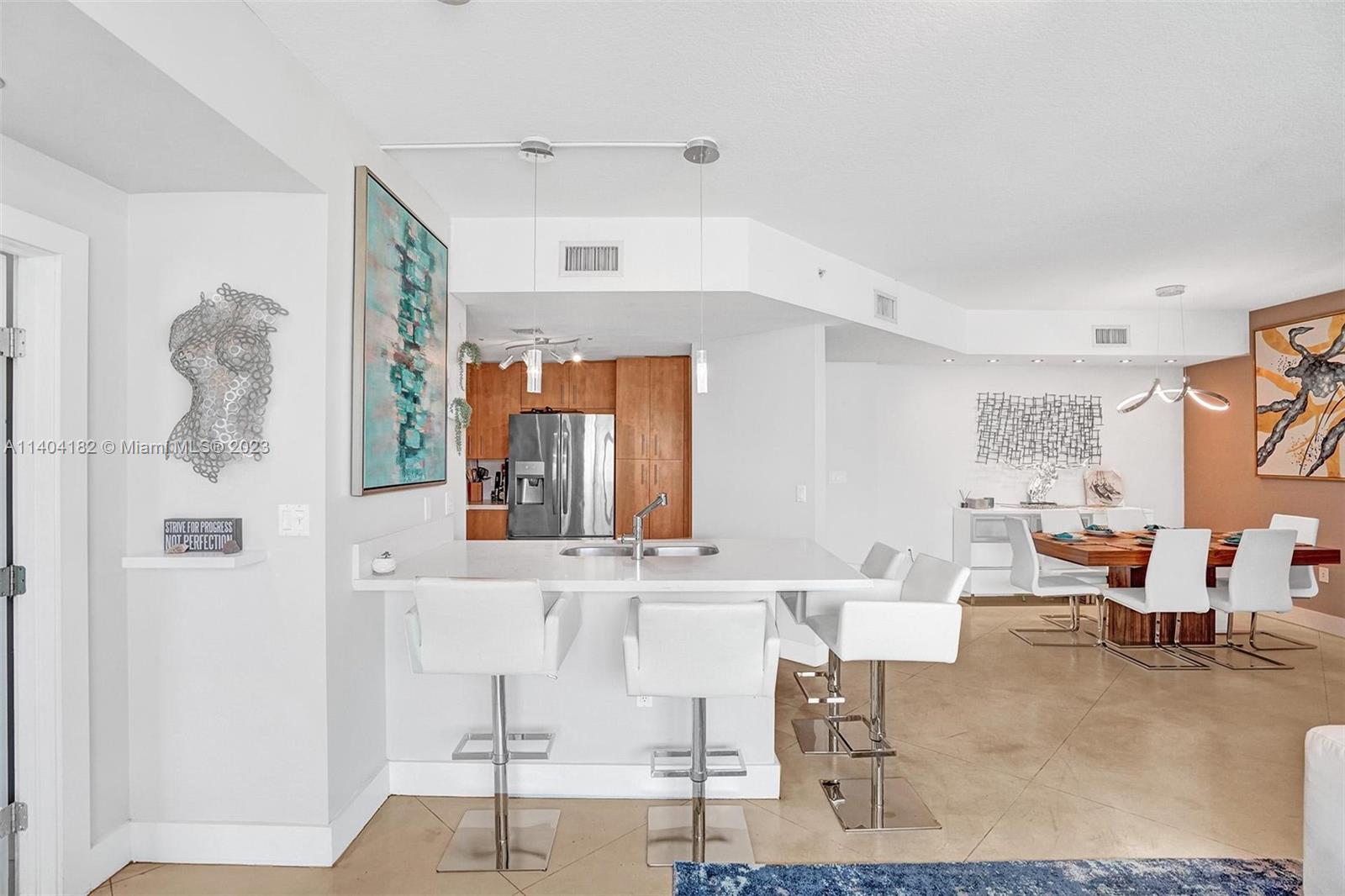 Luxurious condo at 360 Condominium! This unit has been beautifully renovated & features quartz countertops in the kitchen, stainless steel appls, polished concrete & marble flooring, roller shades/blackouts (remote shades in living room), custom solid wood doors w/stainless steel inserts, built out master bed closet & designer lighting throughout. The floor plan was reconfigured to make a larger living room. The floor to ceiling windows/sliding doors open up to an expansive balcony offering beautiful views of the bay and downtown Miami. 360 Condo is a private & gated community that offers 24hr sec.,concierge, marina, free valet, electric vehicle charging stations, two pools, sauna and gym. (Floor plan is 1,340 interior SF, public records show 1,251 incorrectly) (AGENTS: see Broker remarks)