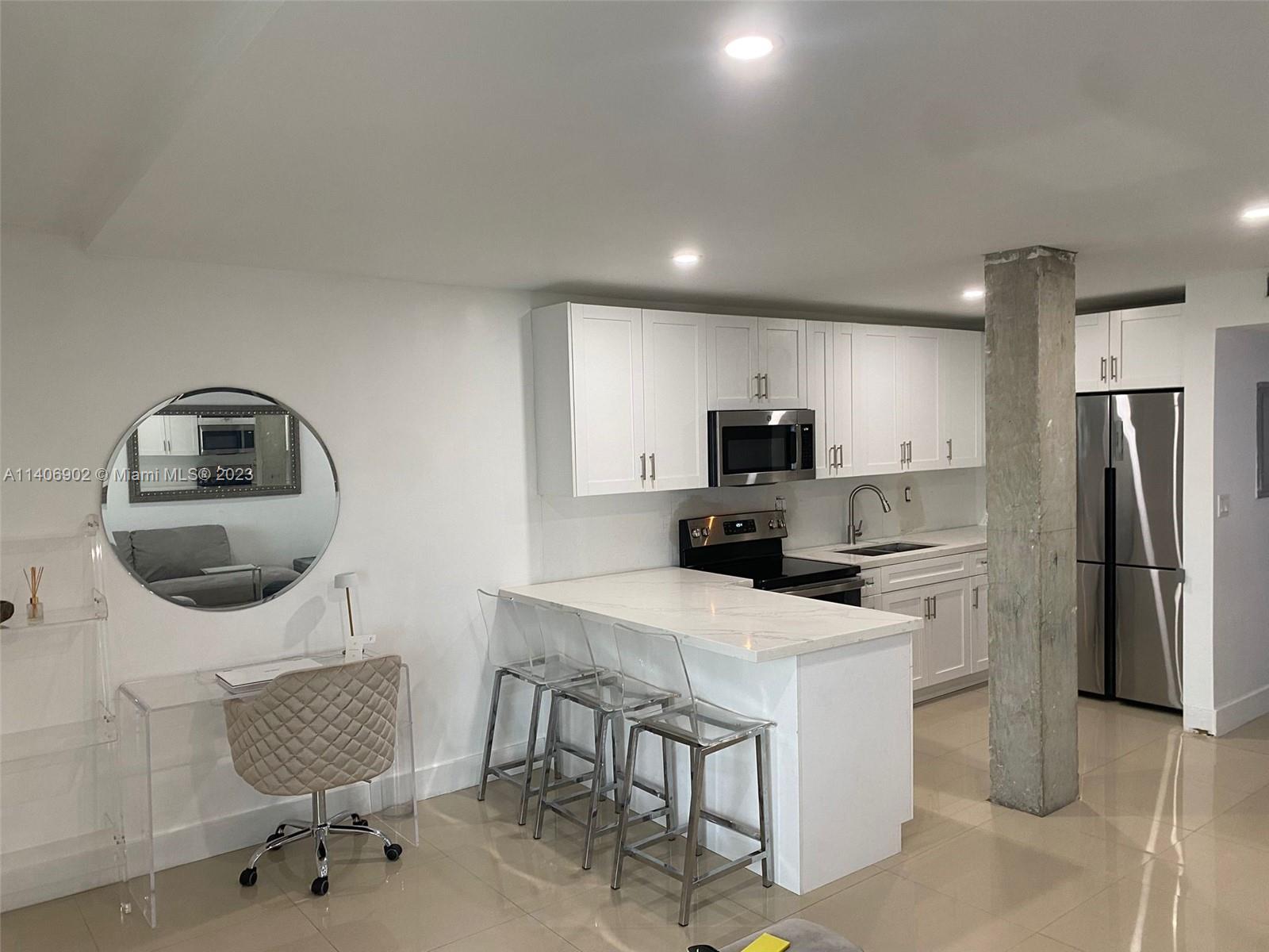 Looking for cash buyers only! Perfect opportunity to live or invest in the centrally located building at 1100 Alton Road! Ready to move in. Meticulously updated from floor to ceiling, not a detail missed on this centrally located condo. WASHER DRYER & ASSIGNED GATED PARKING INCLUDED! Ceramic tile floors, white quartz countertops, white shaker, soft close cabinets, tankless water heater, huge shower with rainfall showerhead, 65" LED mirror, stainless steel appliances, impact window in bedroom and open balcony seating areas, what more could you ask for? Definitely a must see. Located directly across from The Mondrian, Whole Foods, & Flamingo Park you wont find a better location than this! Rent property right away!
