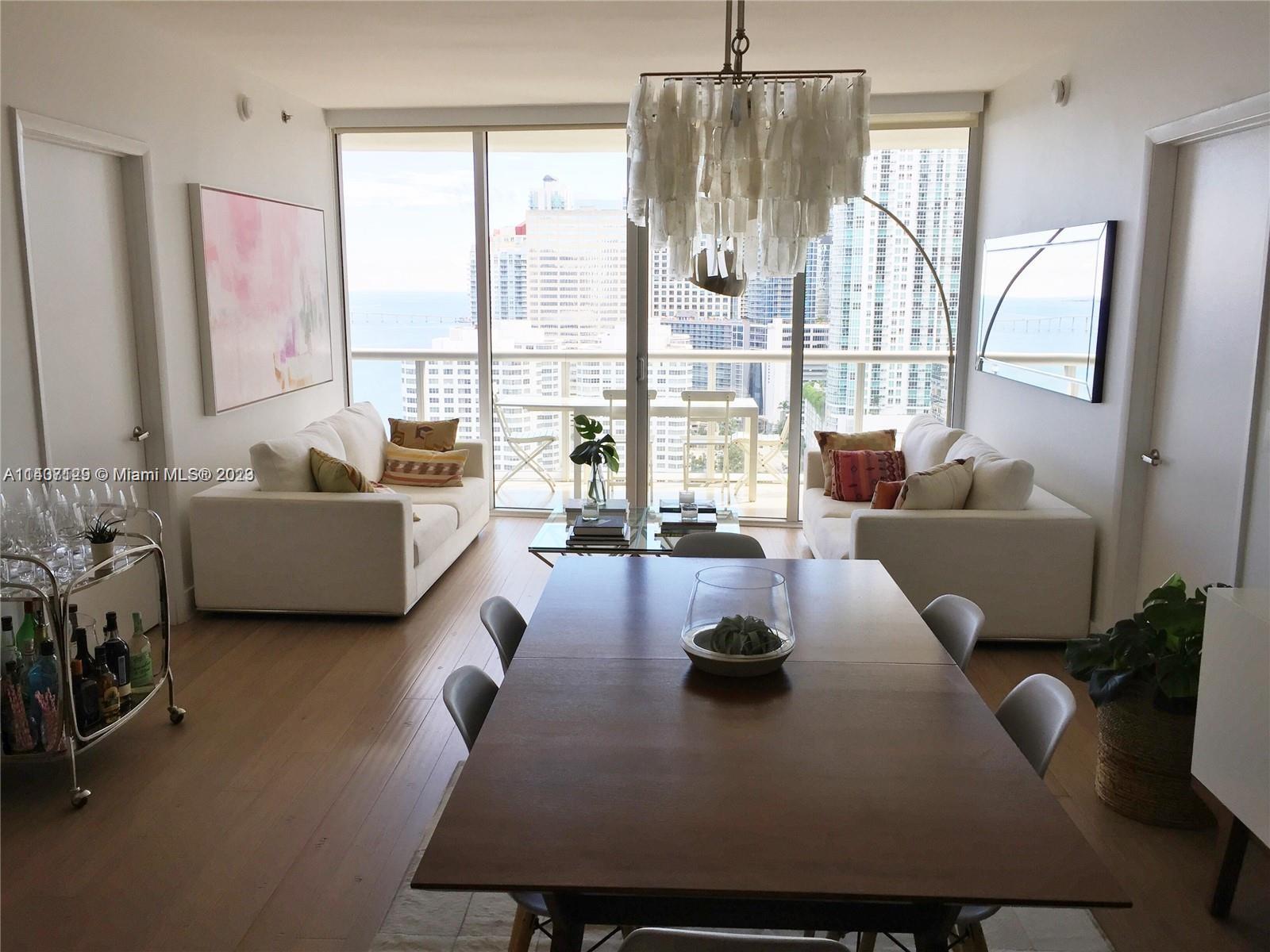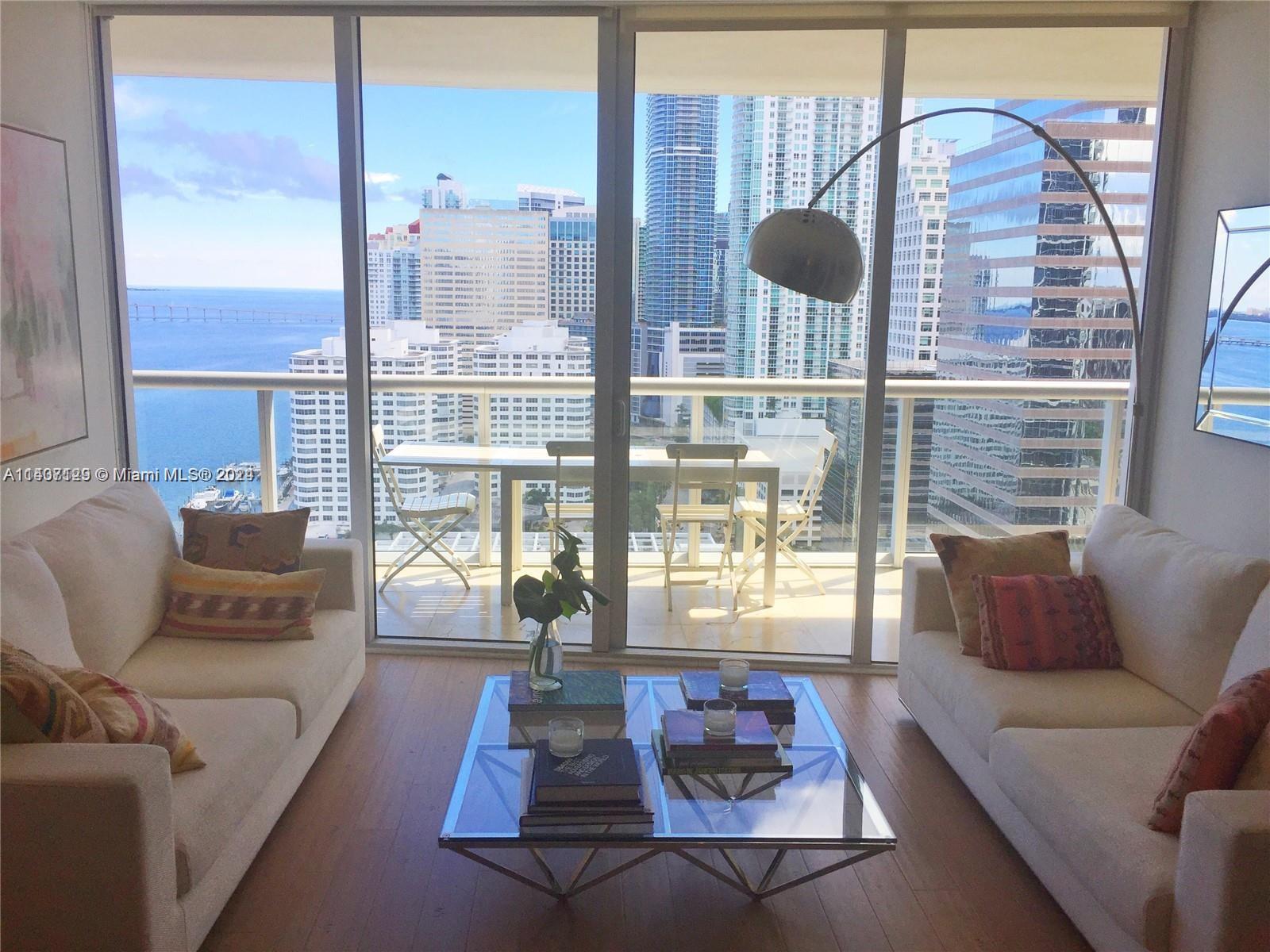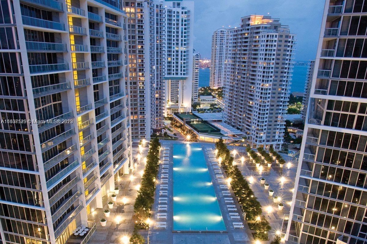 ICON Brickell is the pinnacle of style & class in Brickell and unit #2403 exemplifies that. Spectacular Southern exposure delivers incredible water and skyline views over the Bay, the Miami River and all of Miami's nightlights. The floorplan is perfect, sporting two bedrooms plus an enclosed den currently in use as a third bedroom, chic custom lighting, gleaming hardwood floors, top of the line Bosch, Subzero and Wolf appliances, finished closets and sleek window treatments. ICON Brickell's amenities are unmatched and include the newly remodeled 2-acre pool and hot tub decks, spa and gym overlooking Biscayne Bay with free yoga and exercise classes, private theatre, 24/7 concierge & valet and award-winning restaurants Cantina La Veinte & Cipriani in the lobby. This unit is a cut above.