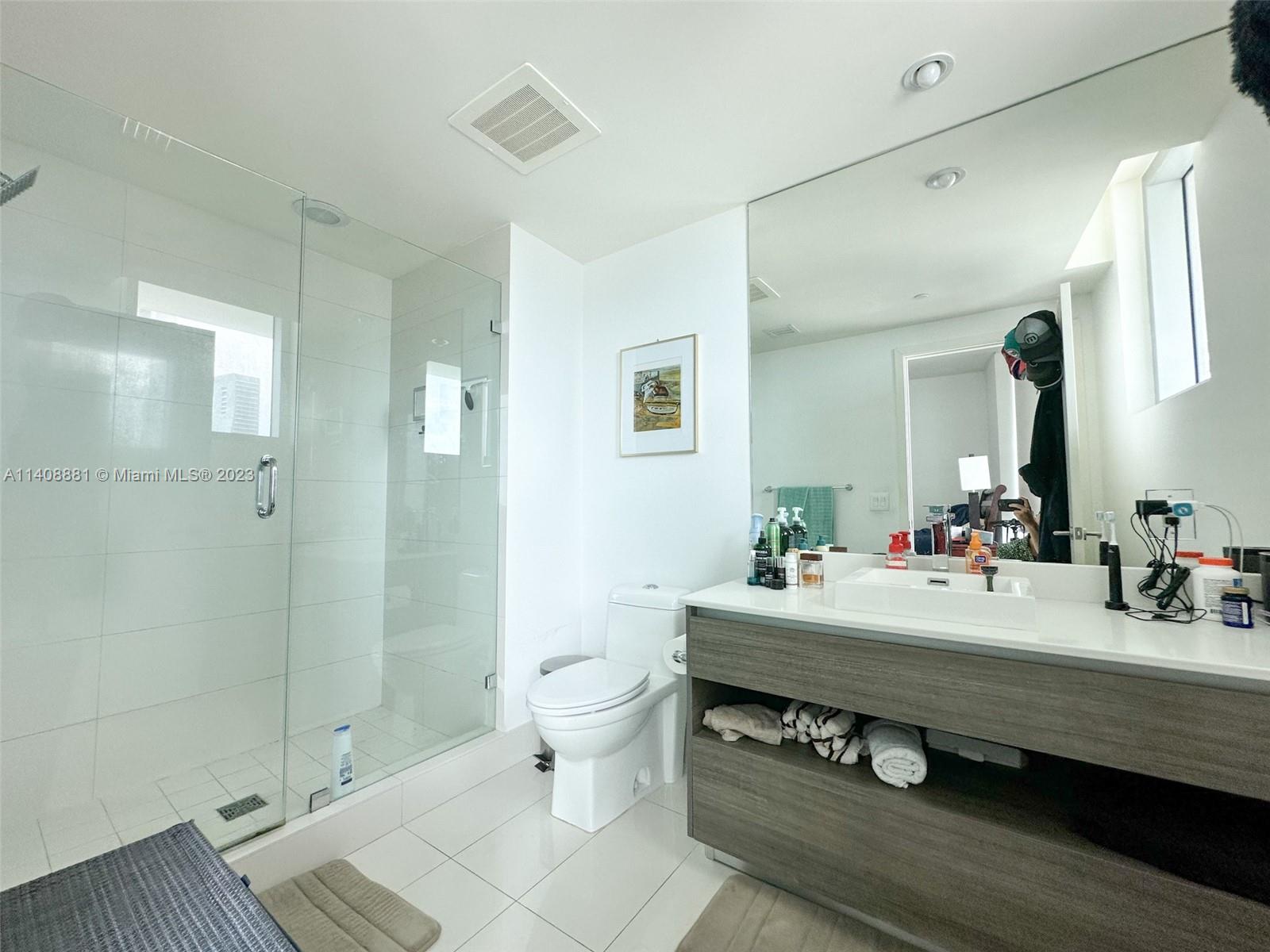 Experience luxury living at its finest with this stunning 2 bedroom, 2 bathroom condo at the heart of Brickell area. This property boasts porcelain tile floors, Italian kitchen with imported stone countertops, and designer bathroom fixtures and accessories. Enjoy breathtaking views from the private balcony with glass railings that overlook the city. The spacious rooms feature floor-to-ceiling windows that allow natural light to pour in and create a warm and inviting atmosphere. This pet-friendly unit also includes a dishwasher and washer and dryer in a private closet for added convenience. The master bedroom features an en-suite bathroom with a tempered glass shower door while the second bathroom comes with bath tub.