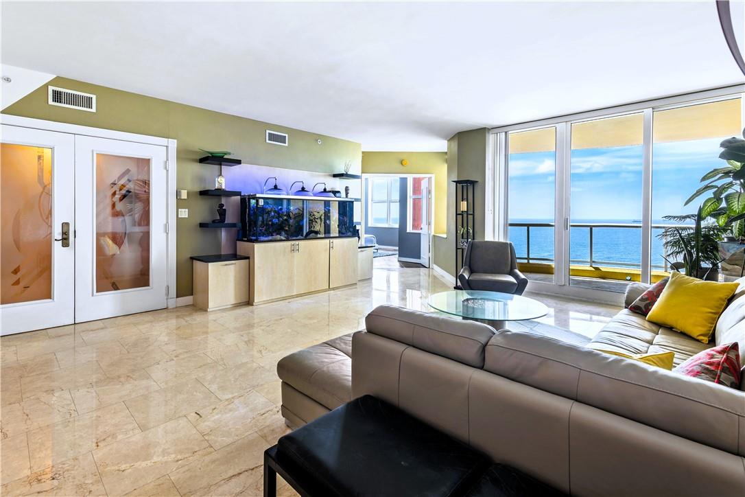 The best oceanfront, coastline + intracoastal views from this 18th floor, 3 bedroom, 3.5 bath floor-through with 2 terraces located directly on the sand! Stunning designer updated Chef’s kitchen and spa bathrooms, walk-in closets, private, direct entrance elevator foyer, washer/dryer + additional storage. Impact glass throughout. The Palms offers superior security, privacy, amenities + location w/450’ of oceanfront, chair service, 2 pools, full gym, yoga studio, steam, sauna + therapy rooms. Tennis courts, catering kitchen, bar + residents lounge, game room, billiard room, office center, valet + concierge complete the Palms experience. Directly adjacent are the Auberge Spa, Dune + other dining alternatives. Convenient to Las Olas, Port Everglades + Fort Lauderdale International Airport.