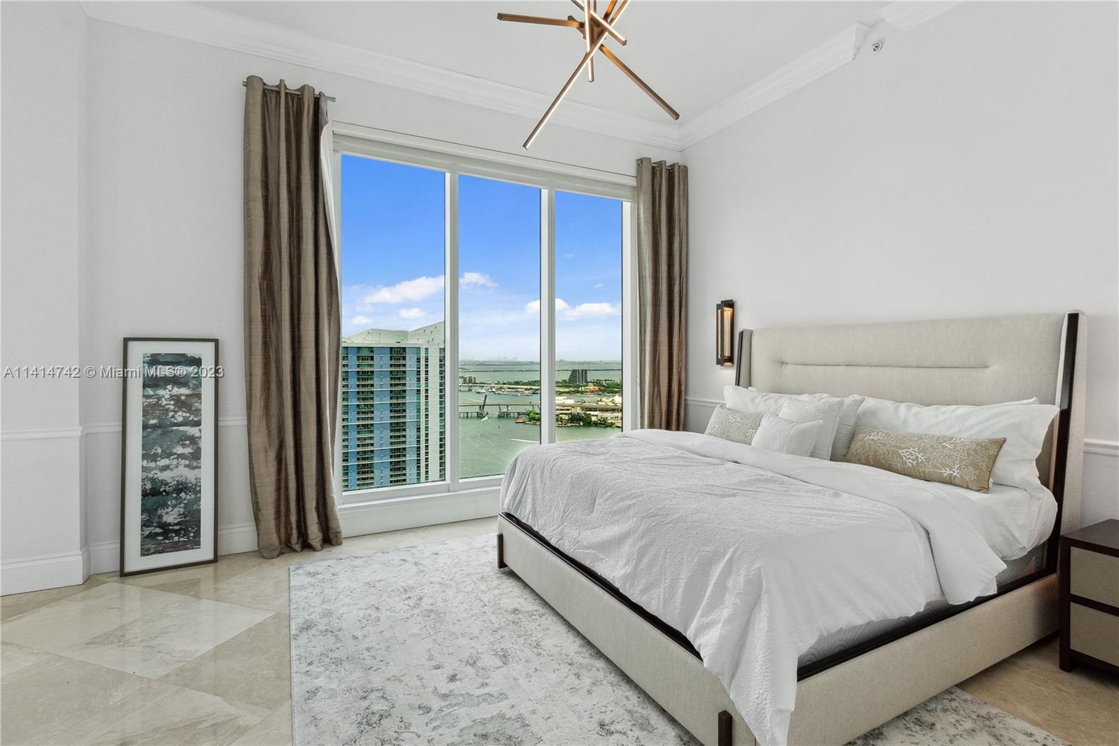 BEST PRICED 2 Bedroom at Asia, Brickell Key's top building. This is the HIGHEST 02 line in the building just below the Penthouse and comes fully furnished. 12 foot ceilings oversized balcony with the BEST views of Miami. Split floorplan with 2 oversized bedrooms with walk in closets. Master bath w/ Double sinks, Jacuzzi, Marble shower. Unit includes Gourmet Kitchen w/ Sub-zero & Miele appliances, upgraded Lighting throughout, beautiful crown molding, added interior storage room, & upgraded washer/dryer. The unit comes with 2 Parking Spaces, Private Fingerprint Elevator to the unit's Foyer & stunning views of the Bay/Miami River/Port/Ocean & Downtown. Enjoy the relaxing island living with the 5 Star Mandarin Oriental, Restaurants, but still be walking distance to Miami's urban core.