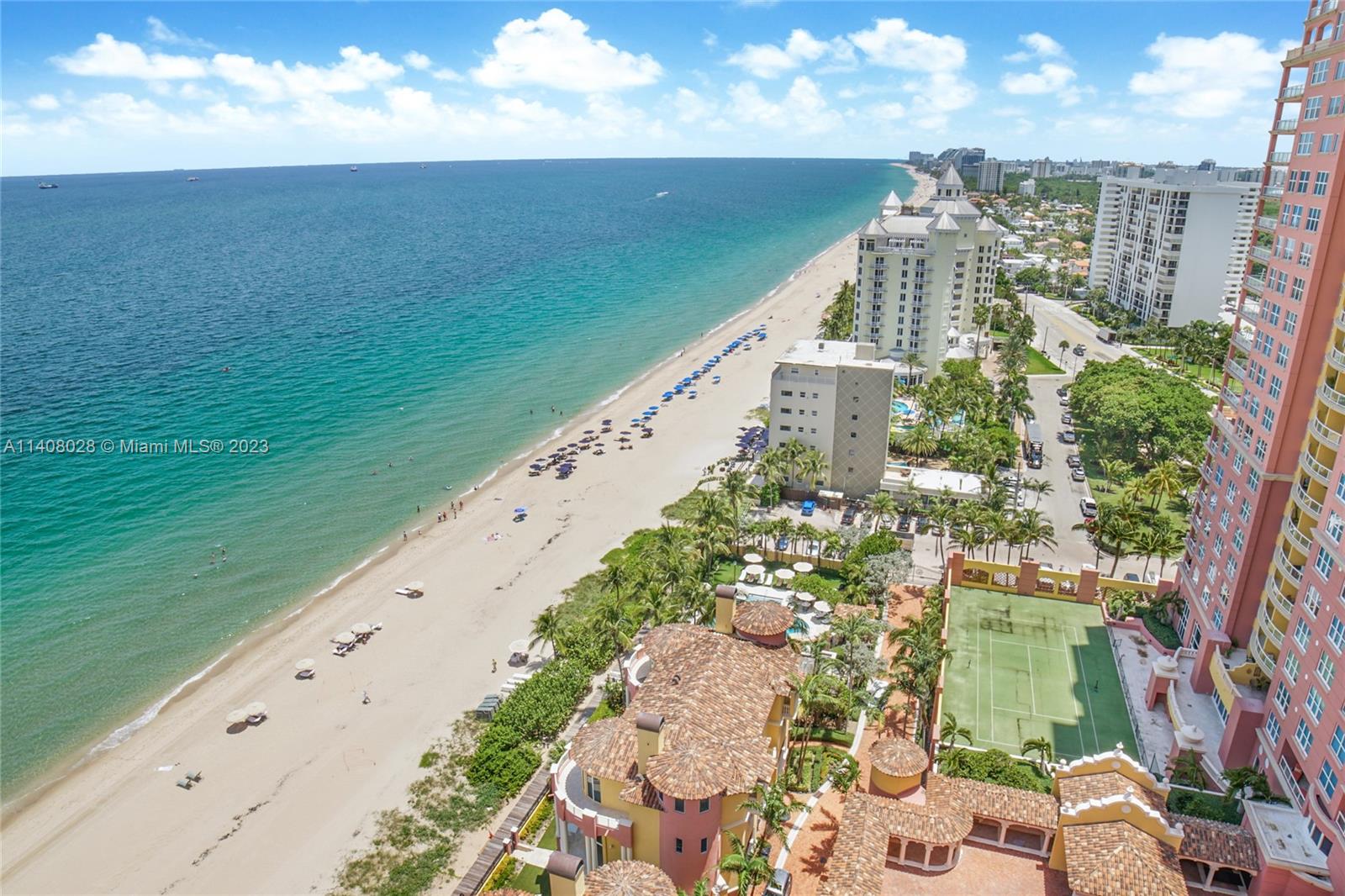 Highly desirable southeast facing Florence model at The Palms II offers some of the best views in South Florida. Features include panoramic ocean views from all rooms, dual terraces and a highly desirable 3 bedroom, 2.5 bath floor plan. Gracious living and dining area, marble flooring, Snaidero cabinetry, Sub Zero, oversized master suite with sitting area, oversized master bath with separate whirlpool tub and shower, dual sinks and separate water closet. Enjoy five star resort amenities such as two pools, attended beach, tennis, fitness center with racquetball, squash, steam room and sauna, elegant club rooms, beautifully appointed lobby, 24 hour security, gate house entry and valet parking. Adjacent to restaurants, spa and hotels and close proximity to Las Olas, Brightline & airport.