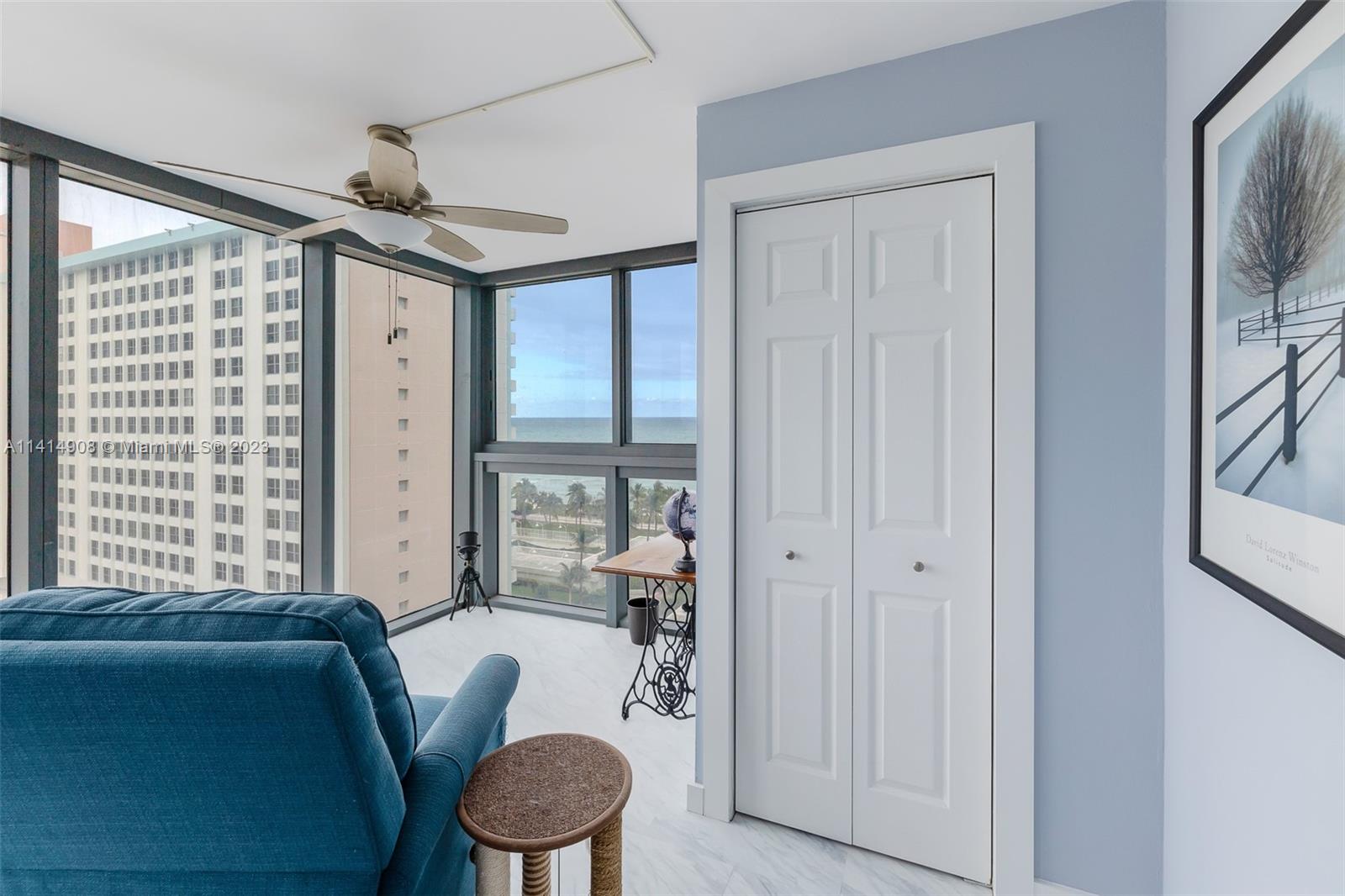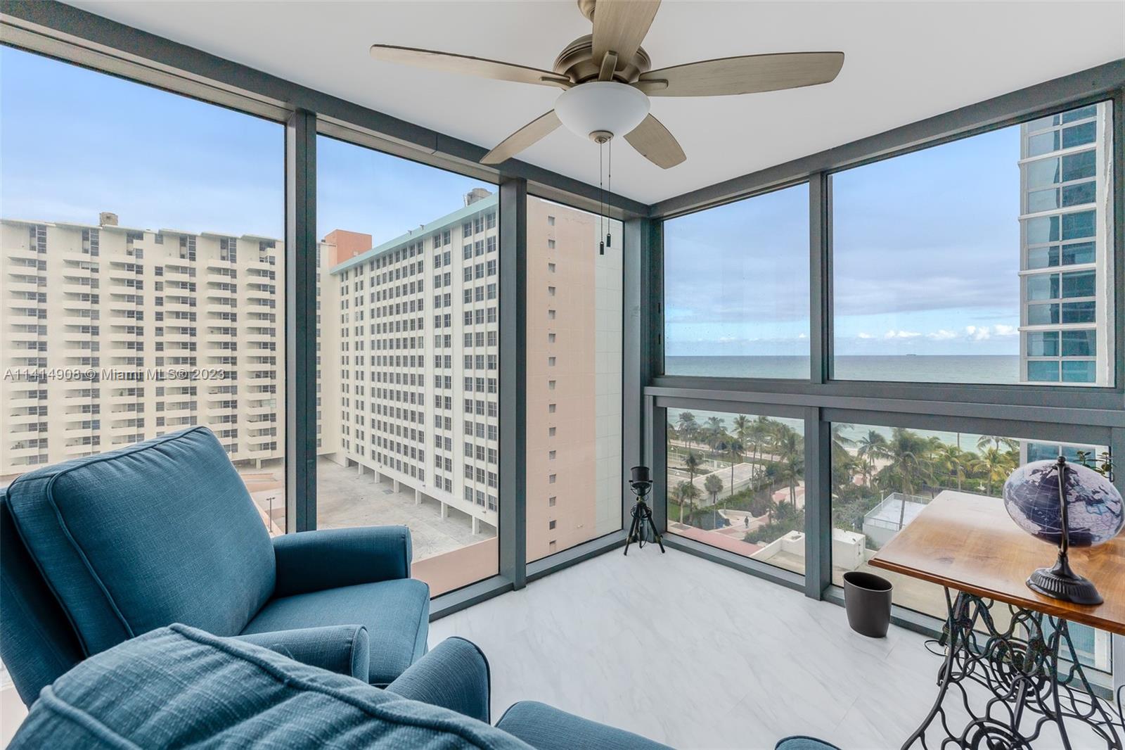 Completely renovated condo with oceanfront views located in heart of Miami Beach. Condo features an ocean-facing balcony and sunroom, a large master bedroom with spacious walk-in closet, totally gutted and renovated bathrooms, brand new floors, paint & kitchen. New floor to ceiling impact windows and doors throughout. Take a quick walk to your “backyard" pool, boardwalk, beach and ocean. Located within blocks of the One Hotel, Edition Hotel, Faena, amazing restaurants and nightlife and all that South Beach offers! Covered parking space deeded with the apartment. 24/7 attended lobby, heated pool, sauna and gym are all included in the low HOA fee! Unit offers a bonus room that can be an office /sunroom /den /second bedroom.