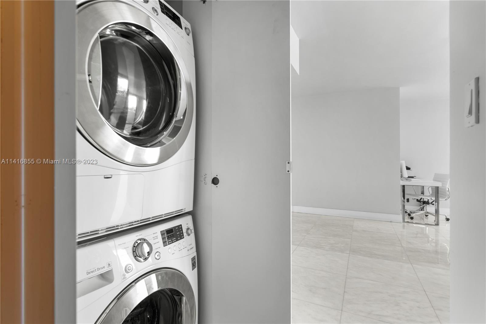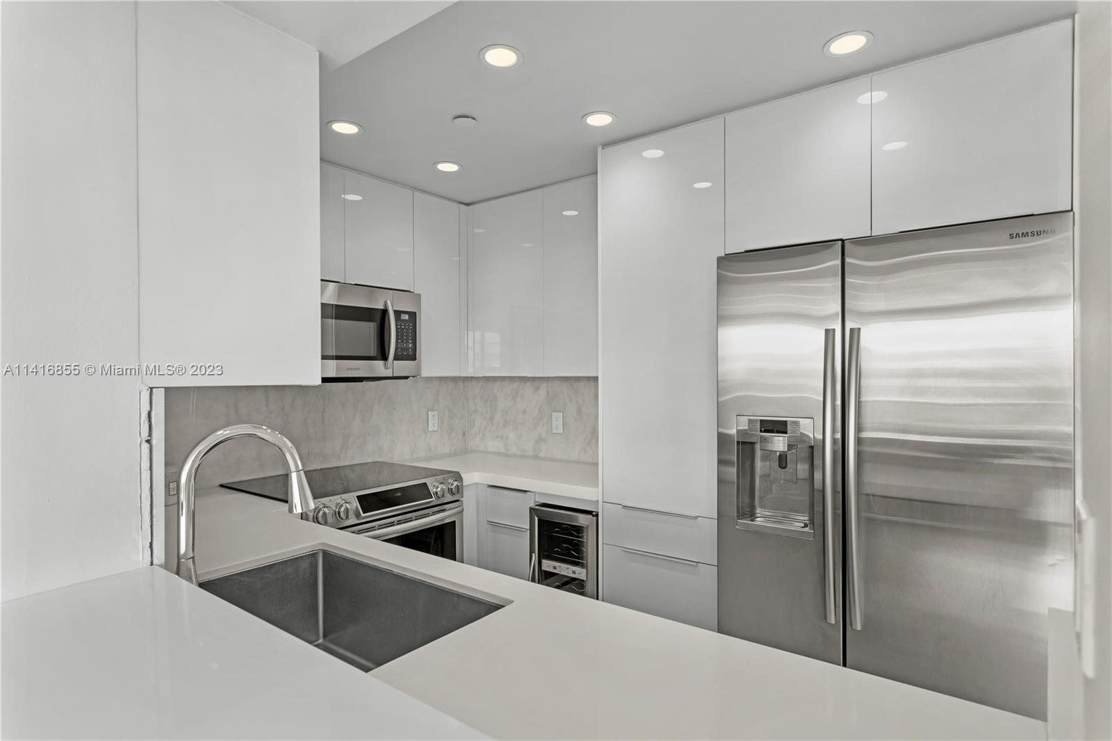 Beautiful corner unit at Mirador North. This unit has been FULLY renovated, including kitchen, bathrooms, marble flooring, and in-unit washer and dryer. This is the most updated and modern unit to hit the market in awhile. Well maintained building with friendly staff and stable HOA. Best condo gym in South Beach overlooking the Bay. One valet parking spot included with unit. Next door to world-famous Mondrian Hotel