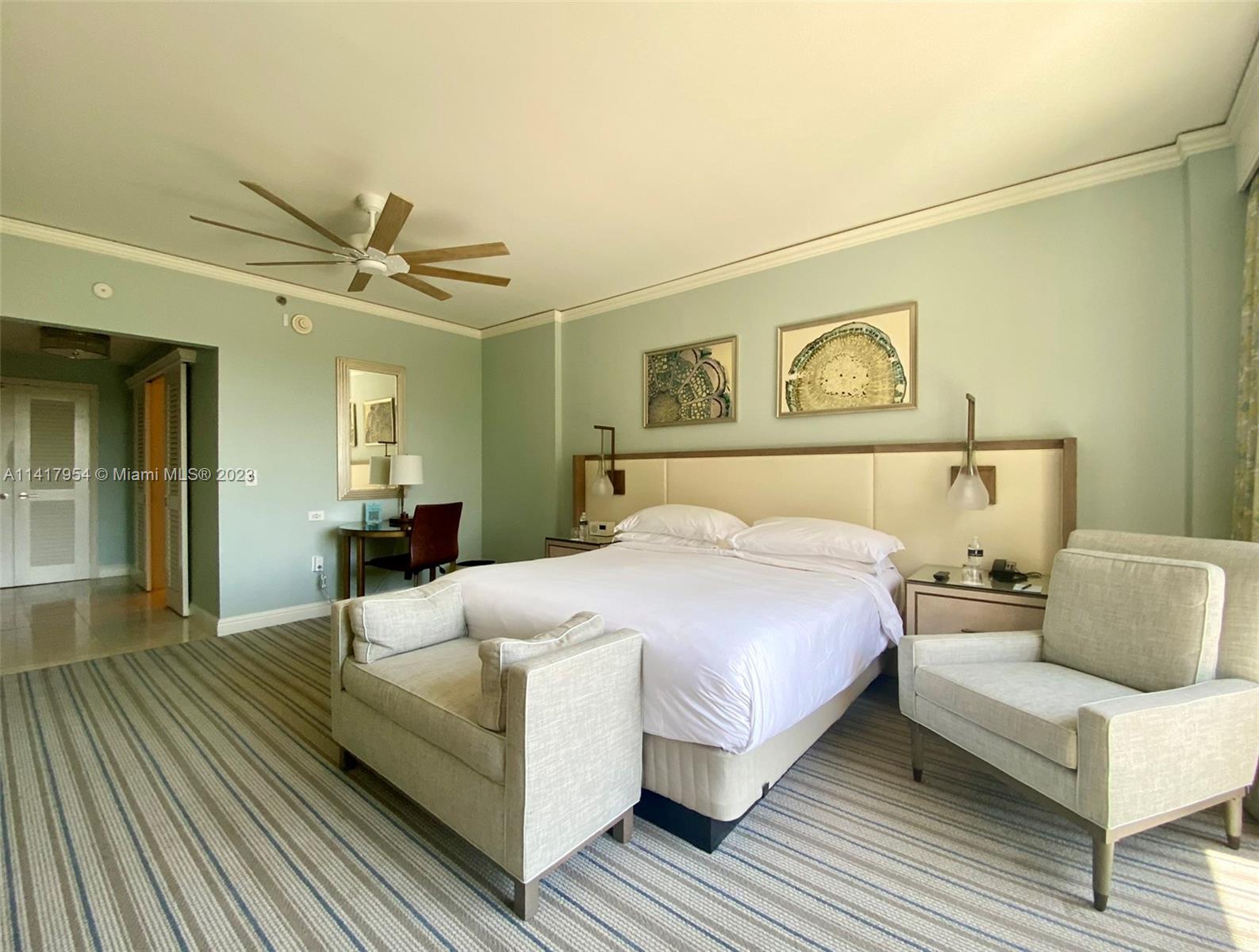 Great opportunity to own a spacious resort view studio at The Ritz-Carlton in Key Biscayne. Drive over the Rickenbacker Causeway for a getaway, yet steps away. Arrive at the hotel, let the Bellman take your bags to your own condo-hotel residence while you check in. “Living at the Ritz” could not get any better. Have a spa treatment, relax at the pool or beach and go eat at one of the hotel's ocean front restaurants. Let the Ladies and Gentlemen of the Ritz-Carlton manage your unit, while you enjoy all of the benefits of owning a piece of this resort hotel. Amenities include concierge service, valet, gym, tennis, spa, pool/beach service, in-room dining, housekeeping and lots more. Stop by the in-house café or go shopping at Sabia Jewelers, 120% linen or Lilly Pulitzer.