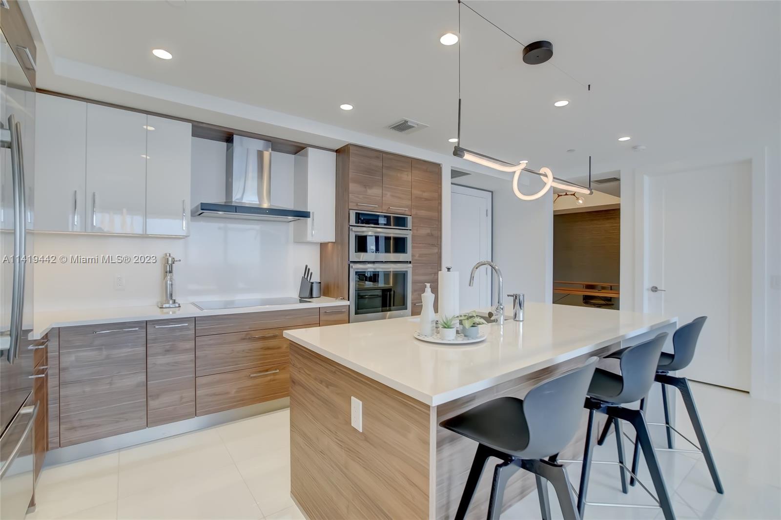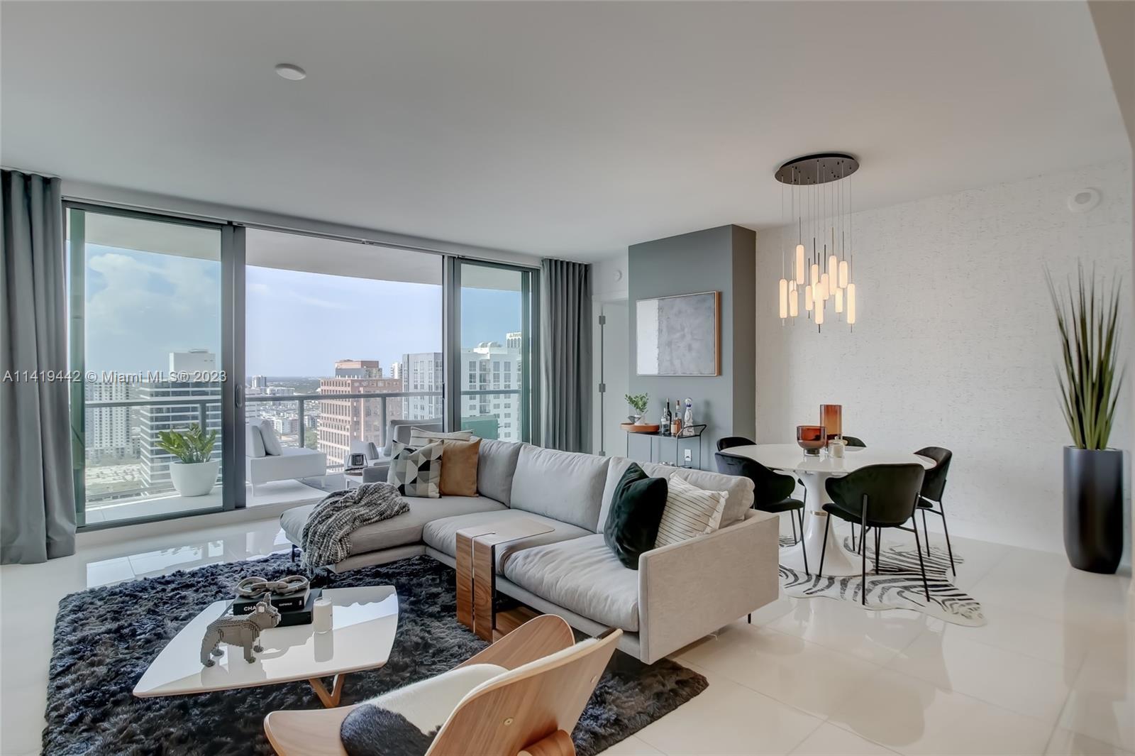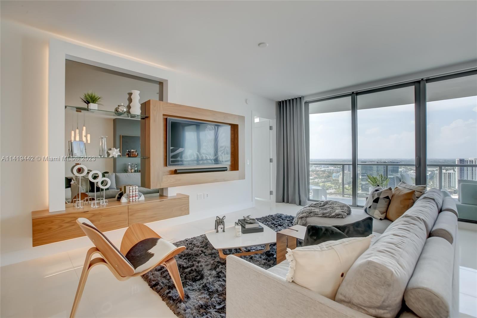 Absolute best downtown address! Breathtaking views featuring floor-to-ceiling windows. Unit features 2bd/2.5 baths + office/den with an open layout, porcelain tile throughout, & all windows feature motorized shades. Kitchen equipped w/ Nolte Euro cabinetry, Jenn-Air stainless appliances, & quartz countertops. Upgrades include a full quartz backsplash, wine cooler, & custom-made closets. Unit sold fully furnished & turn-key ready! Parking includes 2 side-by-side garage spaces w/ EV charging (VERY RARE)! 100 Las Olas is the tallest building in Ft. Lauderdale w/ 46 stories & only 113 residences. Five-star resort-style amenities; rooftop pool, cabanas, fitness center, grills, club room, restaurants, 24hr doorman/security, & valet service. Rapid HOA approval. You don't want to miss this unit!