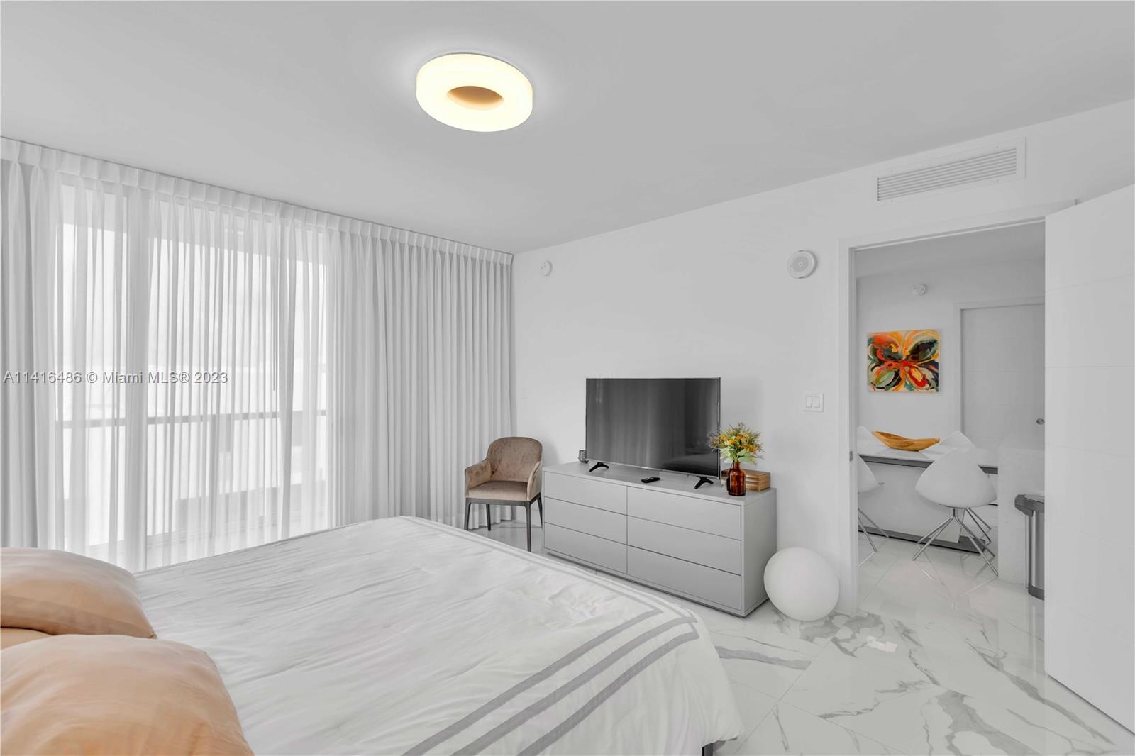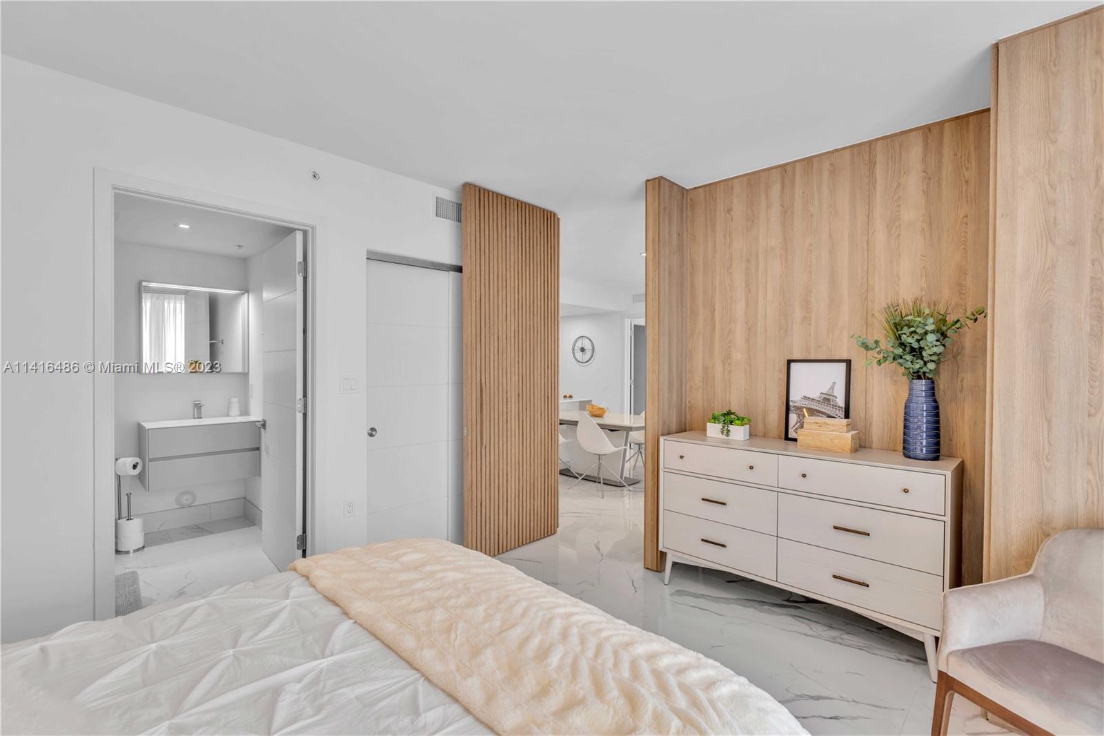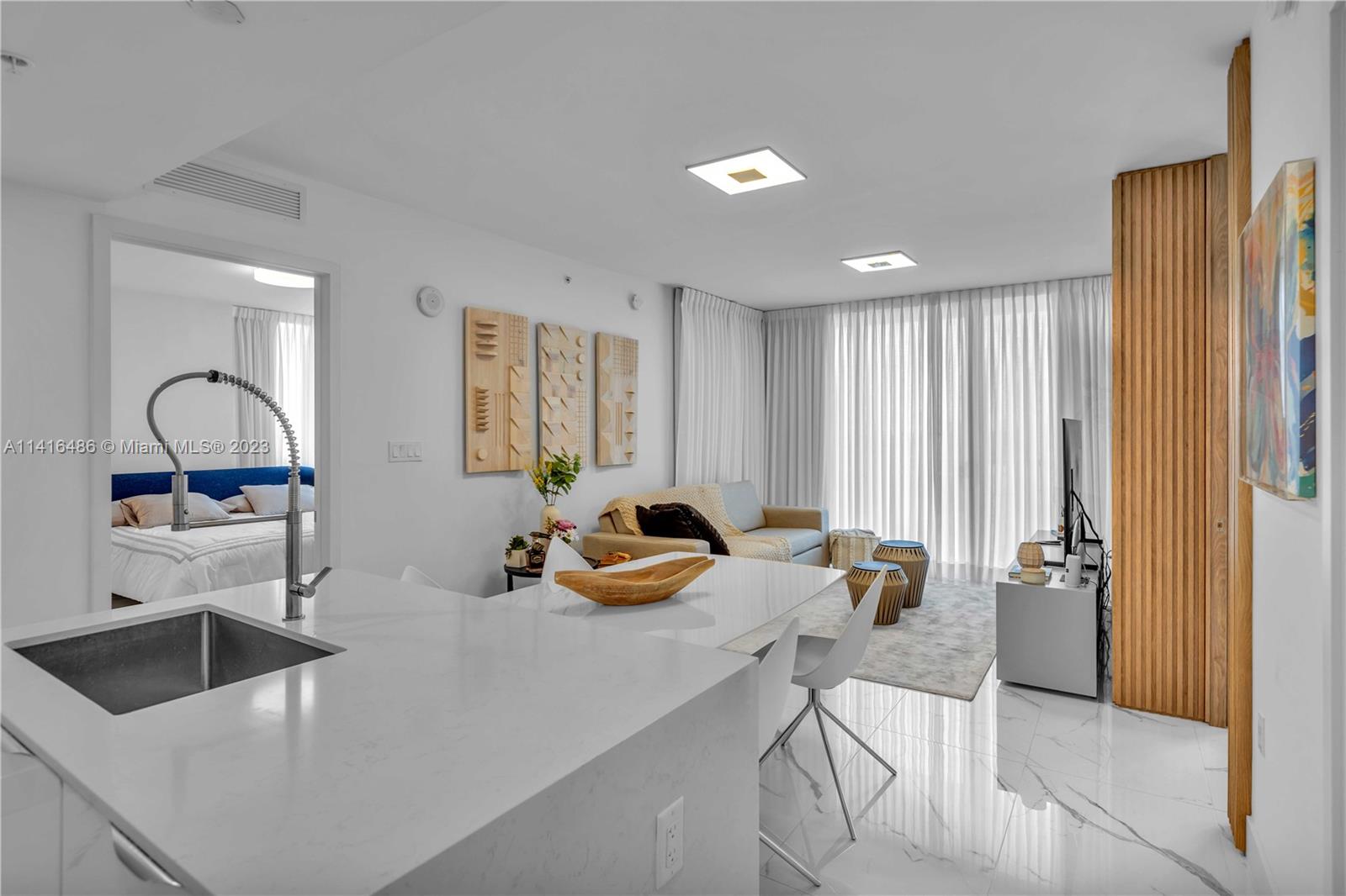 PRIME LOCATION!! Bijou is a boutique luxury building in a Prime location, within walking distance of the exclusive and renowned Bal Harbor Shops, Restaurants, and Tranquil Beaches. Fully furnished and professionally decorated unit with floor-to-ceiling glass hurricane impact windows, a very spacious 1 bedroom plus den converted to another suite and two full bathrooms with very bright and natural light, 9ft high ceilings, Subzero, Wolf & Eletrolux appliances, Mia Cuccina Kitchen, stone countertops, double sinks. Beautiful views of the Ocean, Biscayne Bay, and the city from the rooftop terrace, while relaxing by the pool, the common area includes relaxing social sitting. Marina is available for drop off and or rent, 2 valet parking spaces for the unit, 1 storage, 24-hour security.