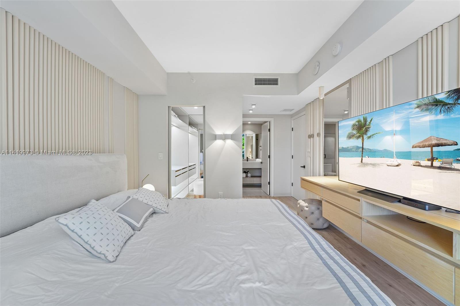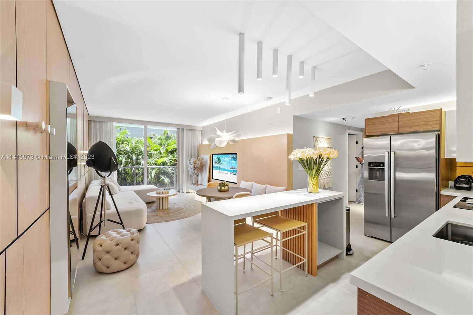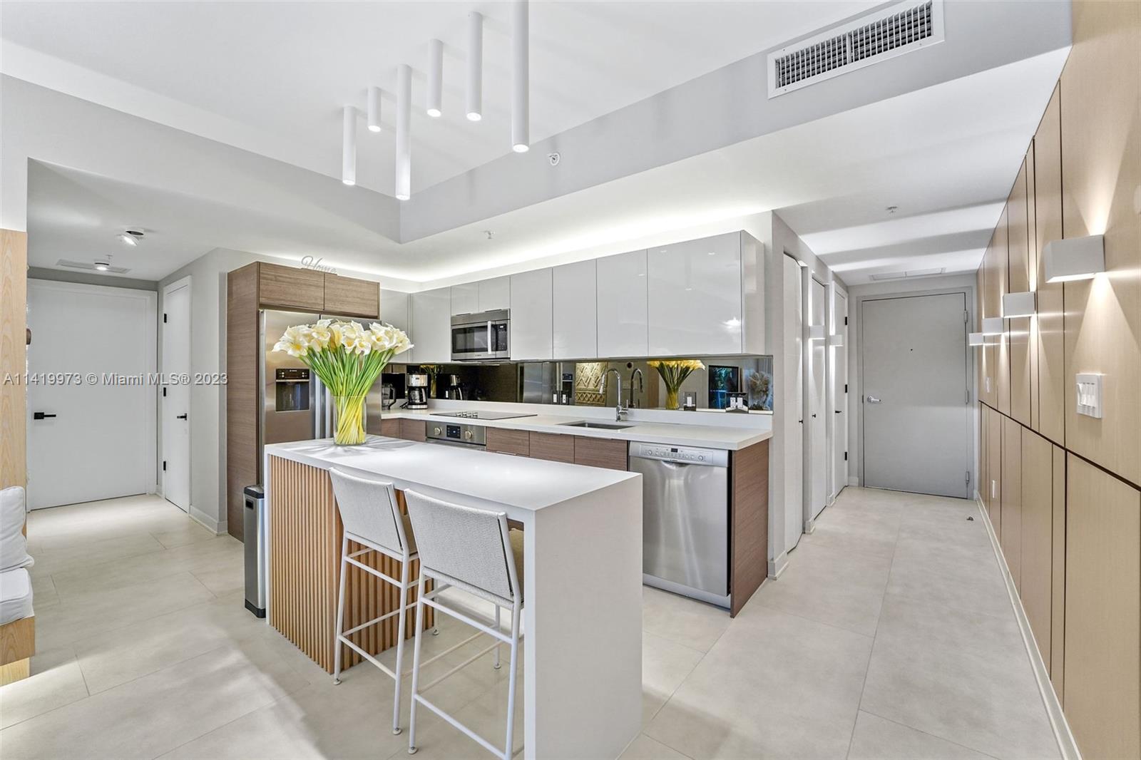 Professionally remodeled & furnished at Brickell Ten is available for sale. This home has been decorated with furniture from Artefacto & CB2. The remodeling includes custom wood paneling on several walls, solid wood built-in entertainment centers in the living room & both bedrooms, built-in bedroom furniture, high end custom closets, completely remodeled bathrooms & lighting throughout the unit. Brickell Ten is within walking distance to the offices, shops & restaurants that Brickell has to offer and has easy access to I-95. Amenities include a large pool area, rooftop gym & jacuzzi, club room and 24 hr security. The finishes, furniture & design of this unit is more commonly found in $1M+ properties.