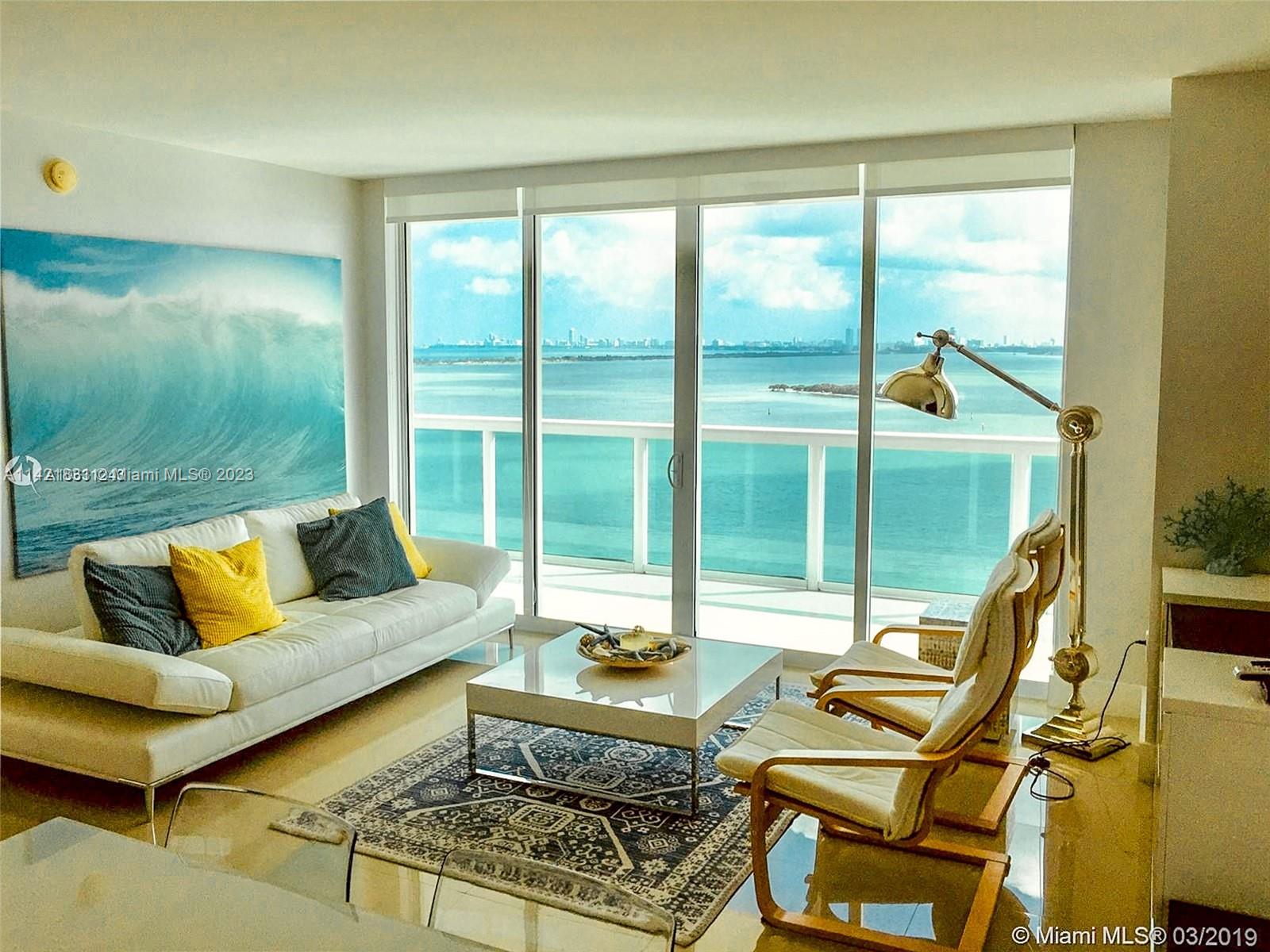 This is a wonderful upgraded 2/2 Condo at 1800 Club near Downtown Miami. Upgraded bathrooms, kitchen and closets. New window treatment and over $60K in upgrades recently invested in the apartment.Wide direct East Ocean/Bay views from living room, dining room and bedrooms. Split bedrooms with 1222Ft2 of AC space plus 252 Ft2 of terrace. Tile floors. This is a full service building includes concierge, valet service, on site management, pool, gym, spa, steam room, sauna, play room and more. HOA includes cable and internet. Walk to park, cafes, night life, supermarkets, banks and more. Five minutes to South Beach, Downtown Miami, Brickell, American Airlines Arena, Performing Arts Center, Port of Miami, Health District and Easy access to all major highways.