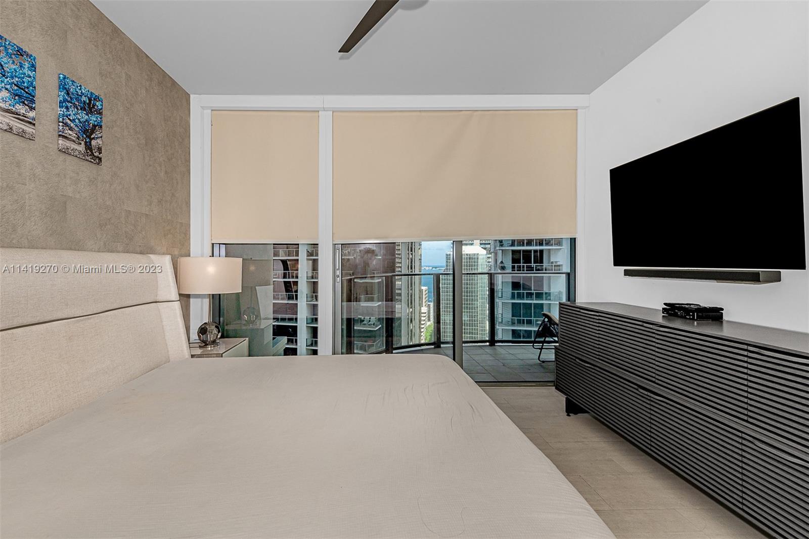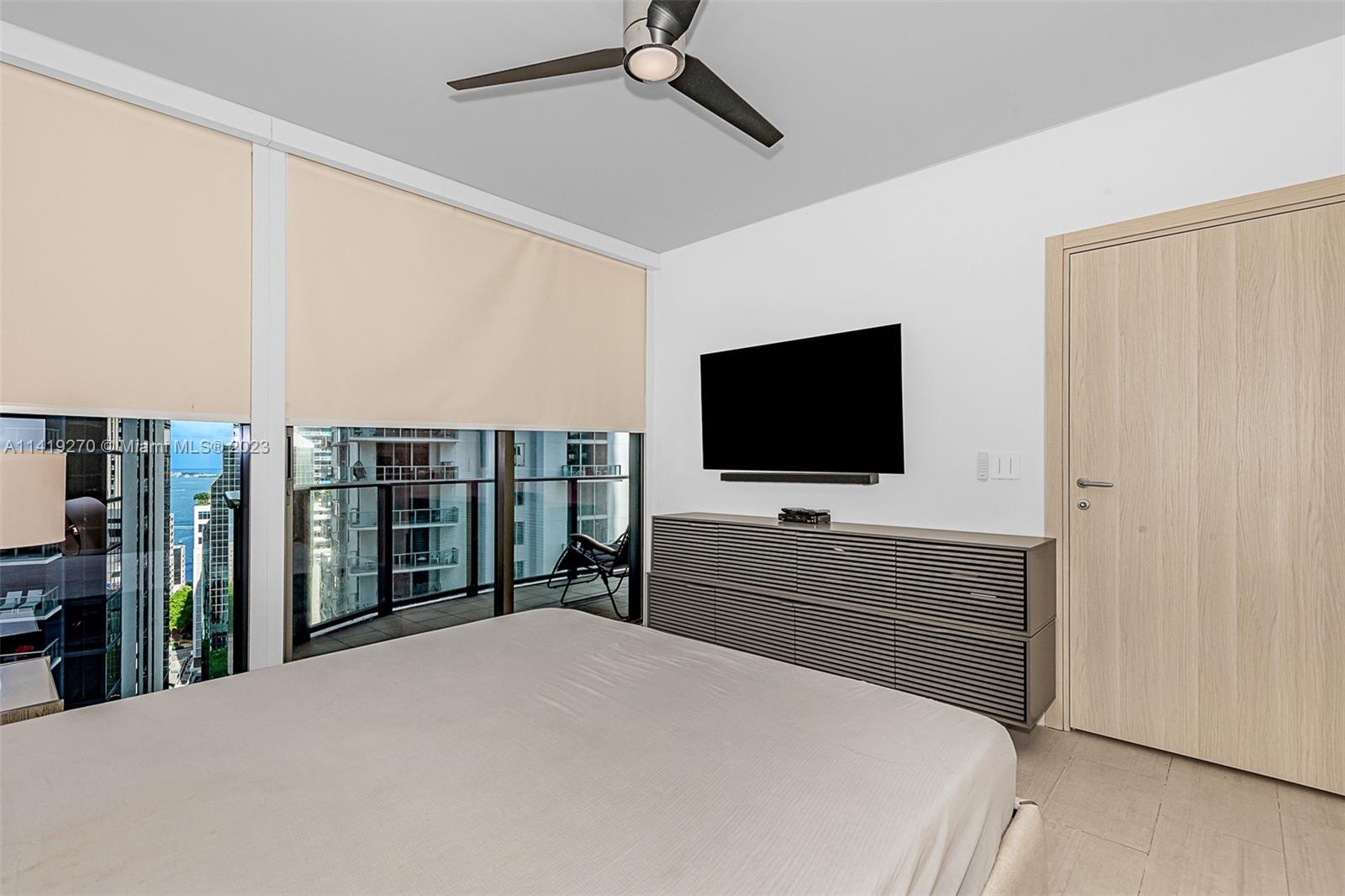 Only one-bedroom, one-bathroom residence that offers east-facing water views. Fully Finished and furnished with high end Italian Furniture Extras: Living room: Motorized sunshade. Lutron Dimmers. 85” Sony Smart TV with Advanced Sound Custom Hand-blown Glass & Bronze Chandelier. Custom Architectural ceiling Lightbox and Custom Bookshelf. Kitchen: floor to ceiling custom Glass and Bronze Feature Wall. Master Bedroom: Giorgio Armani Wallpaper. Custom King Upholstered Bed w/leather trim Wood & Glass nightstands with Crystal Lamps. Italian closets. 60” Samsung Smart TV w/ woofer system. Designer Chrome ceiling fan motorized black-out shades. This Building offers. 5-star service and unmatched convenience and luxury. unbranded Matterport tour attached. Easy to show.