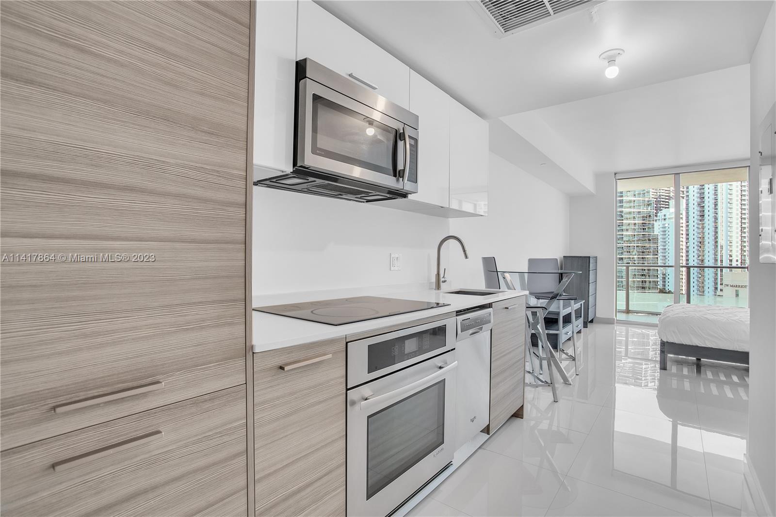 Beautiful studio at Brickell House on the 28th floor with amazing skyline views: 24x24 white ceramic tile flooring throughout, spacious balcony, W/D, top-of-the-line kitchen with SS appliances. Brickell House top-of-the-line amenities include 12th-floor pool & lounge deck with whirlpool SPA & BBQ, Sauna & Steam Room, fitness center, club room, kids playroom, theater room, 24hr full-service concierge, valet & security, rooftop pool & sundeck with magnificent views of Biscayne Bay & Key Biscayne Low HOA includes basic cable TV, high-speed internet. Incredible location by the Bay of Biscayne and yet feet away from shops, markets, Mary Brickell Village, Brickell City Center, Metrorail & Metromover.