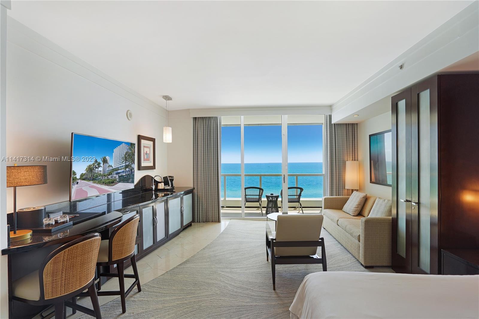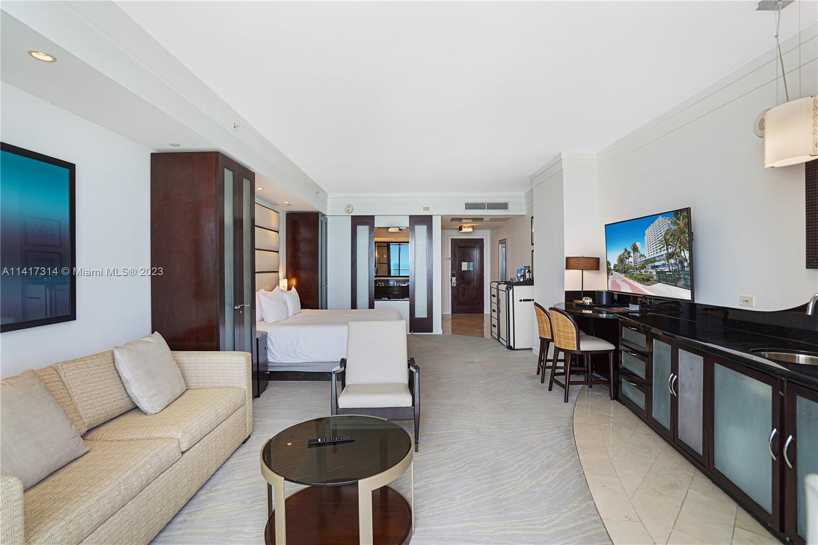 Indulge in a fabulous oceanfront Junior Suite at the Fontainebleau III /Sorrento featuring sweeping vistas up and down the coastline. Experience resort-style living with this fully furnished, turnkey condo featuring a King-size bed, oceanfront balcony, sleeper sofa, kitchenette and more. The Fontainebleau Resort is known for its luxury amenities spread across 22 oceanfront acres. Amenities include award-winning restaurants, LIV night club, Lapis spa, state-of-the-art fitness center and much more. Owner’s may enroll in the hotel rental program and generate income while away. The maintenance fees includes AC, electricity, WIFI, valet, discounts for owners + free breakfast daily in the owner’s lounge.