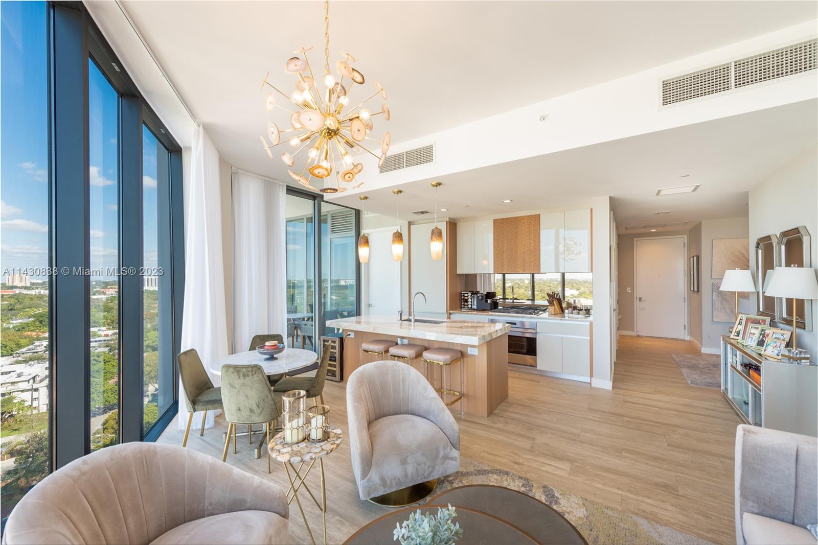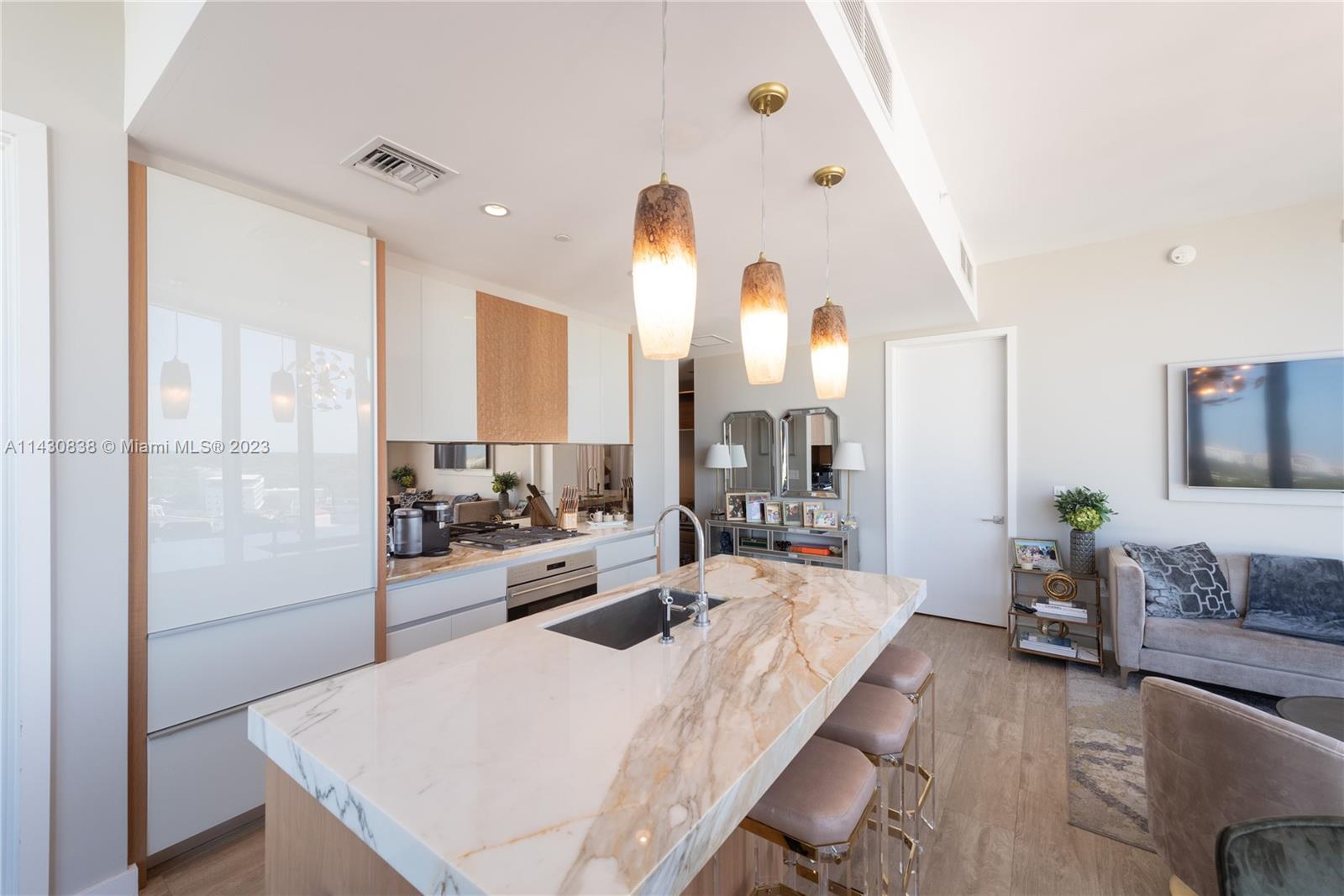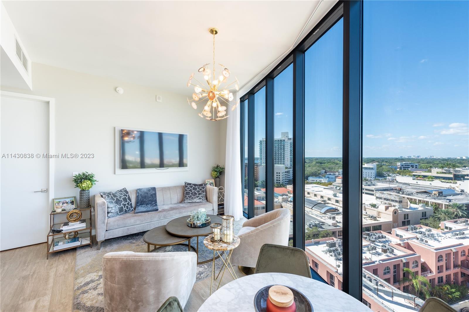 Be a part of this exclusive resort-style condo located in the heart of Coconut Grove. 2 bedrooms - 2 bathrooms, ocean and city views. Extremely private and elegant, this is a unique and ultra-luxurious residence. Furniture sold separately. From its amenities and club, Park Grove offers the ultimate in serene bayfront living. Kitchens and baths designed by William Sofield, Italian cabinetry with glass doors and stone countertops, Sub-Zero/Wolf appliances. Concierge services, Large dining room, Library/lounge, social spaces, Top-of-the-line gym, Weights, Private rooms including yoga, pilates, and spinning, Spa with personal treatment rooms, steam, and sauna. changing rooms Space for outdoor events of the amphitheater and more!