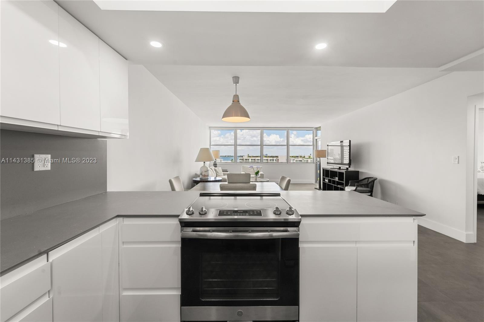Wonderful views of Bay, South Beach & Park, and a peak of Miami skyline from beautifully renovated, spacious 897 SQ FT 1 BD / 1.5 BA. This Venetian Island gem features include: renovated open kitchen w/quartz counters & stainless appliances, grey porcelain flooring throughout, and new hurricane-impact windows & door. Enjoy spacious private balcony. This full-amenity building has: large heated Bayfront pool & spa, boat dock, gym, tennis, lovely BBQ area, concierge, & parking. Great location: across from Standard Hotel & short walk to Lincoln Rd & Sunset Harbour restaurants & shops. Close to Publix, Fresh Market, & Trader Joe's. 6 minute drive to Downtown.