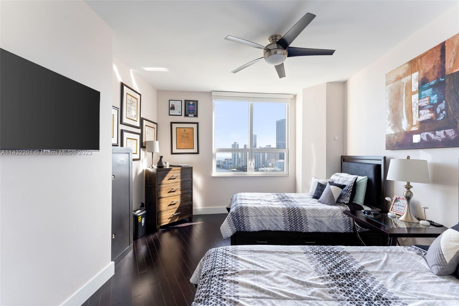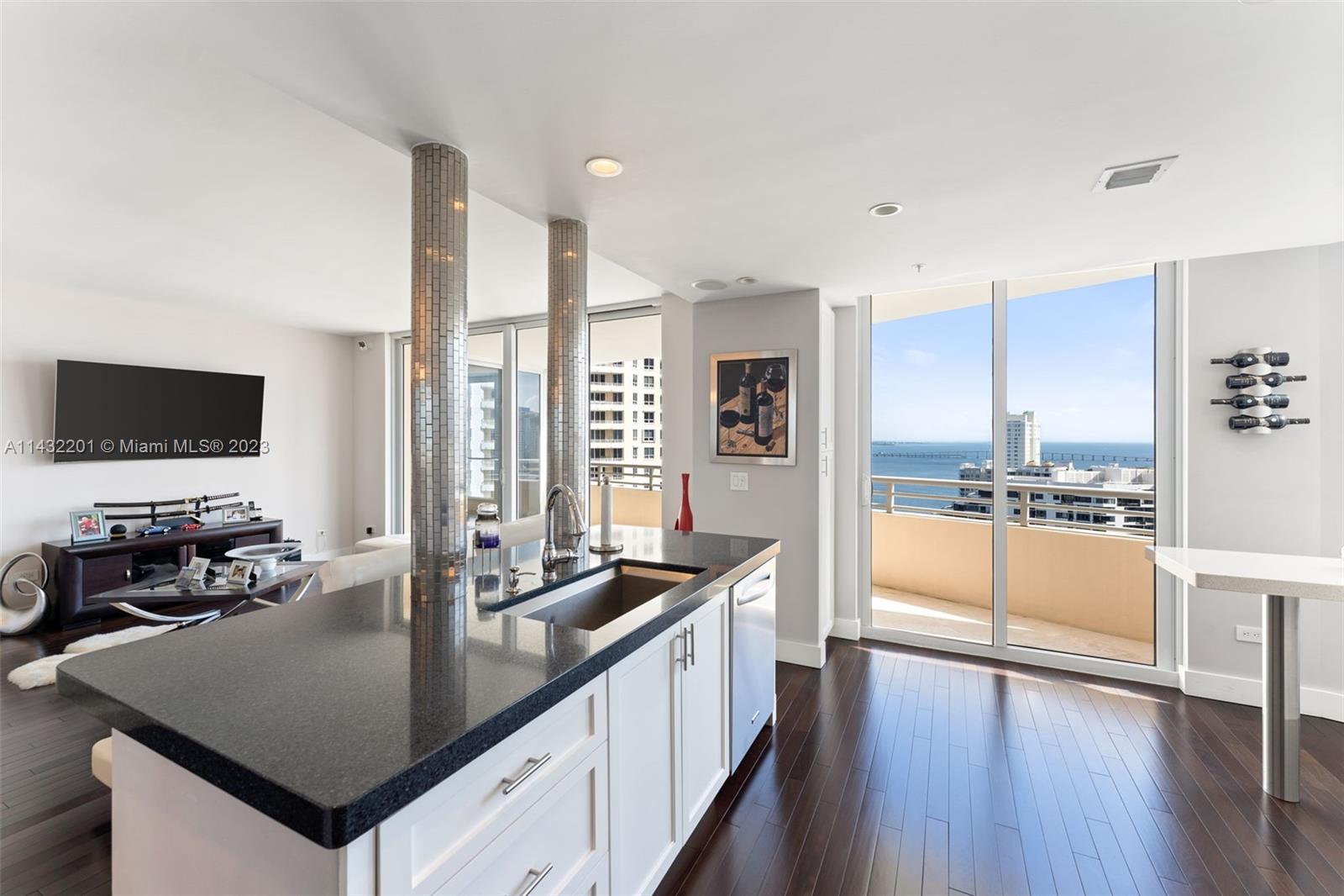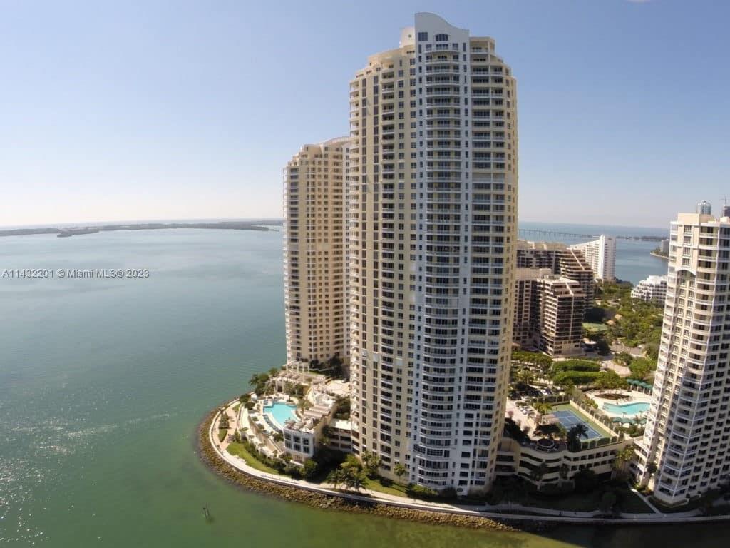 Upscale Condo with amazing Bay and City views from the 27th floor from the generous private balcony. Only 3 units in the same floor, This exquisite unit features 2 Bed, 2 1/2 baths, Modern kitchen, Powder room. Elegant lobby, concierge, business center, and free valet parking for guests. Relax and swim laps in resort like pool. BBQ grills, and state of the art gym with inside basketball, racquetball, tennis courts. Bike storage. Brickell Key is home to Mandarin Oriental and the unit is easy walk to Brickell City center and many restaurants.
