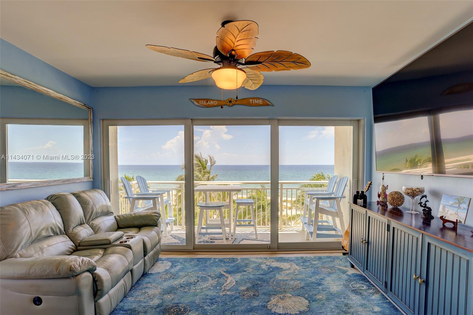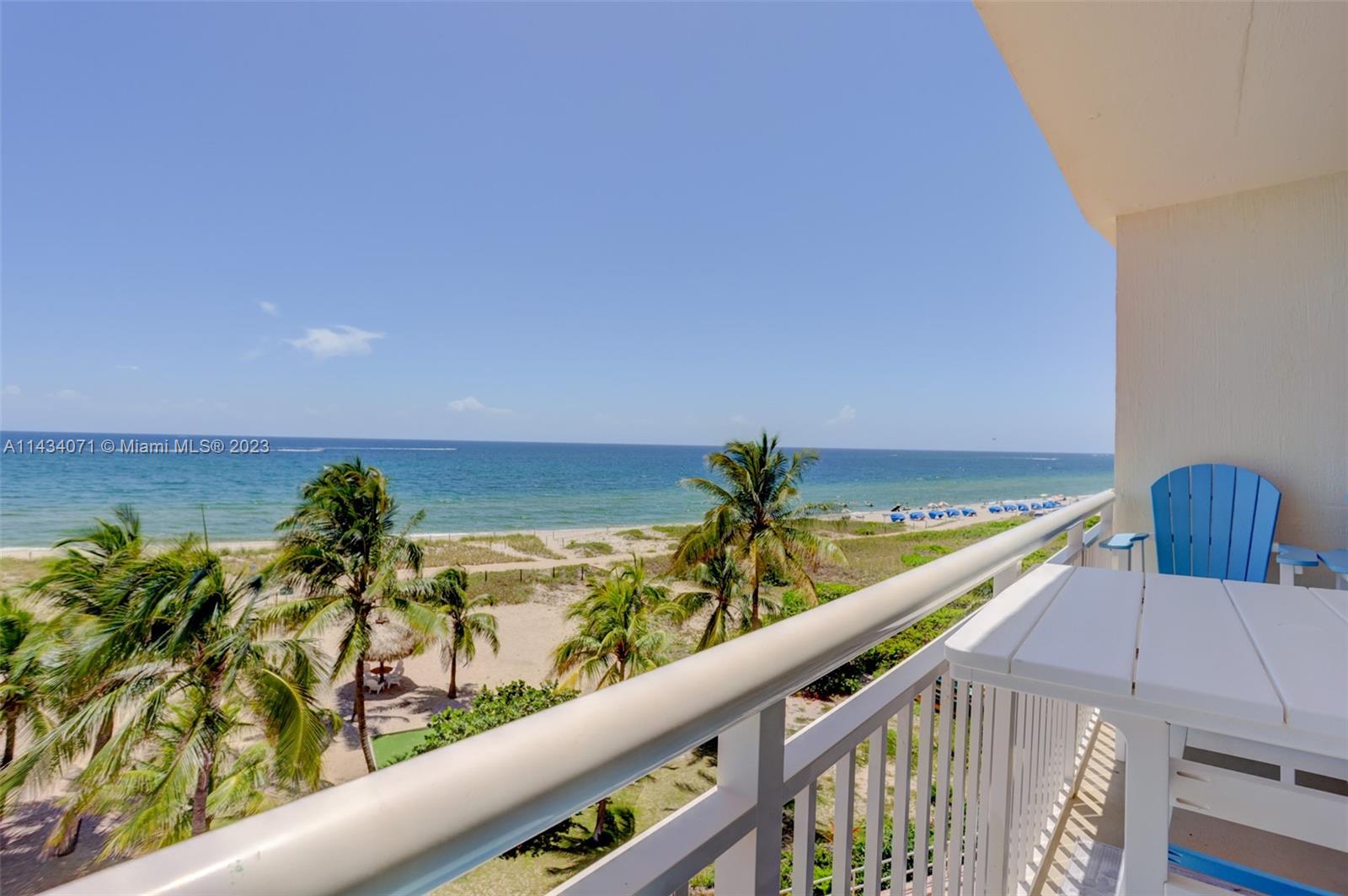 Resort-Style Living…DIRECTLY On The Beach! Fully remodeled 2 bed/2 bath open concept condo with unobstructed ocean views from almost every room. Newer appliances, large TVs, new A/C unit. Fully furnished, deluxe patio furniture and upscale, beachy vibe. Well designed gourmet kitchen features newer stainless steel appliances and tons of storage, and separate dining area. Primary bedroom is large with ocean views. Second bedroom is private and quiet. Well appointed on-suite bathrooms in both bedrooms. Giant balcony overlooks pool and private beach w/ tiki umbrellas, BBQ's, fire pit, hammock garden and ocean. Short walk to Pompano Beach Pier, shops, restaurants & bars, or take free shuttle! Dues Include Water, Trash, Cable TV w/Premium Channels, Internet, Building Insurance.
