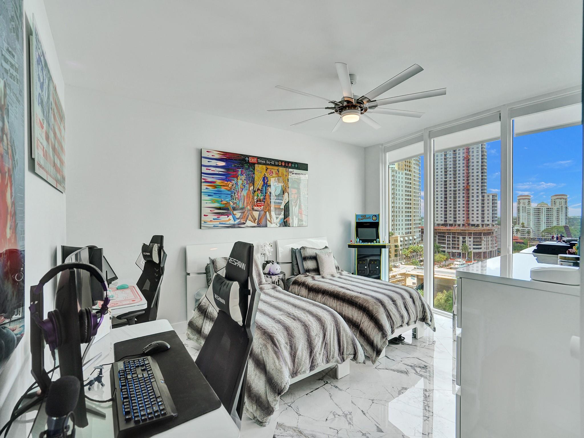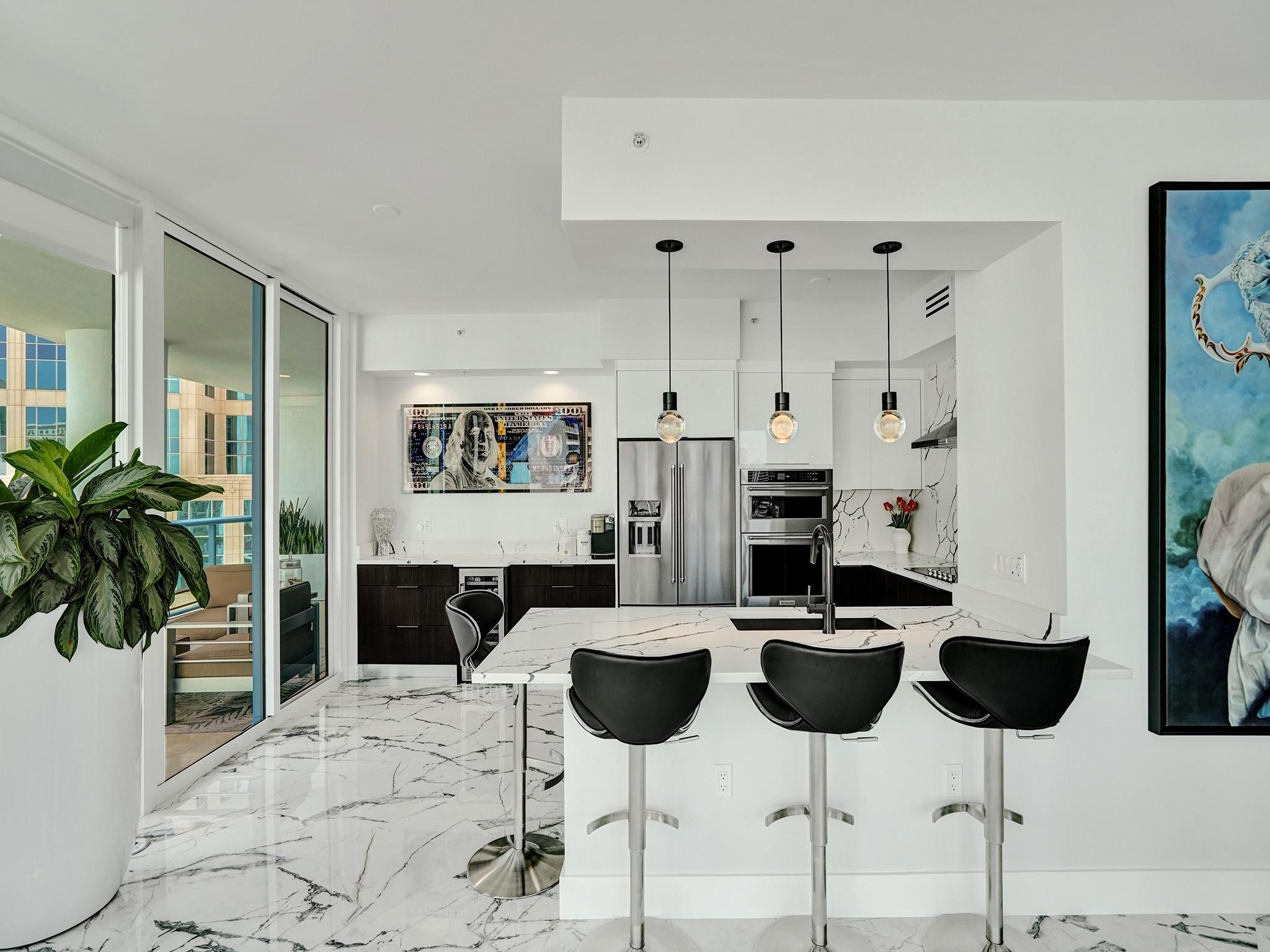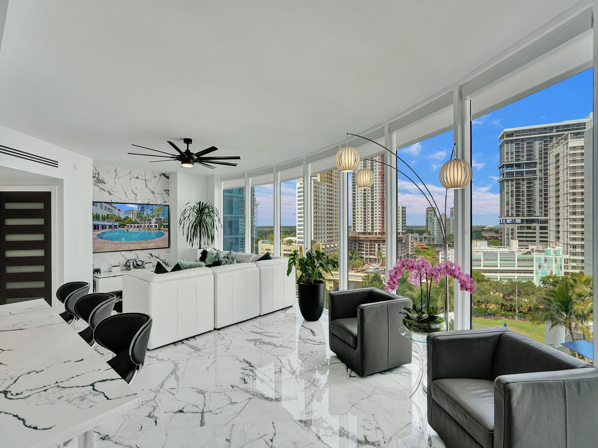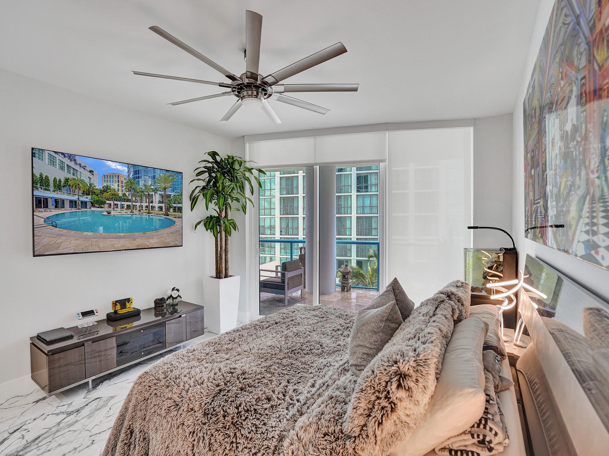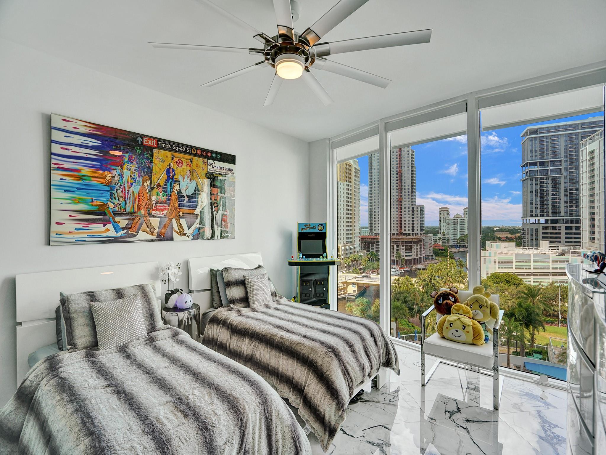 Highly sought-after Chelsea floor plan in the Las Olas River House, with extraordinary features. This luxurious residence boasts a 241 sq ft balcony, granite countertops with backsplash, exquisite porcelain tile throughout, LED lighting in every room, & meticulous attention to detail. The master bath offers a modern oasis, while the 2nd bedroom functions as a 2nd suite with added windows. Enjoy custom doors, cabinets, and lighting, along with 1-year old appliances & 3 year-old AC. Amenities include built-in wine cooler with dual-zone temperature, electronic toilets in each bathroom, Badeloft sinks, 9ft ceilings, & floor-to-ceiling windows showcasing RIVER & POOL views. Experience around-the-clock security, concierge services, & access to a world-class gym, steam rooms, & serene spa areas.