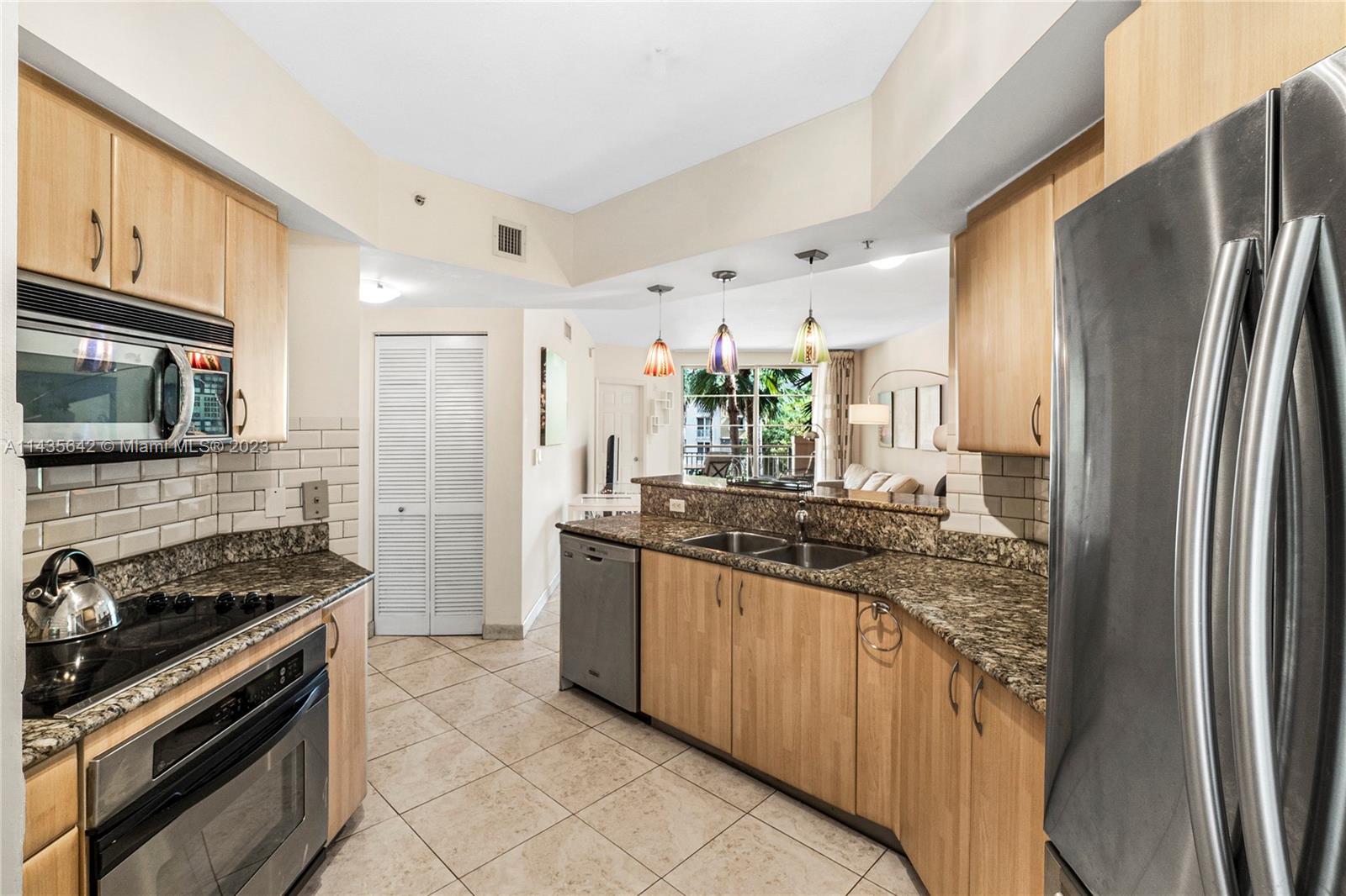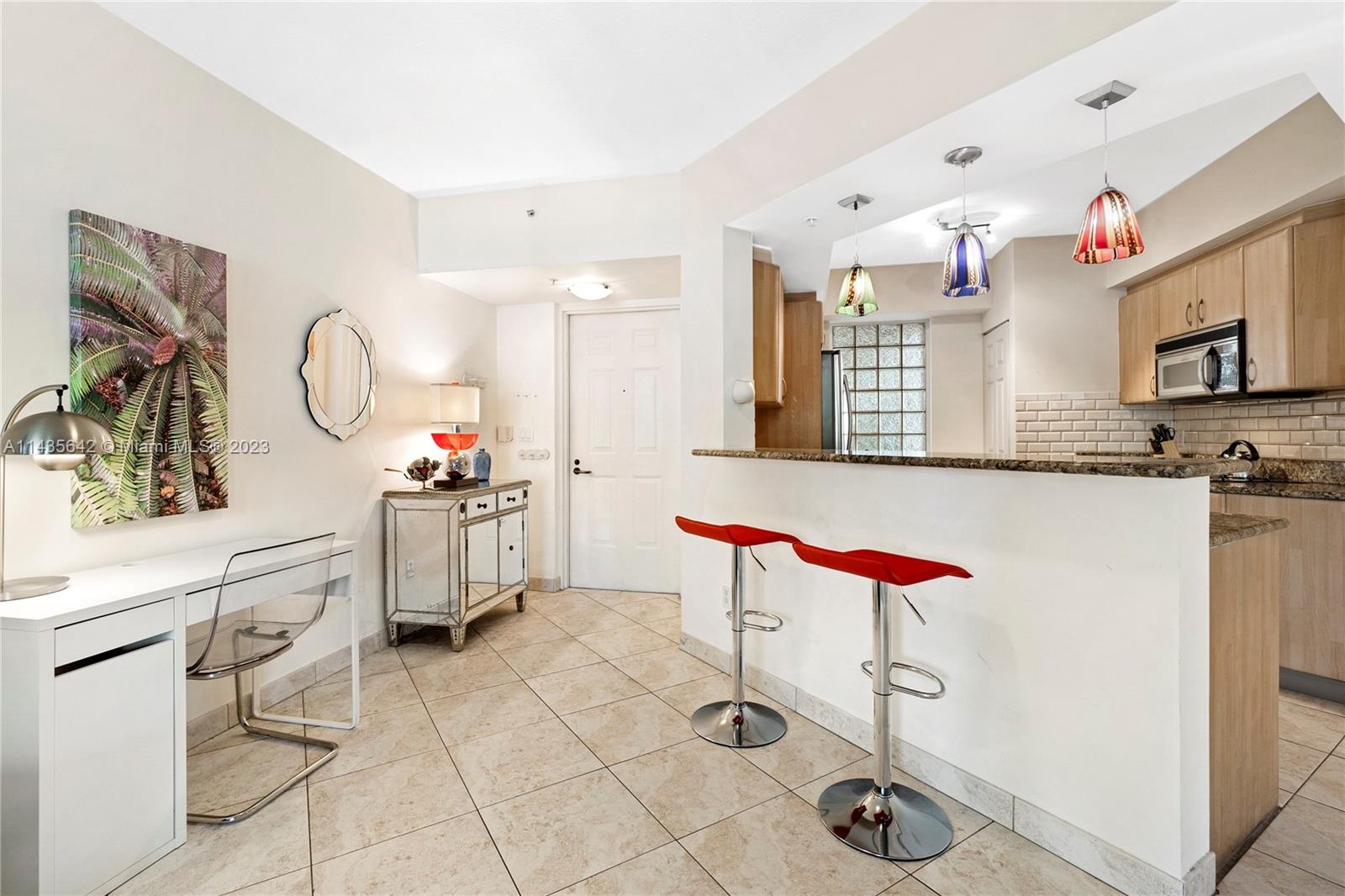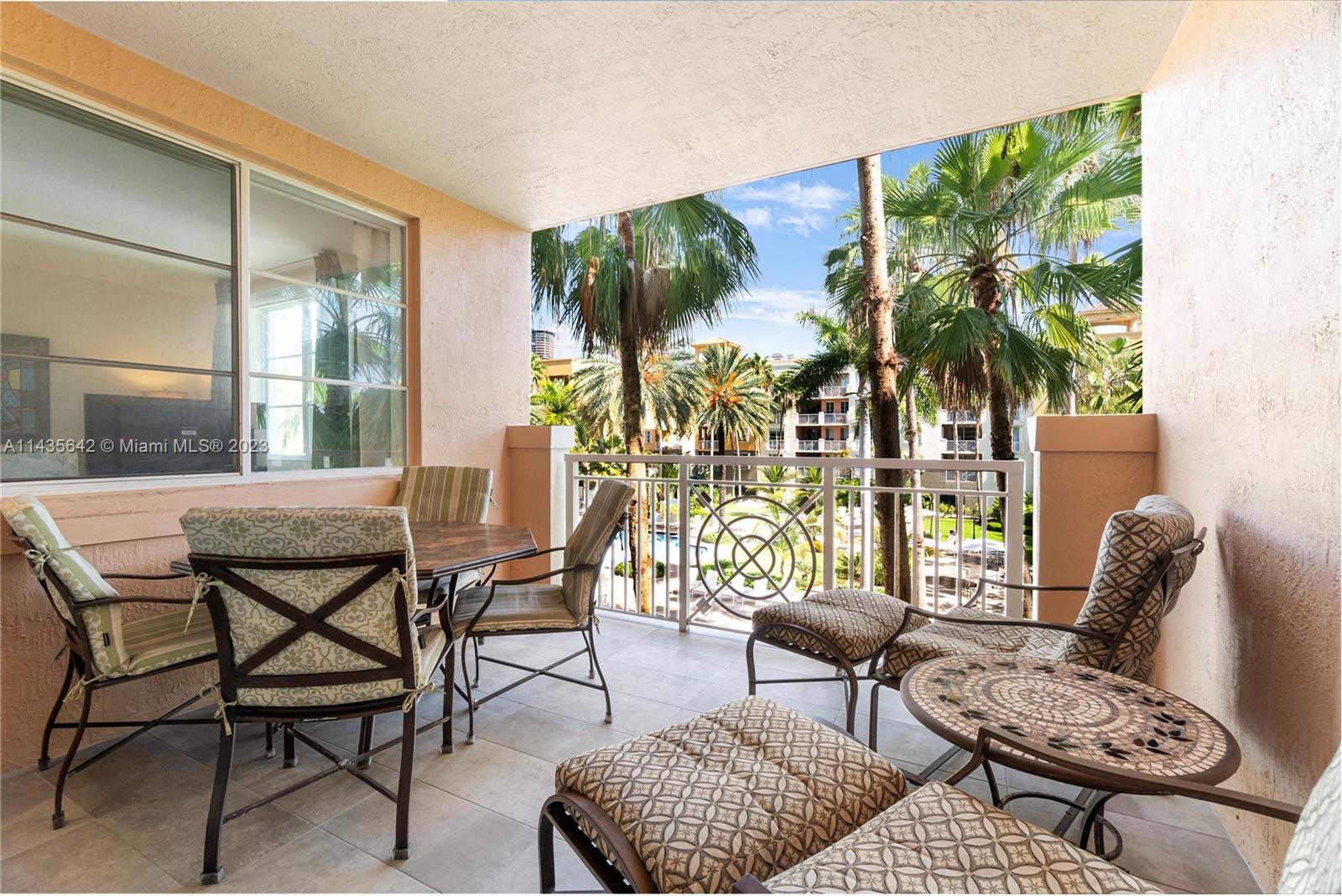 An incredibly charming, beautifully maintained 2-bedroom, 2-bathroom apartment on the second floor at the Courts. This unit is bathed in natural light, offering an open-plan kitchen with granite countertops that seamlessly connects to the living area. The primary bedroom boasts a Large En-Suite Bathroom with marble floors and Walk-in Closet. Sit on your Balcony and enjoy views over the Beautiful Mediterranean Style Pool and courtyard. 1 Covered Parking Space included, Plus Amenities such as 2nd pool, Gym, Spa/Hot Tub, Sauna, Billiard/Community Room, BBQ Area, & Dog Park. 24/7 Security.This Highly Desired Neighborhood of South Of Fifth has, World Renowned Restaurants, Bars, and shops. The Beach, the Marina, South Pointe Park.