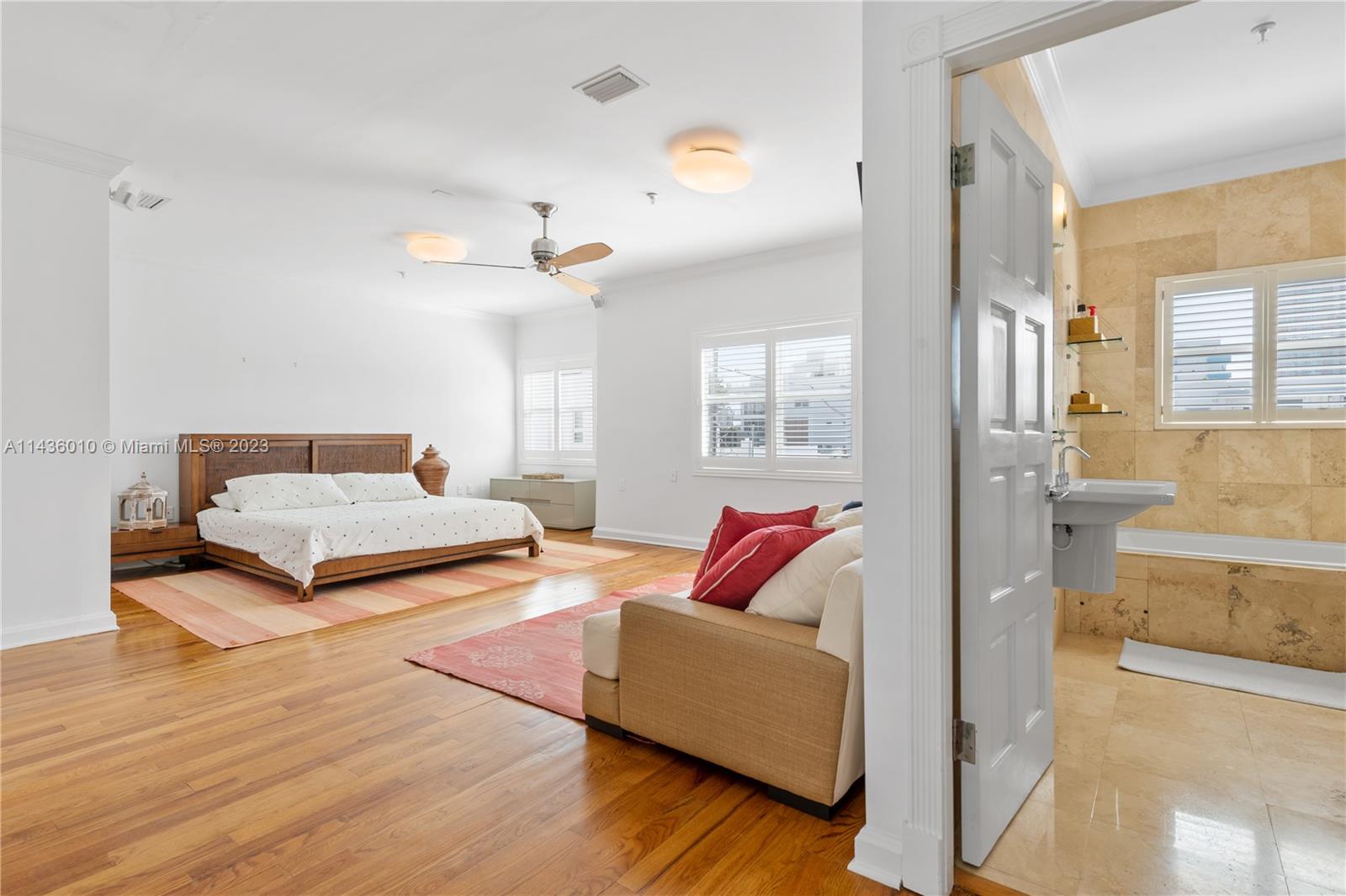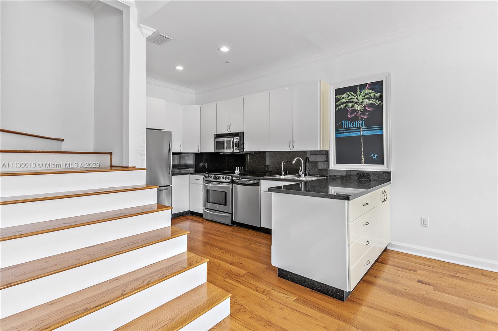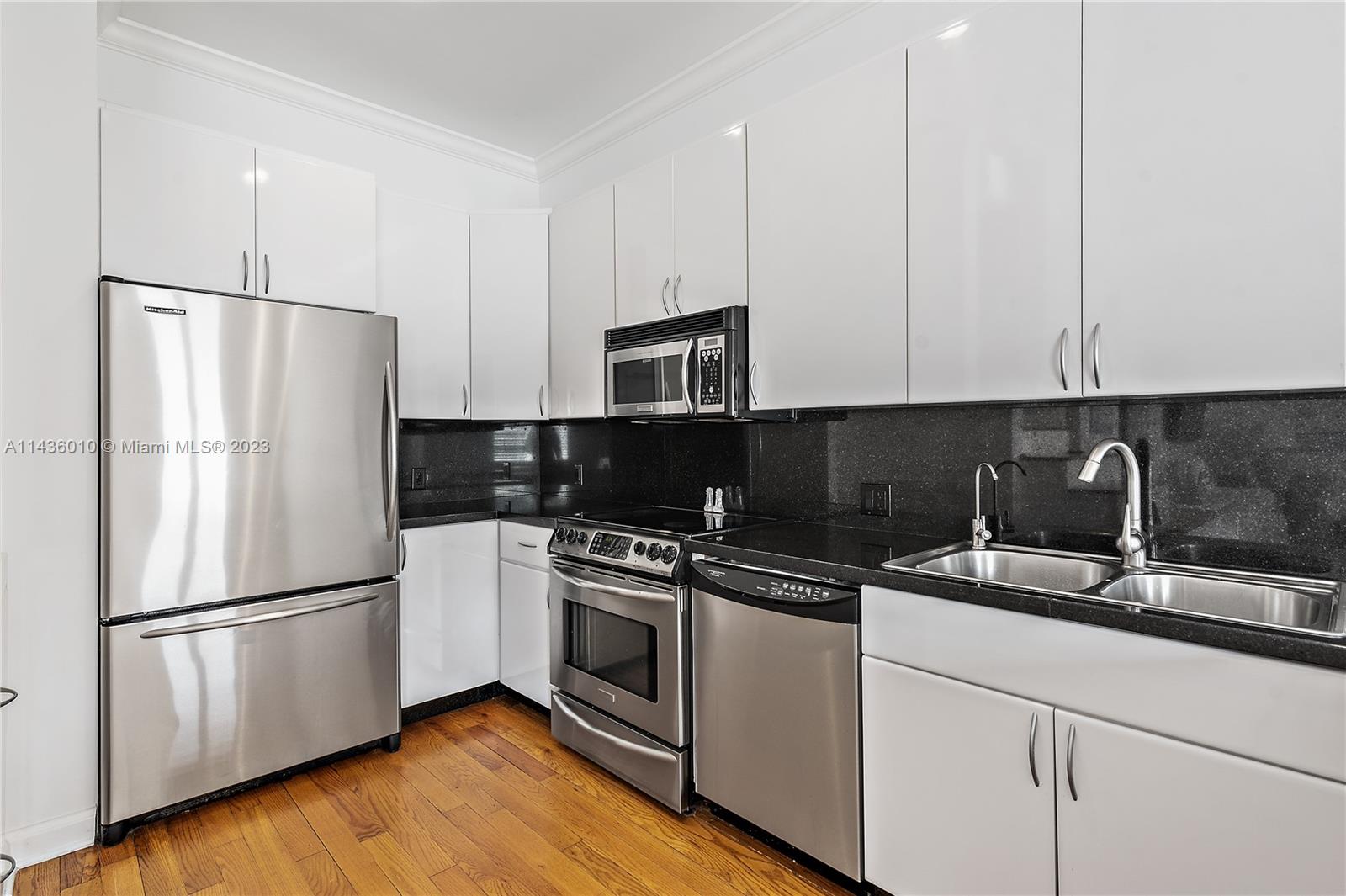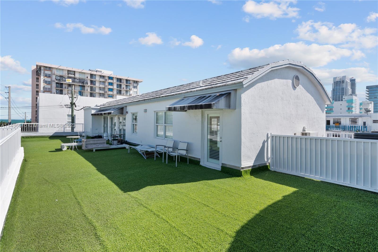 This 3 bedroom, 3 bathroom two story townhome is located in the heart South Beach (South of Fifth), in the 14 unit boutique building of The Presidents Club. Just two blocks to the beach this spacious home features real hard wood and marble flooring, volume ceilings, and an open kitchen/living room area. Two bedrooms downstairs both with access to their own private bathrooms. Upstairs you will find a huge primary bedroom with a large walk in closet and a spacious 500 SF rooftop patio providing the best city and ocean views. Impact windows and doors throughout. Brand new AC. One garage space included. Washer/dryer in the unit. Just a short walk to the white sandy beach, restaurants and the best shops that South Beach has to offer.