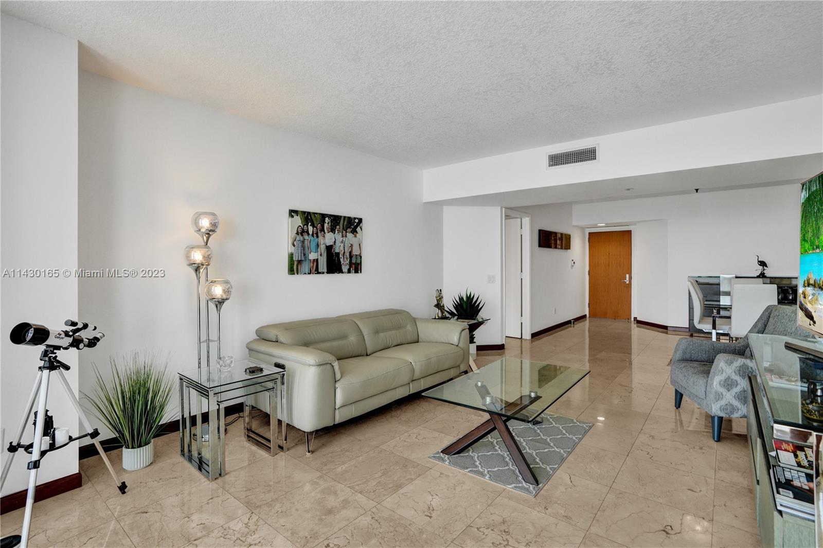 Direct intracoastal and ocean views from all the rooms. Bright and spacious, two split bedrooms and a den. Marble floors throughout. Used only as a second home. Two assigned parking spaces & storage. Resort lifestyle: 3 pools, 4 tennis courts, spa, fitness center, beauty salon, and clubhouse. Outdoor café, BBQ area & kids' playground. Walking distance to restaurants and shops. Special assessments paid in full.