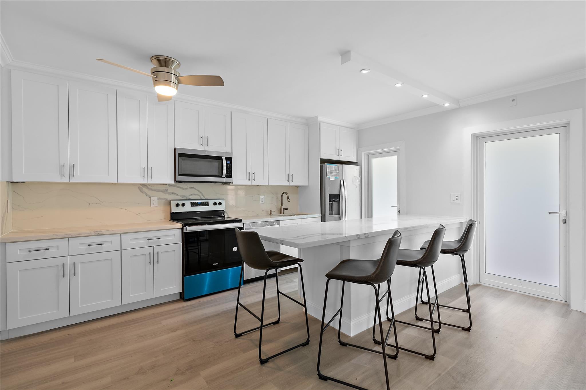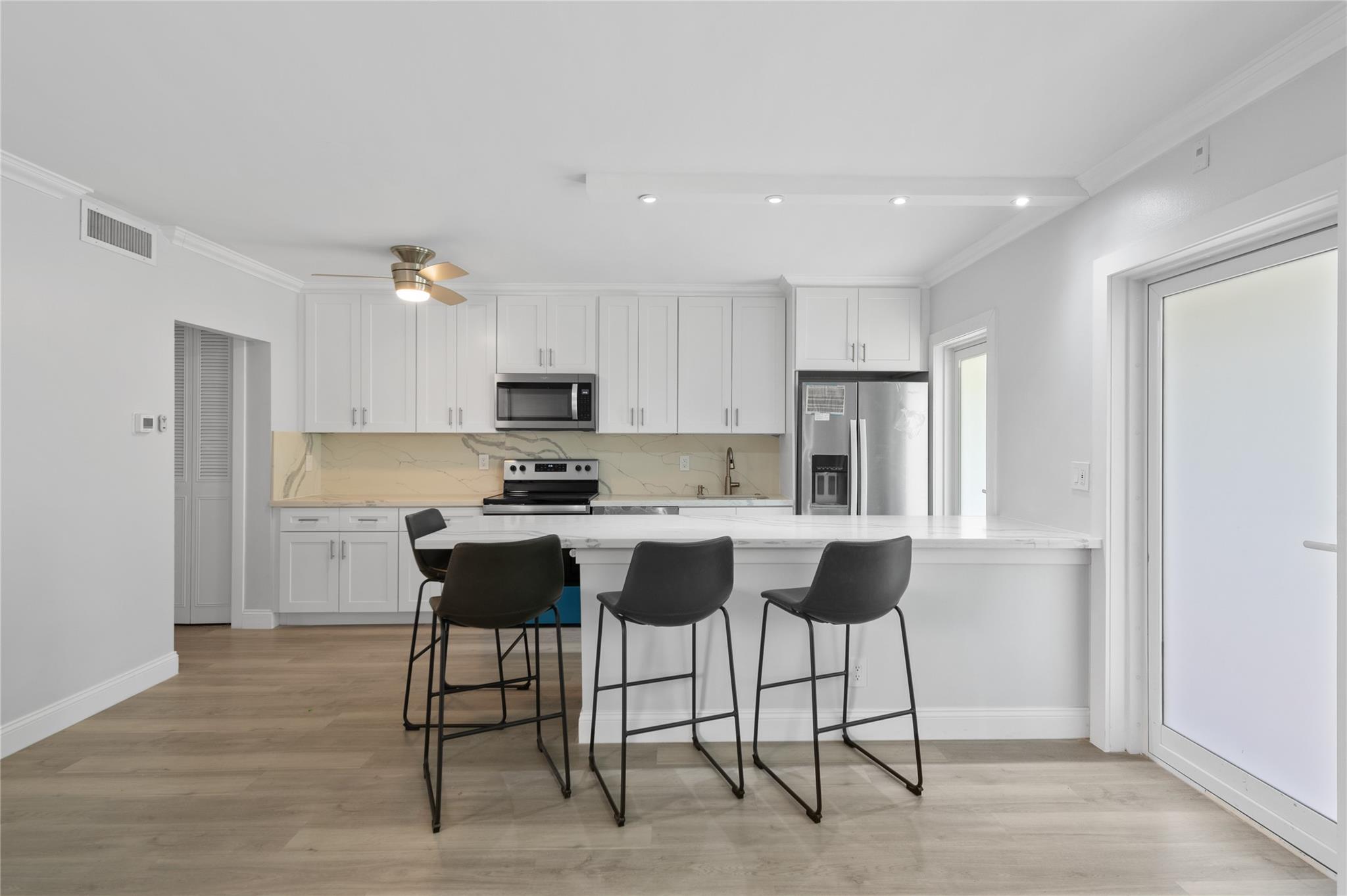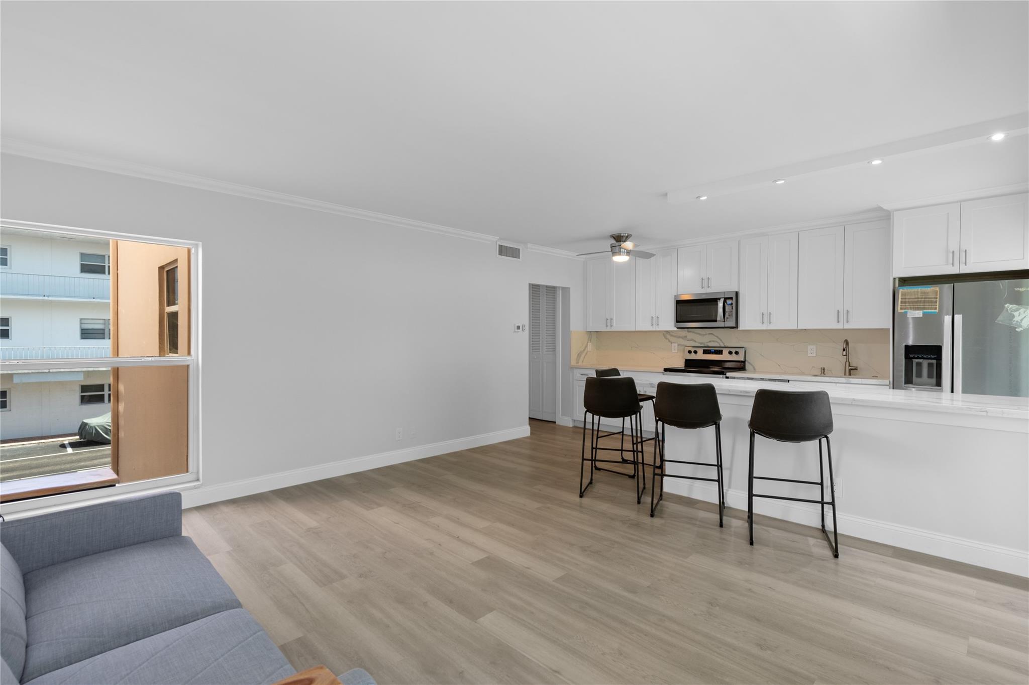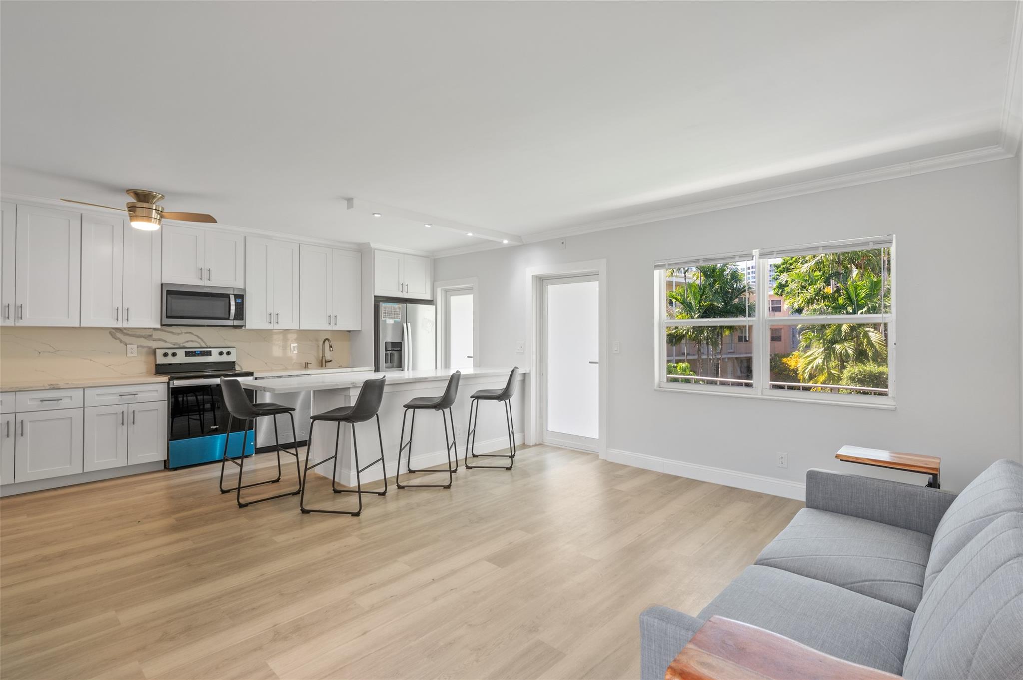 Location, Location, Location! All ages, Lower Association fees, Lauderdale-by-the Sea 1/1 gorgeously renovated & partially furnished condo. This stunning condo is located between the intercoastal & across the street from a gated private entrance to the beach. Some Unit Features include higher ceilings, renovated kitchen w/SS appliances & quartz counter tops, beautiful bathroom remodel, updated floors throughout, impact windows & impact doors with frosted glass leaving property bright while maintaining privacy. Community Amenities include garden views, gated community pool, grill area, shuffle board, private putting area, laundry rooms, dock, & more. Per association, owners who live in condo can be placed on wait list to rent 32' dock space w/ Ocean Access & no Fixed Bridges. View & Buy!