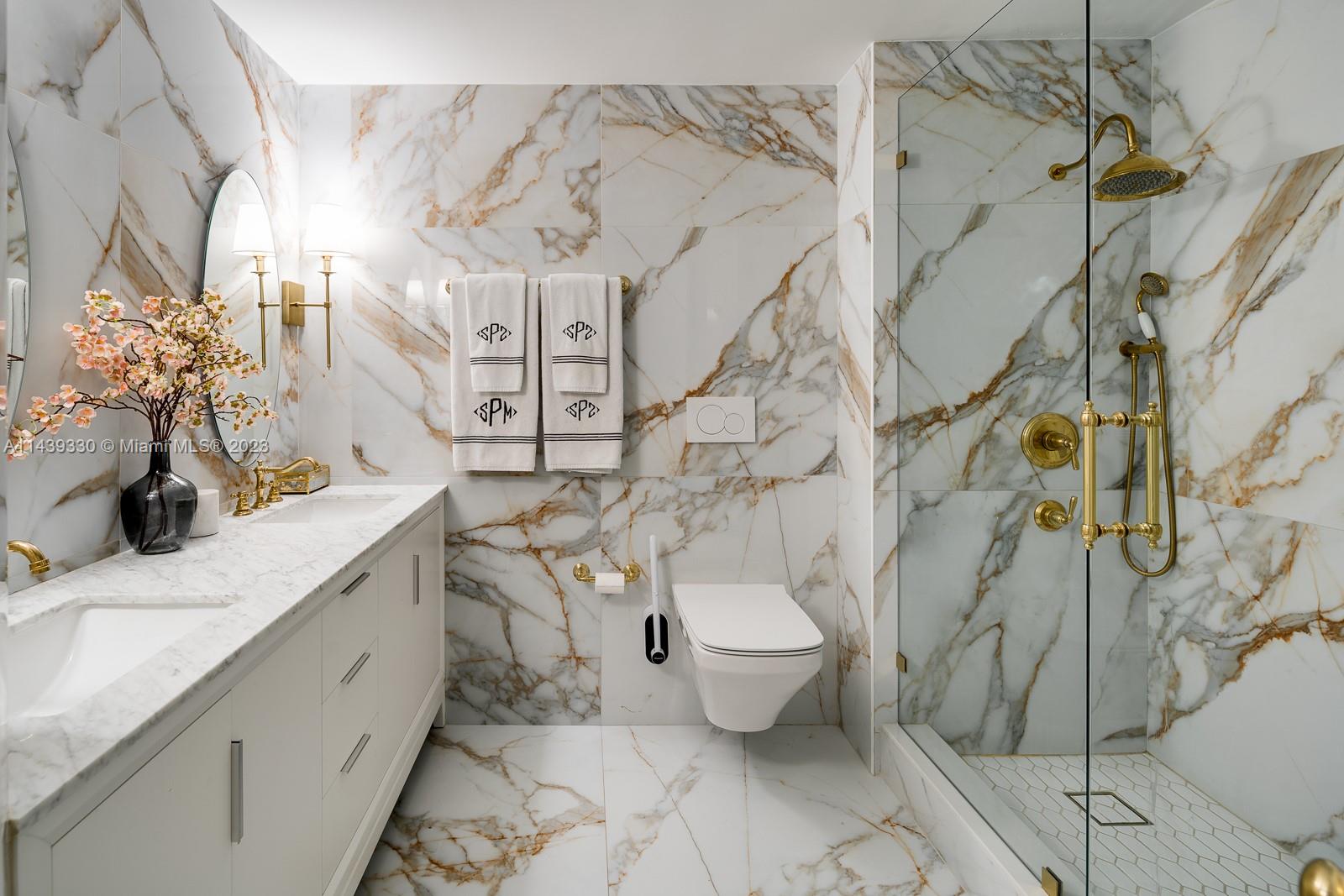 DIRECT WATERFRONT! Exceptionally spacious, true 3-bedroom 3 bath residence in exclusive One Tequesta Point with glorious views of Biscayne Bay, the Miami River, parks & the City from 2 balconies. Recently updated kitchen & baths. 3 ensuite bedrooms. 4 assigned parking spaces! Full-service building, beautiful, newly renovated lobby, common areas completely renovated, guard-gated, valet, concierge, pool, spa, 2 BBQ stations, fitness center, business center, racquetball & squash court, access to Bay Walk and more. Brickell Key offers parks and a one-mile strolling path surrounding the island. Walk to restaurants & shops. This apartment feels more like a lovely home than a condo with its spaciousness, dazzling water views, split bedrooms, stylish updating & fine architectural detailing.