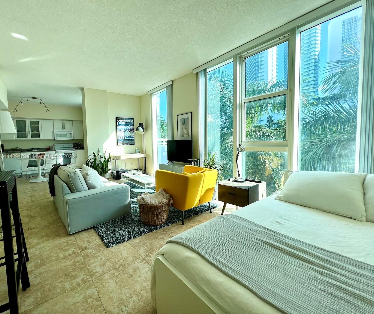 Very comfortable studio feels like 1 bedroom with new kitchen cabinets. Centrally located in South Edgewater close to downtown Miami, shops, restaurant, Arsht Center, Design District, and quick access to highway! The unit has lots of natural light, full kitchen, washer and dryer in the unit, 1 assigned parking space, tons of additional parking on the street. 1800 Biscayne is currently under massive amenities renovation to offer its residents true resort style living with new pool deck, gym, media room, and more – Expected completion Nov 2023! **Agents, see remarks.