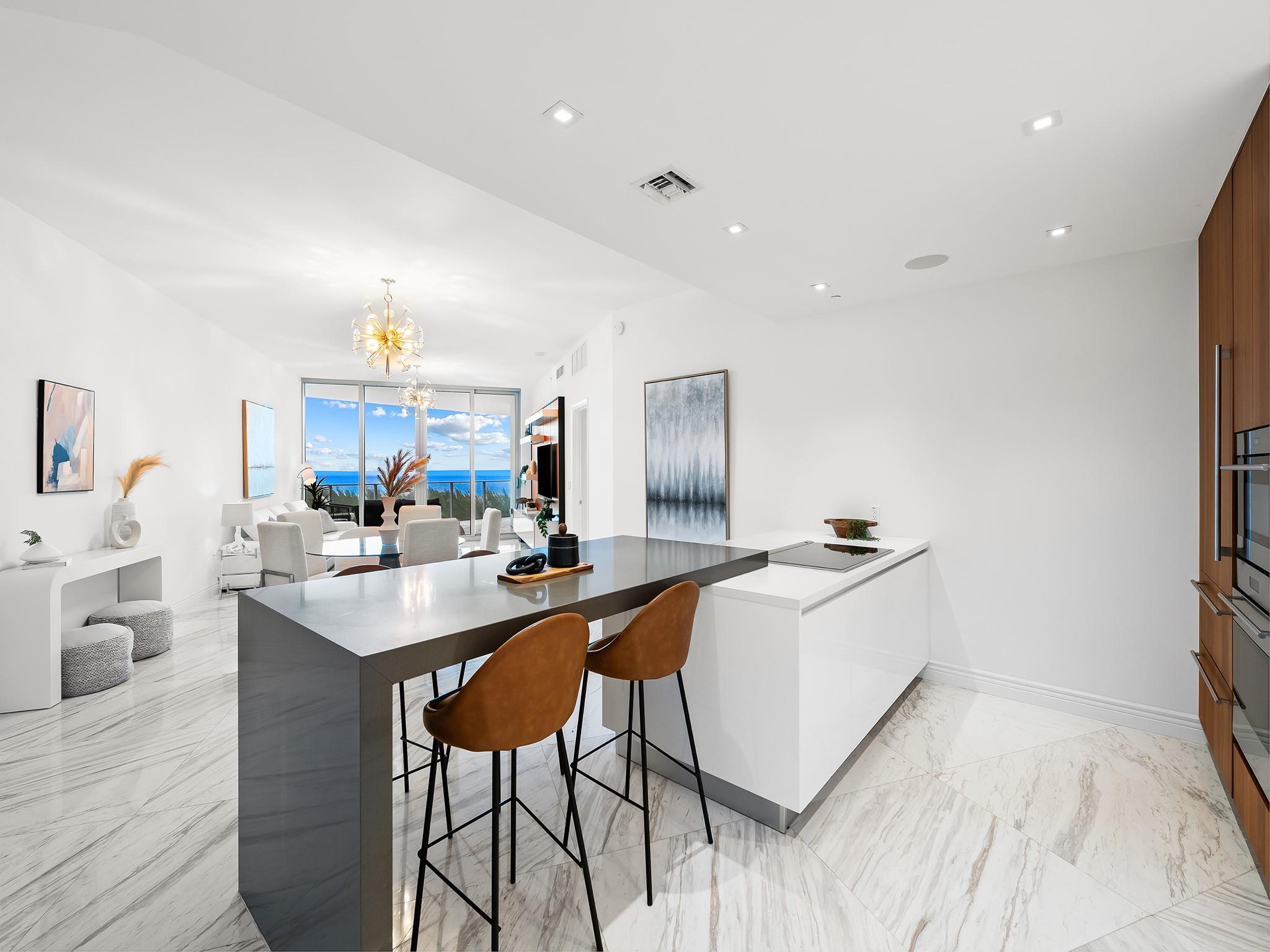 Rarely available two-bedroom condo in the most sought-after beach building, Paramount Residences. Enjoy a private elevator entry to your residence that features ocean and nature views from every room, beautiful porcelain floors, ITALCRAFT Kitchen, and Subzero appliances. The amenity floor consists of a coffee/newspaper lounge, steam room, massage room, men's and women's saunas and showers, yoga studio, fully equipped gym with Peloton area, barbecue area, oceanfront infinity Olympic-sized pool with hot tub & daily beach service. Opening in 2023 is the famous Truluck's, serving upscale seafood & steak, which residents can drink & dine just steps from their residences or have delivered to them. No short-term rentals are allowed.