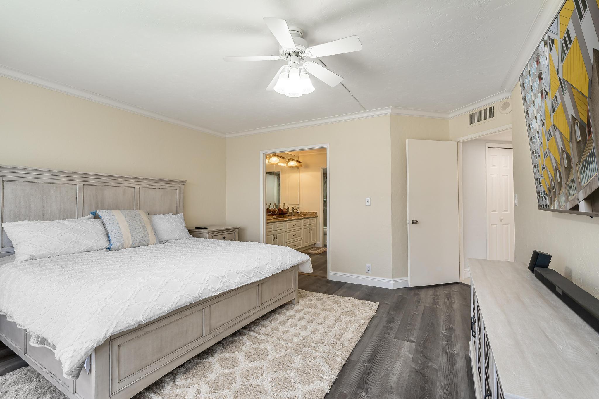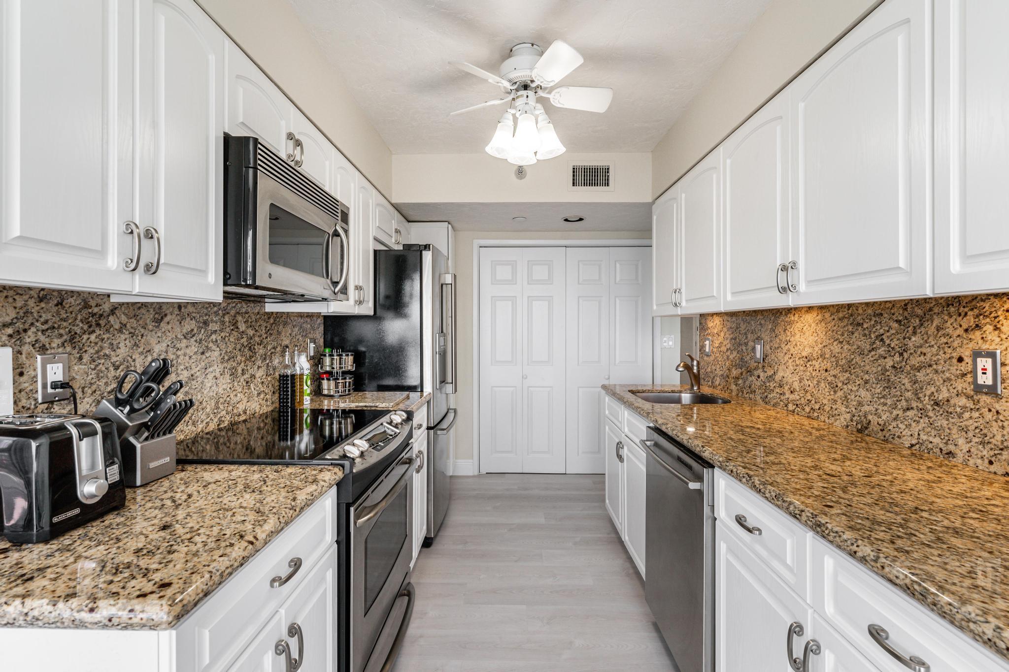 Water, water, water everywhere! Breathtaking vistas captivate from every single room. Step into a world of elegance in this exquisite condominium that has been meticulously updated to perfection. Custom-built shelves grace the expansive living and dining areas, adding an extra touch of sophistication. The kitchen is a modern masterpiece, boasting sleek wood cabinets and luxurious granite countertops. Gorgeous floors create an inviting ambiance, while the master bedroom is adorned with warm wood flooring. Storage space everywhere making organization a breeze. This condo is brimming with amenities. From a charming tot lot a mini-mart, a beauty salon, cleaners, and an electric car charging station. Reach out now to schedule your viewing, this won't stay on the market for long!