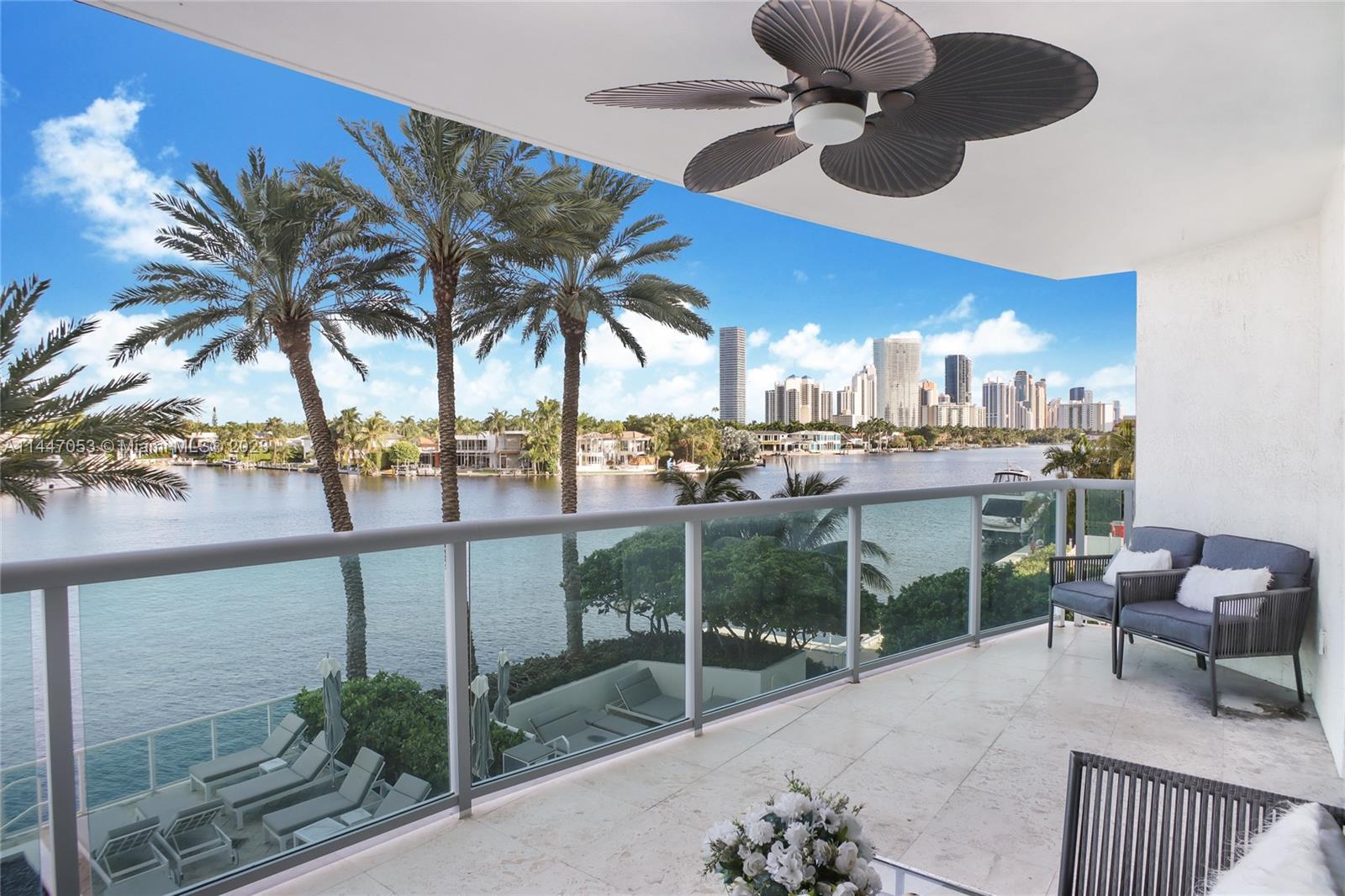Stunning apartment in the heart of Aventura with a magnificent Intracoastal view. This flow-through unit has a private foyer, 3 bedrooms + media Room + 3 bathrooms + 2 Terraces + 1 Parking space + 1 Storage. Marble floors in the living dining room, kitchen, Media Room, hallway & bathrooms. Pergo floors in the 3 bedrooms. Master bathroom with her & his. Huge walk-in closets, and spacious laundry room. The kitchen has top-of-the-line appliances. Infinity pool, BBQ area, tennis courts, Exclusive restaurant. etc. Walking distance to Aventura Mall and Houses of Worship. Only 5 minutes drive to the beach. Required purchase of consumable restaurant card per year $1265. Special Assessment of $552.92 monthly until February 2027. Photos were virtually staged.