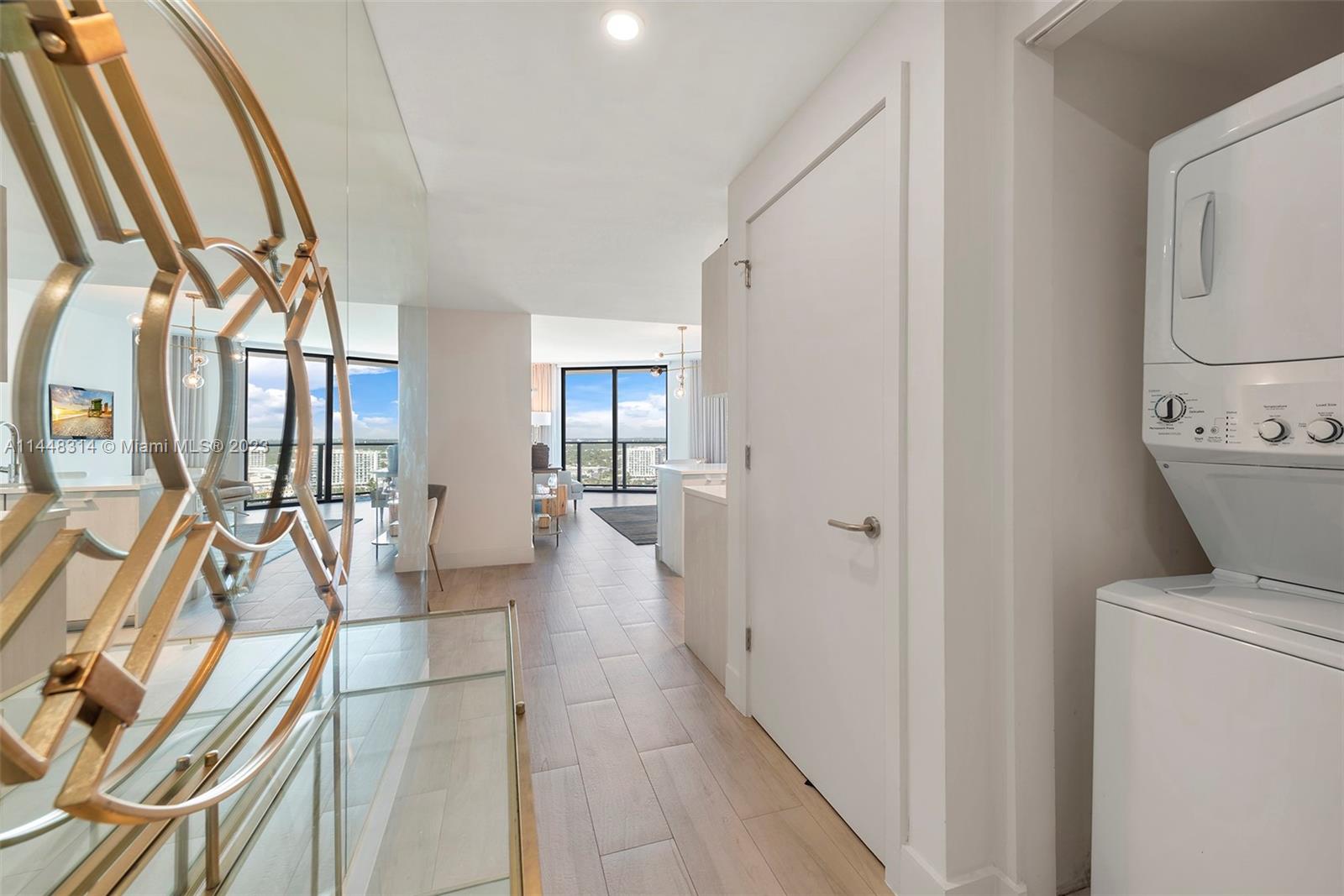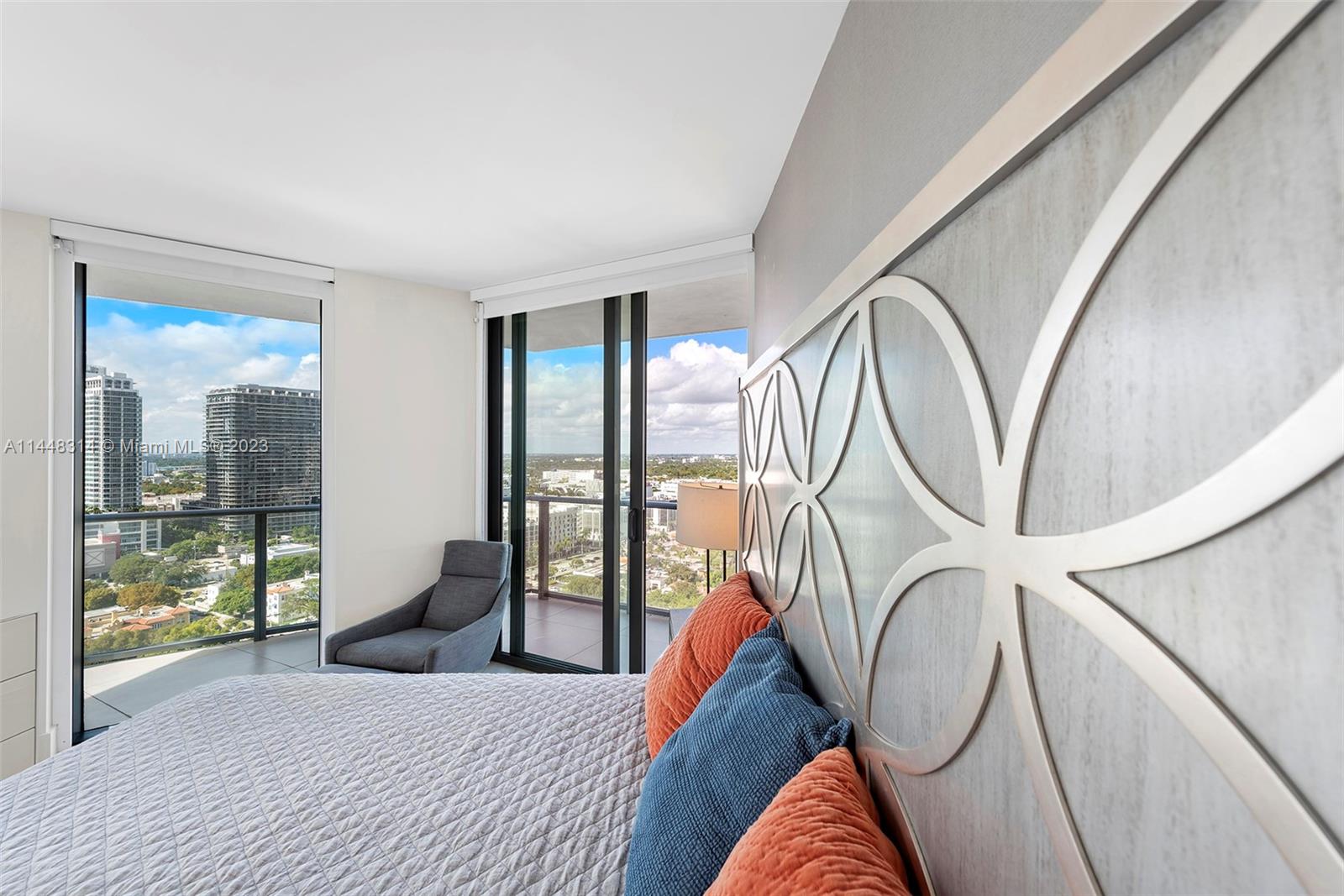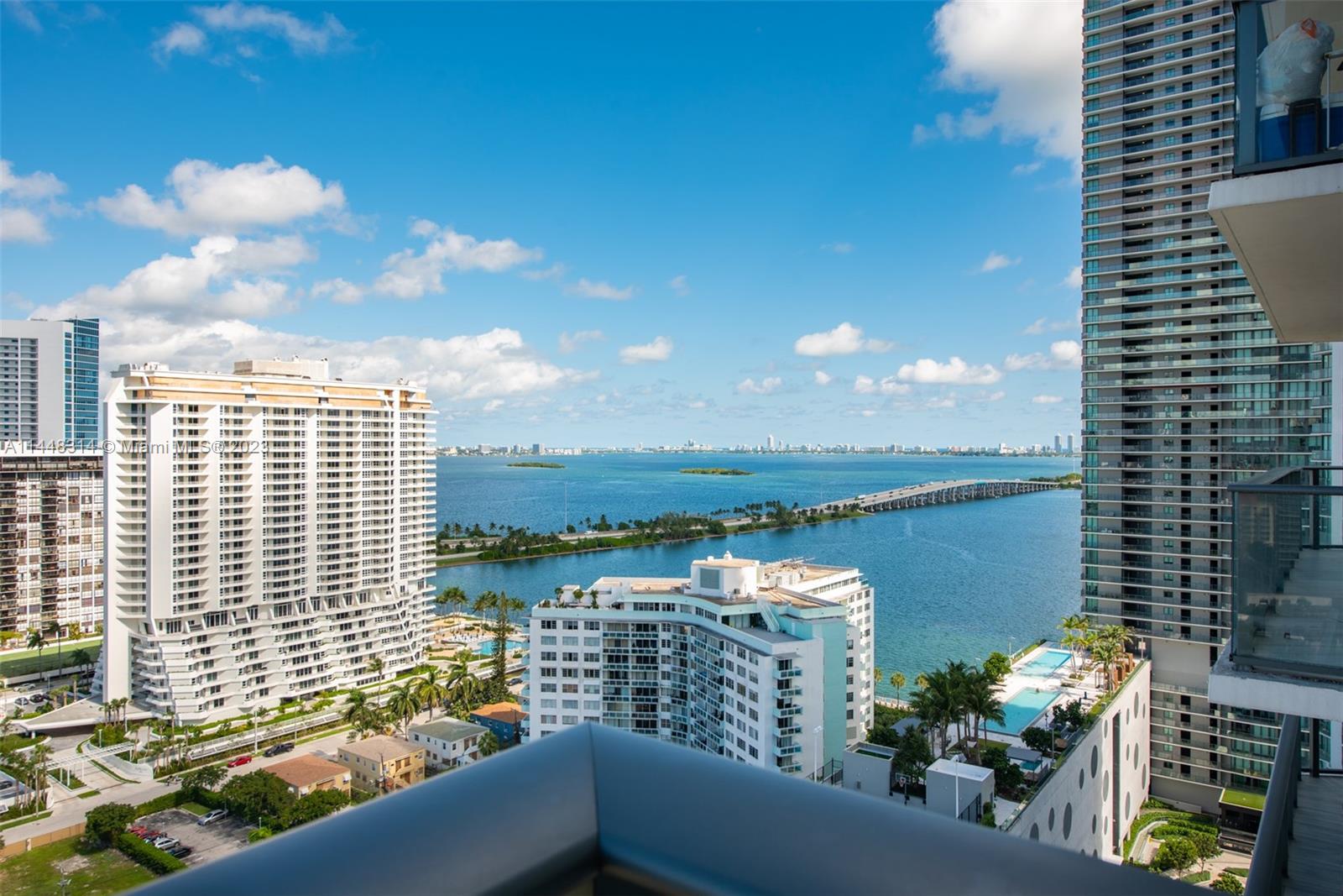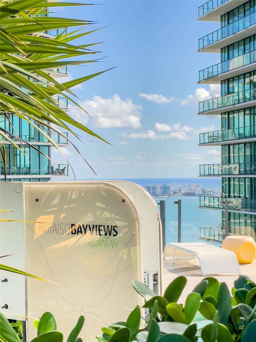 Tastefully designed & furnished 2 bed/2 bath unit on the 20th floor of Paraiso Bayviews in Edgewater with city & water view! Upgrades include built-in closets, wallpaper, porcelain tile floors, and electric blackouts in bedrooms. Enjoy luxurious amenities including 2 pools (5th floor & a rooftop pool), hot tub, spa, bbqs, tennis and paddle court, media room, kids room, game room and state-of-the-art gym. Walk to Paraiso's bayfront park with ladders down to the bay where you can go kayaking & paddle boarding, or savor delicious meal & drinks at the waterfront restaurant, Amara at Paraiso. Fantastic location only 5-10 minutes from Wynwood & the Design District and 15-20 Minutes to Miami Beach & the airport. One parking spot on the 3rd floor.