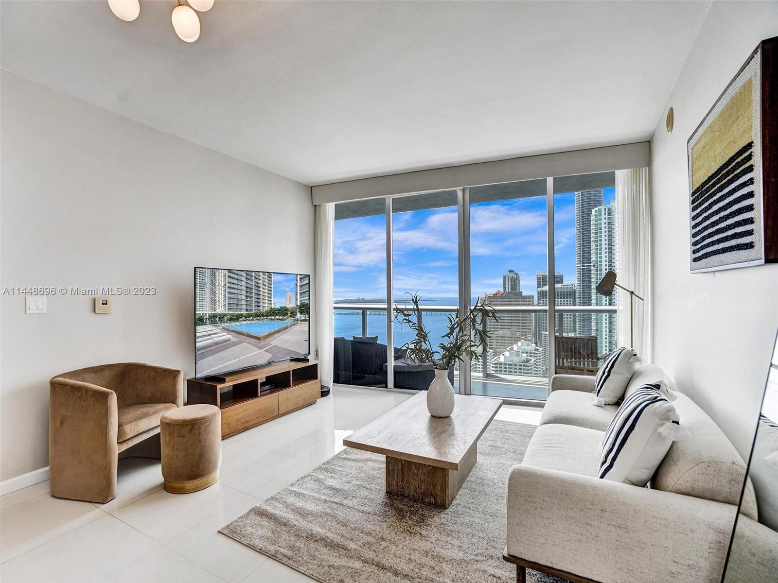 Excellent Opportunity – Owner says Sell!! Absolutely Spectacular views from this SE corner 2bd/2ba waterfront unit at Icon Brickell T2! Smartly furnished, Turn-Key and one of the most sought after lines in the building. Magnificent views of the Biscayne Bay, Ocean. Virginia Key and the Brickell financial district. Designed by renowned architect Philippe Starck. The Icon is famous for its world class amenities; breathtaking 300ft long infinity pool, huge hot tub, high-tech fitness center w/classes; one of a kind luxury Spa w/steam and sauna, theatre, game room, onsite store and restaurants, and much more! Fantastic location by Brickell City Center, Mary Brickell Village, Whole Foods, train station, restaurants, shopping, arts and entertainment. Assigned parking and pet friendly.