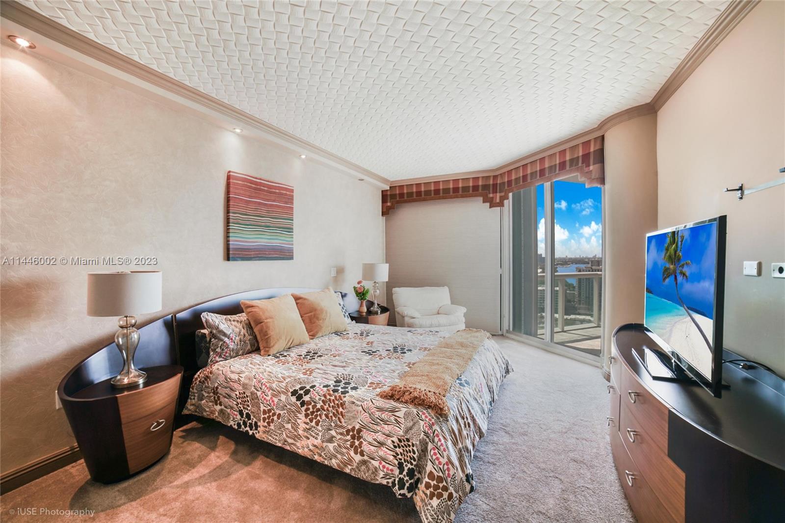 Don’t miss this opportunity to call this Oceania Island condo home. Higher ceilings and extended balcony make this one extra special. Great layout with 2 bedrooms plus a den and 2 bathrooms with a fabulous flow for everyday living and entertaining. From the moment you walk in, you notice the expansive views of Atlantic Ocean, intracoastal waterway, Oleta River State Park and the downtown Miami Skyline. This home features an architecturally unique ceiling treatment with beautiful wood moulding and strategically placed spot lighting along with timeless marble flooring. Resort-like amenities including private beach club, health club & spa, 2 oceanfront dining choices, yoga and fitness classes, tennis courts, marina and more! Vacant and easy to show