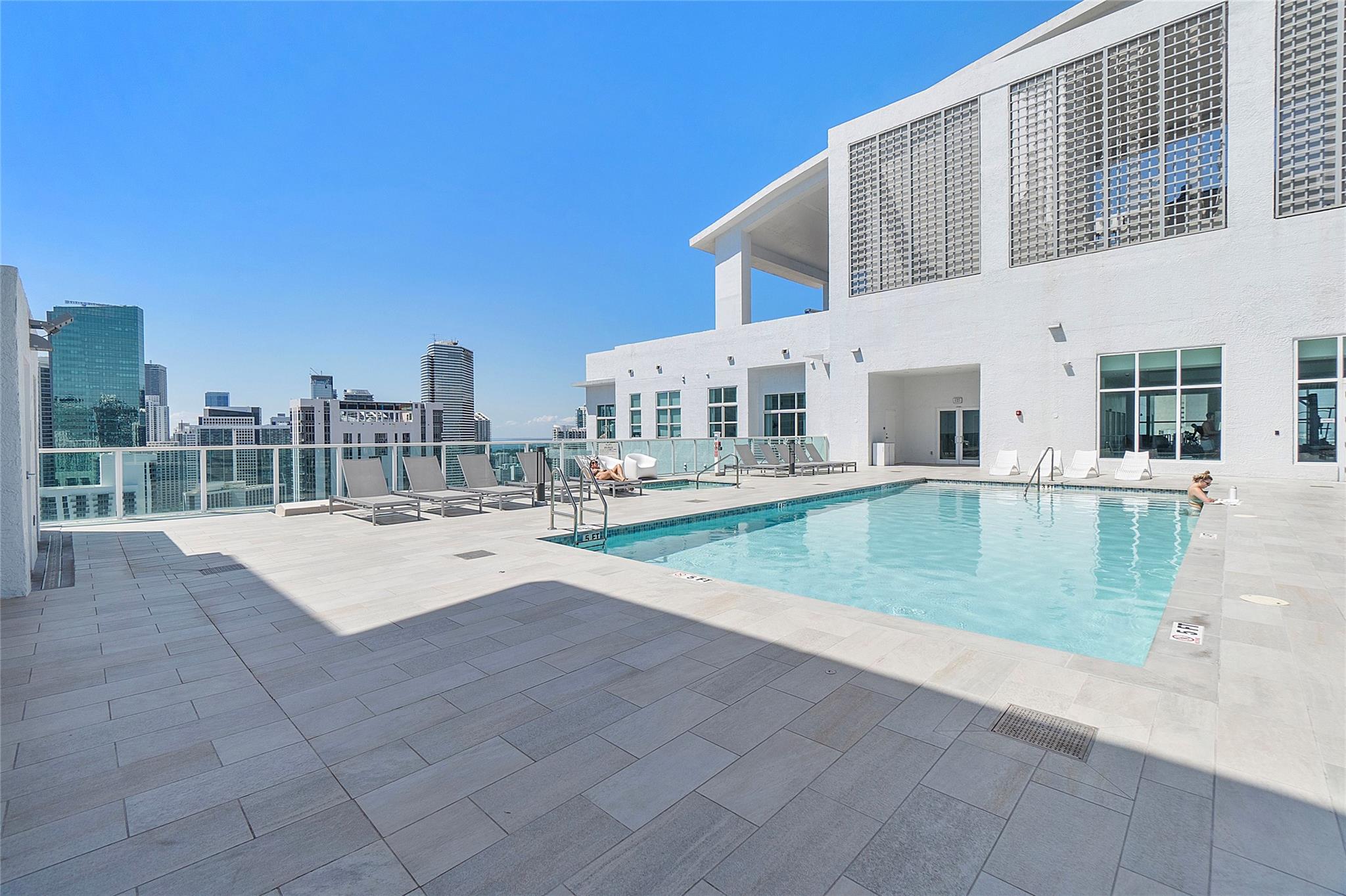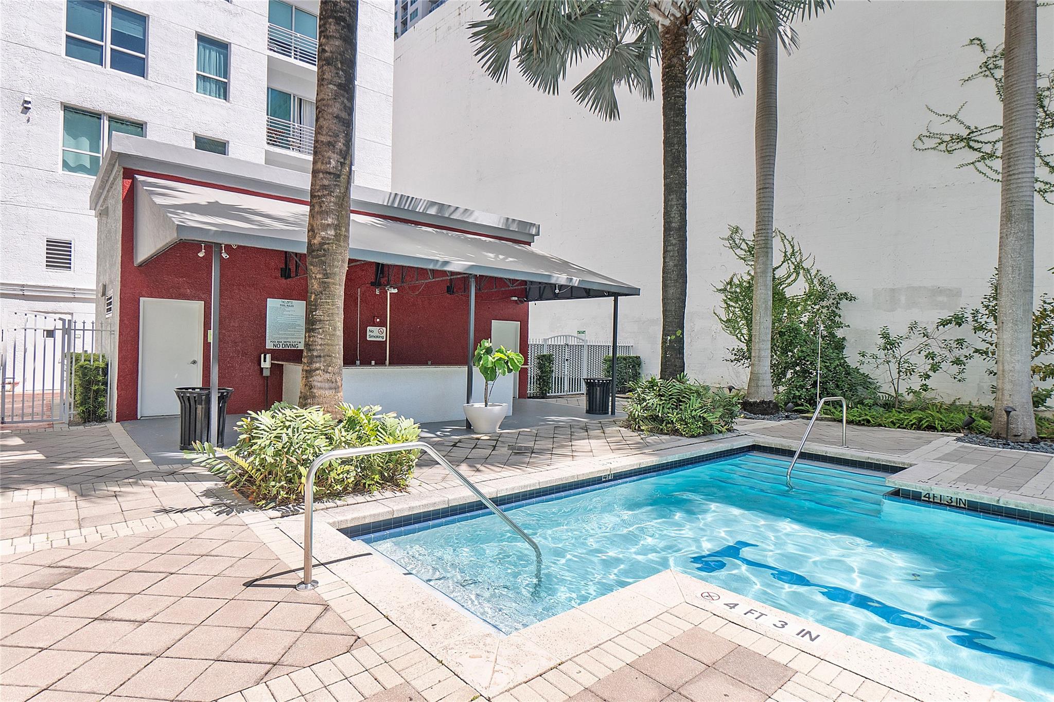 Beautiful unit on the 19th floor with private balcony. This very contemporary unit offers an open floor plan and 10-foot ceilings. Currently is set up as an open studio but it can easily be converted back to 1 bedroom by putting up wall. Open kitchen with stainless steel appliances and washer and dryer in the unit. Building offers 24-hour front desk attendant, rec room with pool table, roof top pool and lap pool on the ground floor, gym. DON’T MISS THIS GREAT OPPORTUNITY!!! Building is walking distance to lots of restaurants, shopping and entertainment. The building is also going through an extensive renovation and the special assessment has been paid in full.