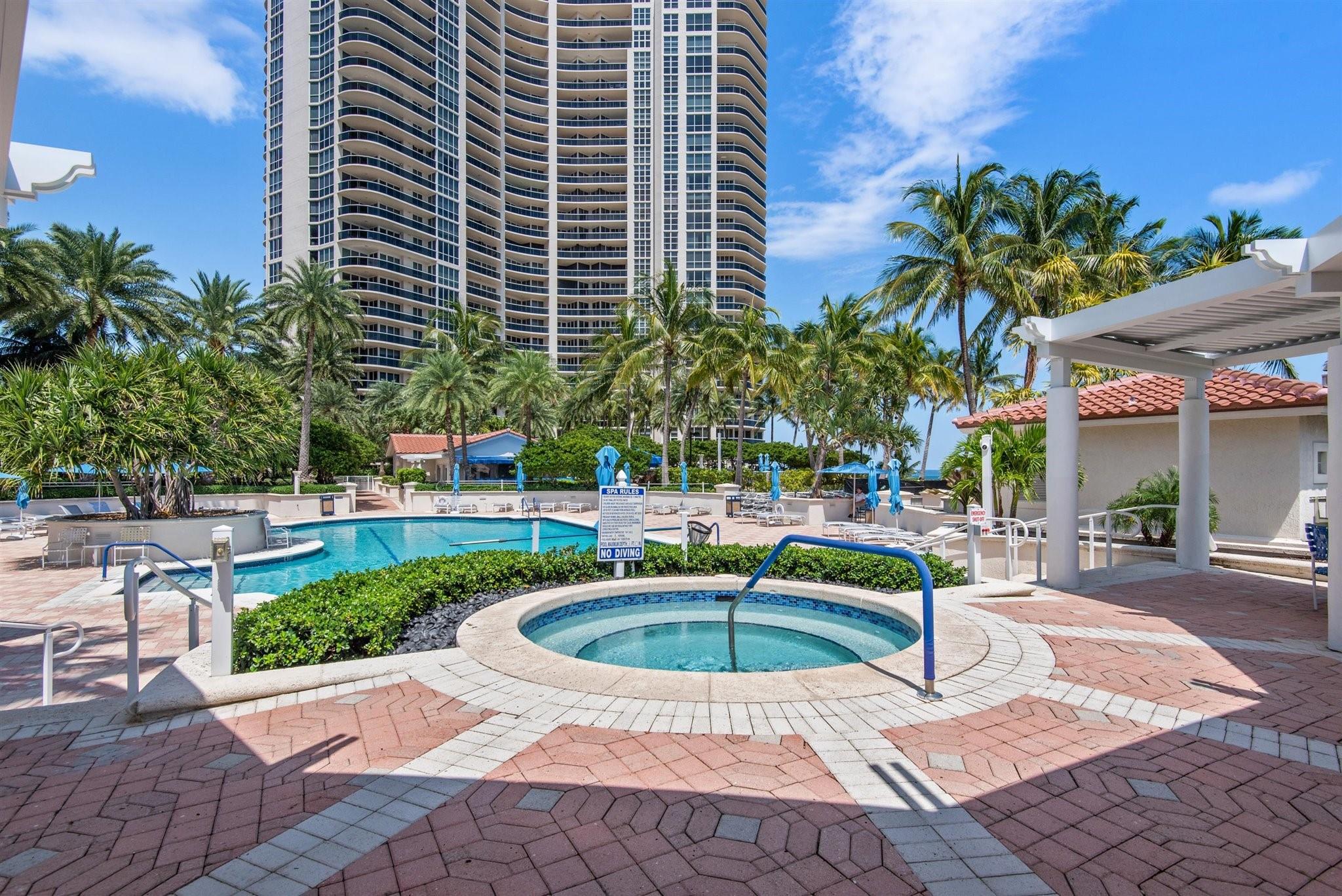 Model Home-This 2BR/2BA/1,537sf/1 Garage Space MODERN split floorplan condo w/ tremendous Southeast facing balcony is the perfect blend of house & condo living. Enjoy the privacy and convenience of a house (pool, cafe, gym, steam, sauna & massage rooms on same floor) with luxury oceanfront condo living. Beautifully redesigned luxurious primary bath with spa-like shower and custom storage, updated eat-in kitchen with s/s appliances and updated guest bath. Accordion Shutters. Bonus area for office, etc. Stunning views of fountain and landscape (ultimate privacy) from every room. ROOF (2023). L'Hermitage 5-star amenities: Resort-style pools, cafe, beach cabanas w/ attendant, 2 HAR-TRU tennis courts, gym, bbqs, guardgate, 24-hr valet, pet park. 2 pets, any size, welcome!