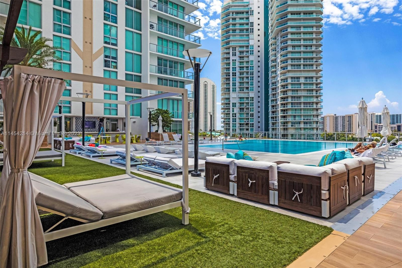 This newly built condo offers 2 bedrooms plus a den and 3 full bathrooms. Revel in the 5-star amenities, including a fitness center, spa, movie theater, 5 pools and concierge services. The unit features captivating water and downtown views from your large balcony, a fully equipped kitchen, and chic furnishings for a contemporary vibe.The primary bedroom suite is a sanctuary of relaxation, complete with an en-suite bathroom that boasts luxury fixtures and finishes. Beach club is available for the residence to enjoy beach day and relax all year around. Make this one your primary residency or your second home conveniently located on Sunny isles Beach with walking distance to the beach, restaurants, shops and parks. Unit is tenant occupied until Dec 2024