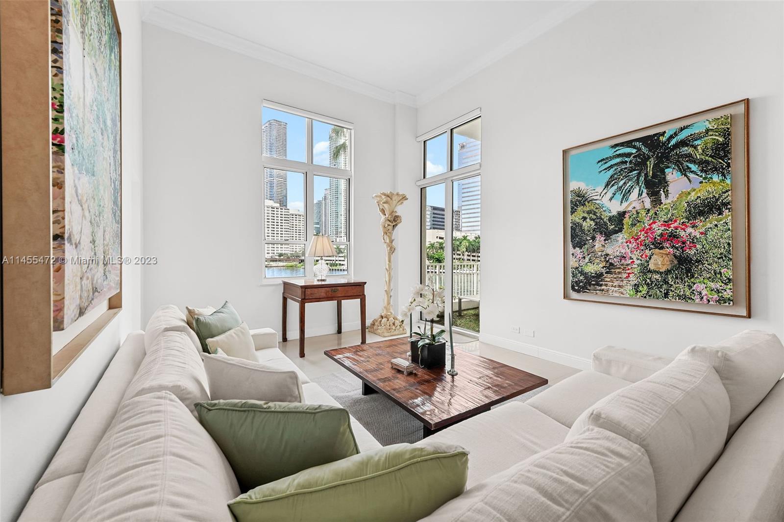 Experience exclusive luxury living at its finest on Brickell Key at the Courvoisier Courts. Move-in ready, meticulously and tastefully renovated 3bedroom, 2 full and 1/2 bathroom condominium. The unit also features 14'ceilings throughout enhancing the generous living space and the abundance of beautiful light. The eat-in-kitchen features high-end appliances, custom cabinetry and unique marble countertops. All bedrooms are large with custom closets. Each window and terrace offers breathtaking views of the water, skyline, pool and garden area. Building amenities include lobby terrace, gym, spa/hot tub, racquetball court, clubroom, business center & valet parking. Brickell Key offers outdoor resident park areas/playgrounds, restaurants and shops. Walking distance to Brickell.