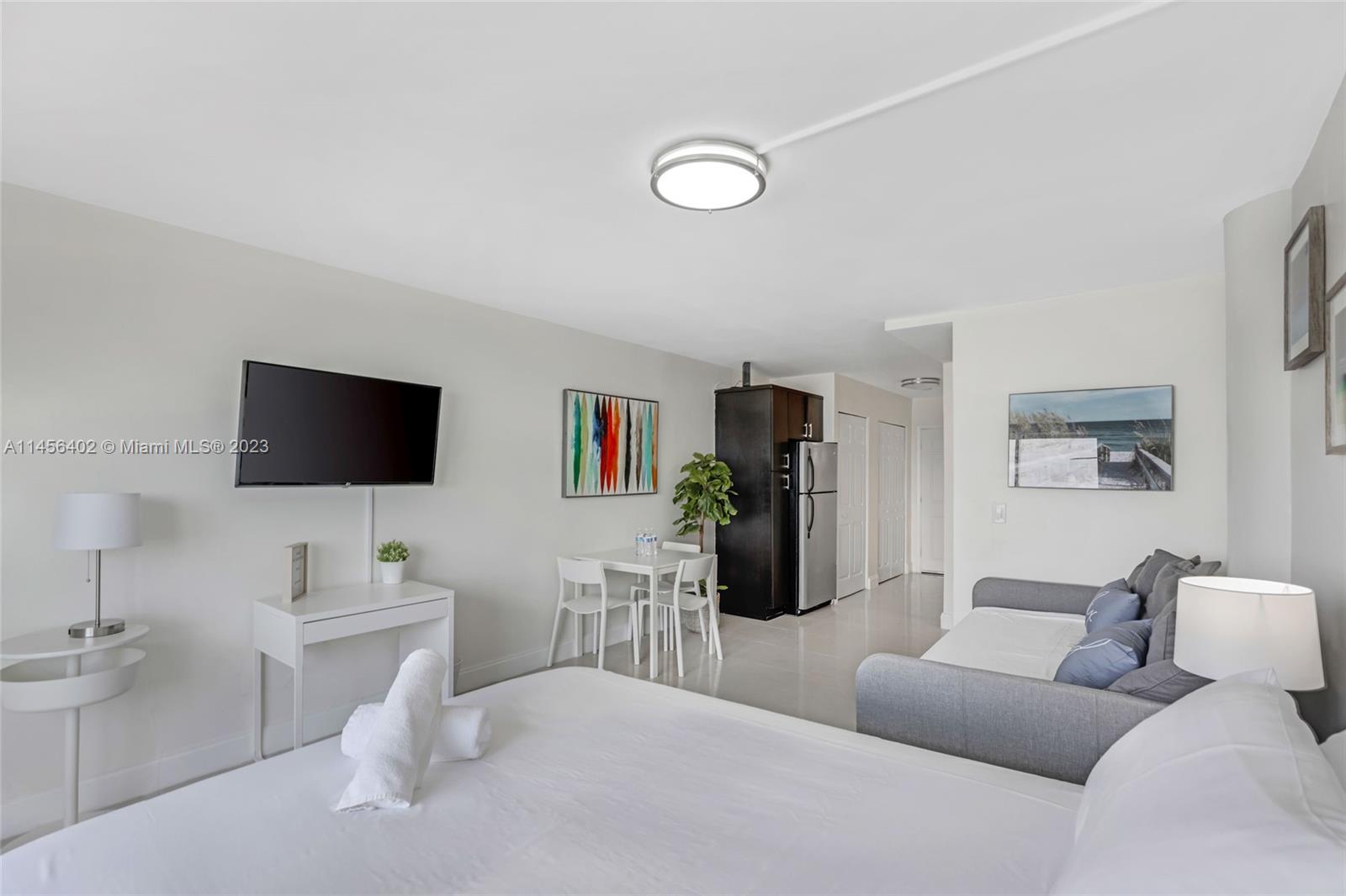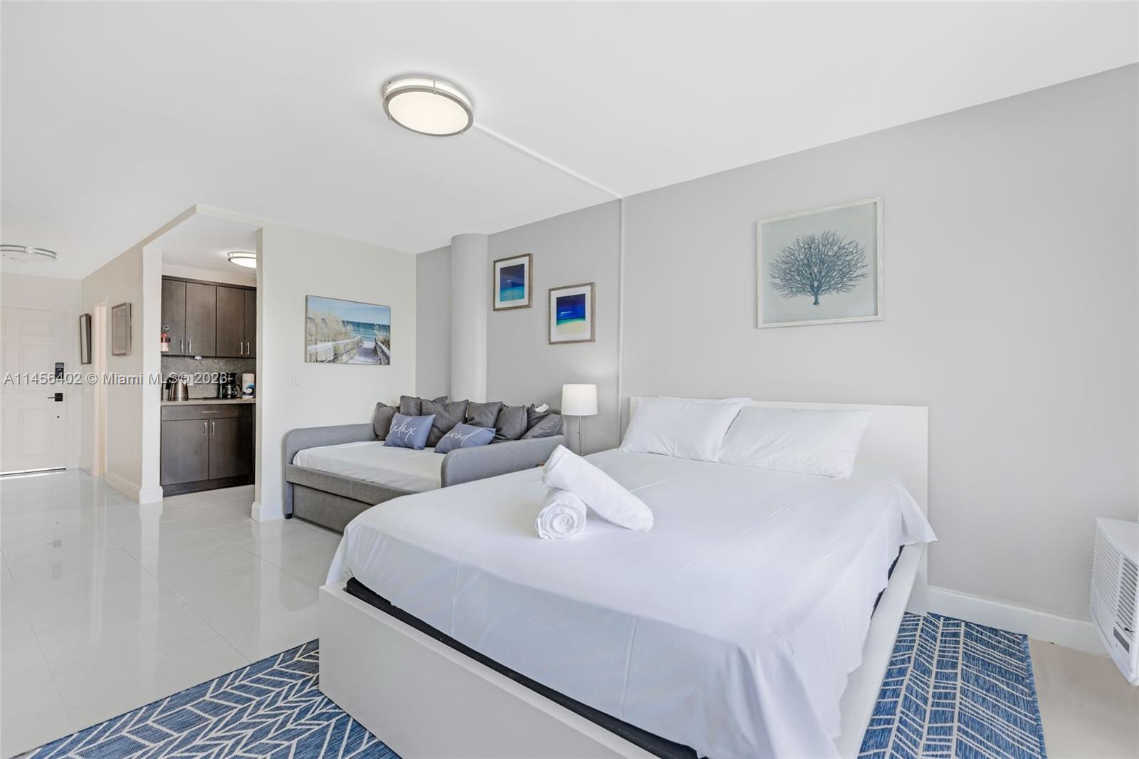 Located in the center of Miami, this is a cozy yet stylish studio designed to maximize comfort and take full advantage of its stunning water views. As you enter the apartment, you step into an open-concept living area that seamlessly combines the living, dining, and sleeping spaces. The use of light, neutral colors, and large windows enhances the sense of space and allows for an abundance of natural light to flood the room. Located minutes away from Miami Beach, Bal Harbour Shops, South Beach, Downtown Miami, Aventura Mall, and a variety of shopping outlets. The building has a swimming pool, and BBQ area, which are all exposed to the bay.