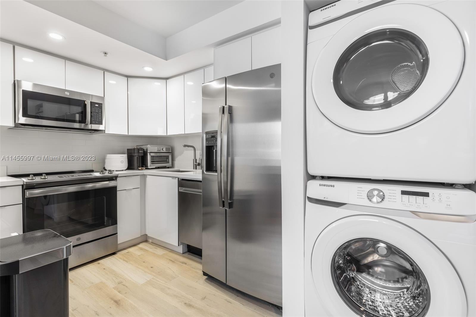 Introducing a chic studio nestled in the heart of Miami Beach's vibrant retail and dining scene. This 348 SF pied-a-terre is perfectly located on the second floor of an Art Deco building fully renovated in 2021 and steps from Lincoln Rd, Beaches, and Convention Center. This stylish space combines the allure of vintage architecture with modern conveniences, offering an ideal urban beach retreat. Features modern finishes throughout with porcelain wood-look tile, S/S appliances, upscale bathroom fixtures, central AC, full-size W/D, and impact windows. Seller to include two wall-mounted flatscreen TVs. Cable, internet, and reserves are included in the low monthly maintenance fee of $283. Residential permitted street parking available and garages nearby with spaces for monthly rent.